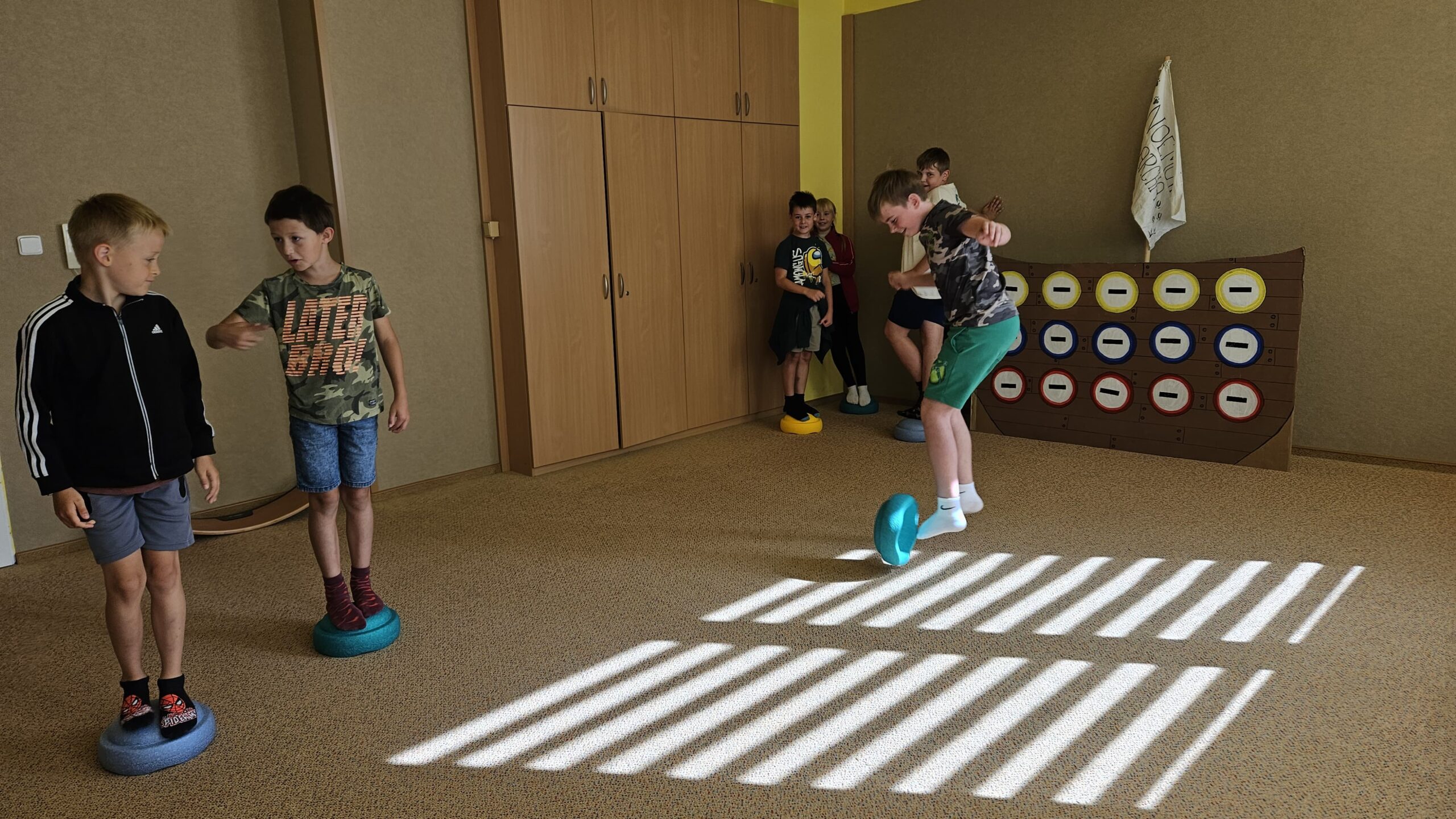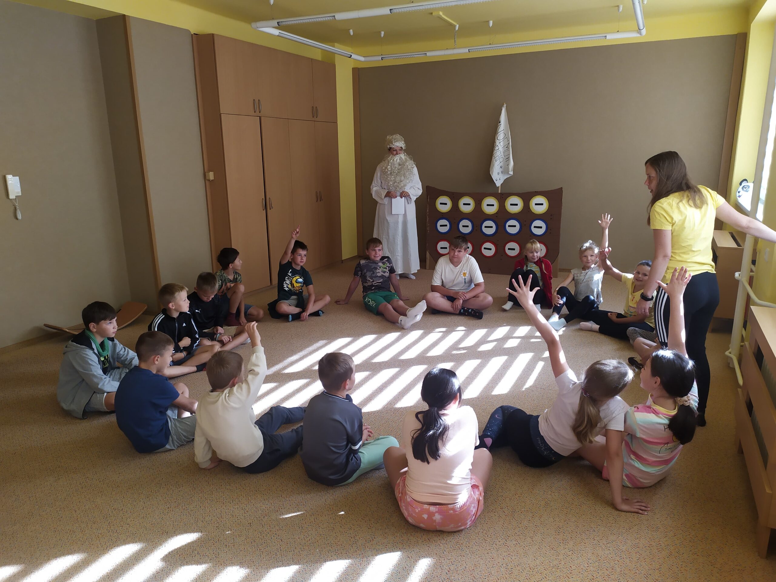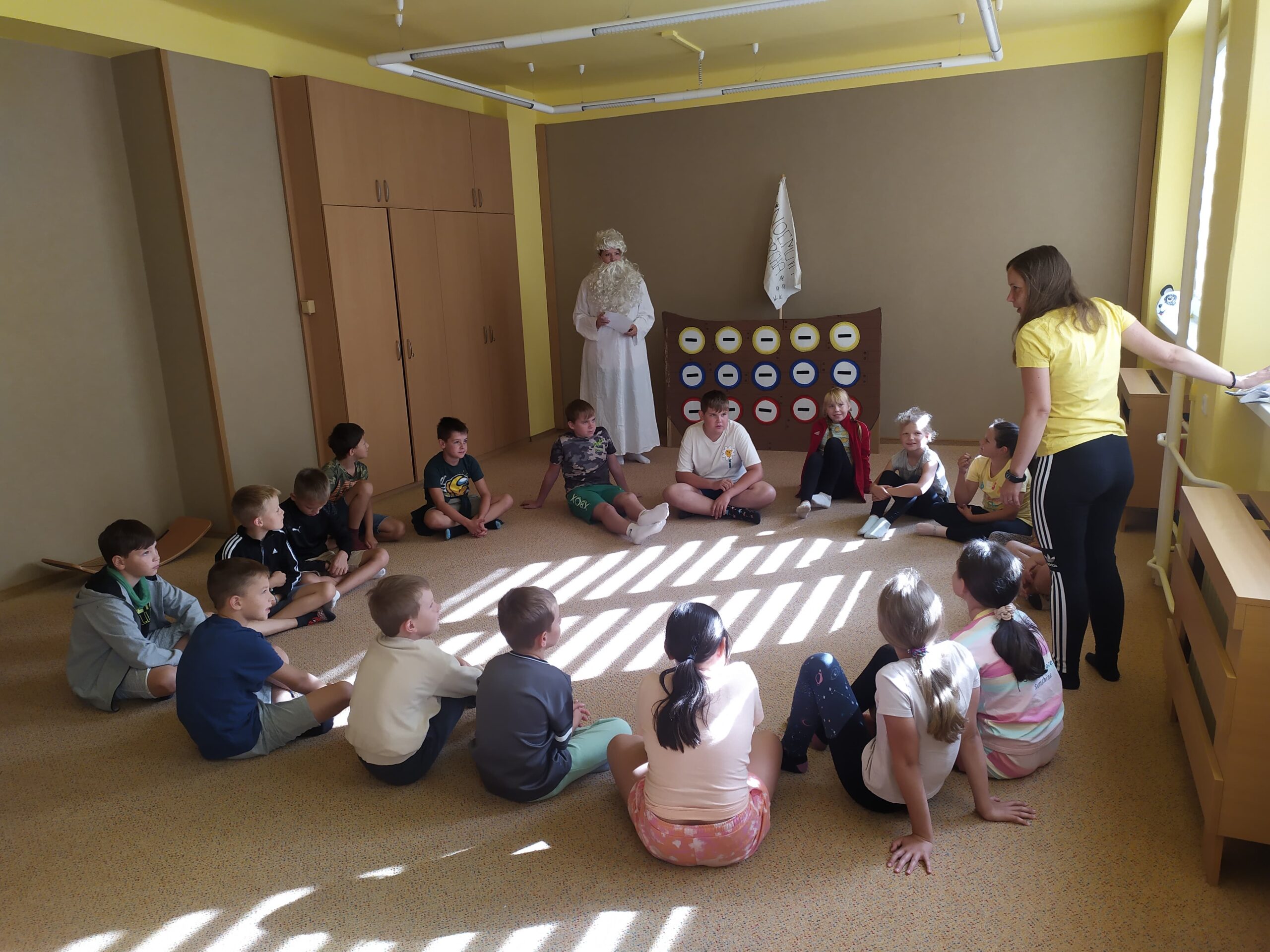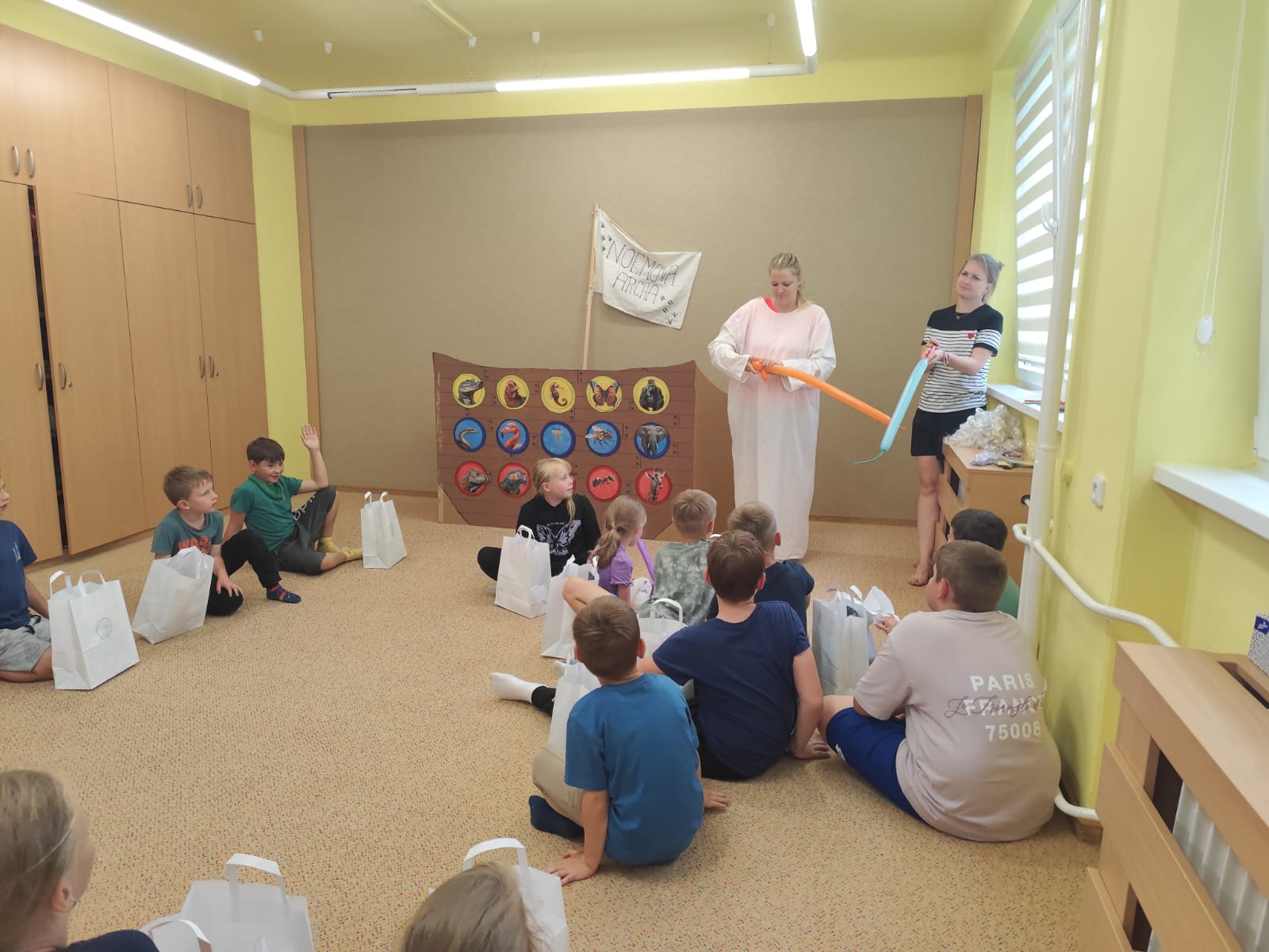 Hned první den se děti vzájemně seznámily, rozdělily do tří týmů – červeného, modrého a žlutého – a pustily se do her, které rozvíjely spolupráci i rychlost. Společně také začaly plnit hlavní úkol tábora: zachránit zvířata před blížící se potopou a nalodit je na archu. Prvními zachráněnými byli krokodýl, zmije a leguán. Na závěr dne si děti vyrobily krásné lampičky z balónků, které jim osvítily čtvrteční společný táborový večer.