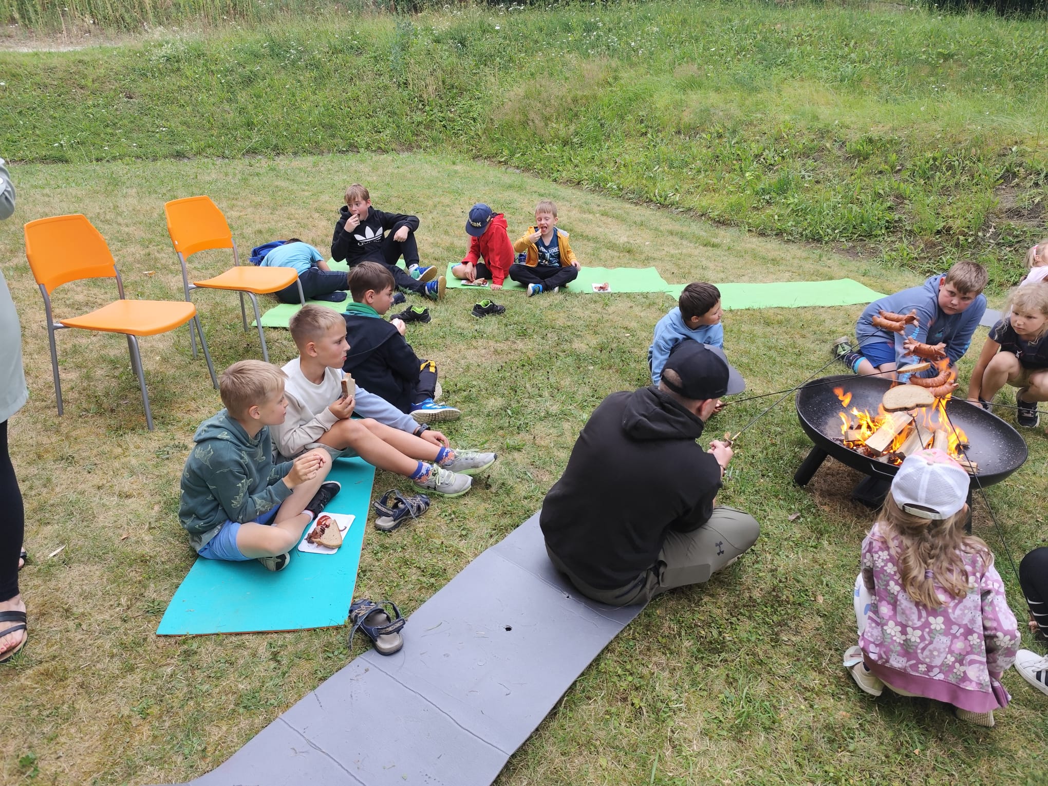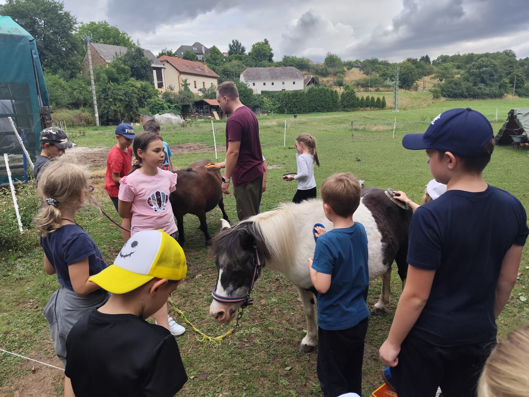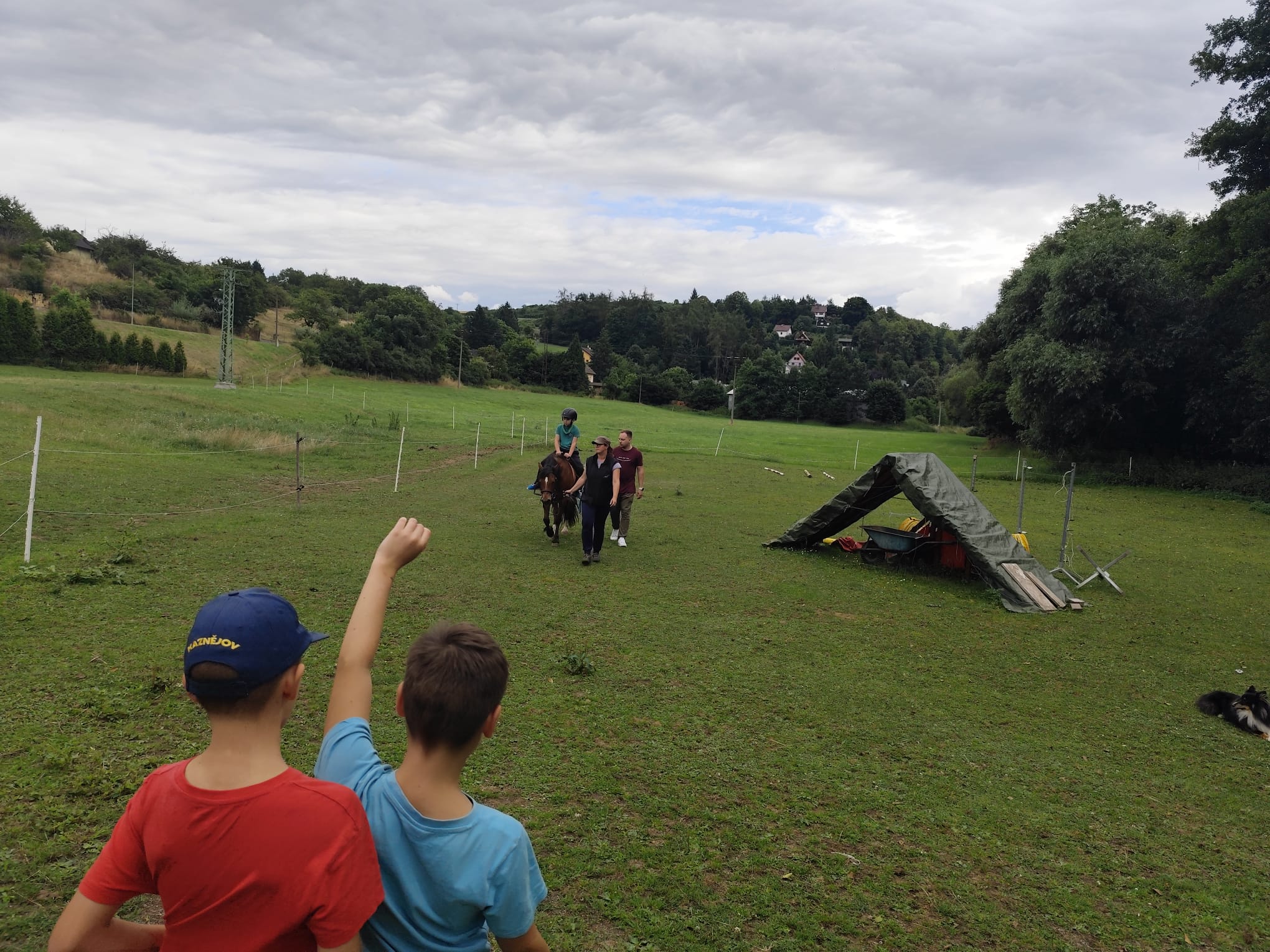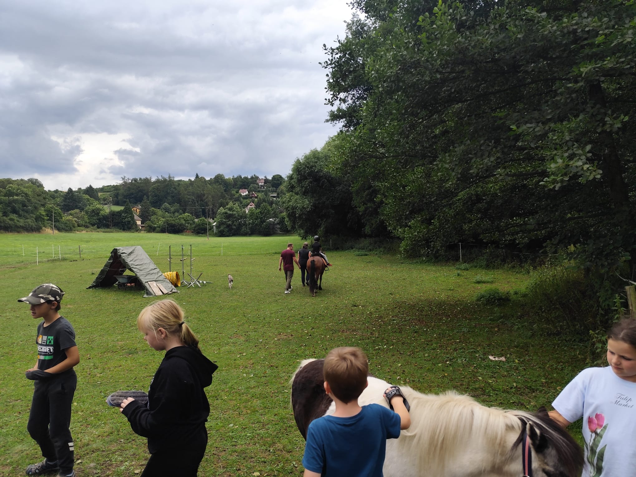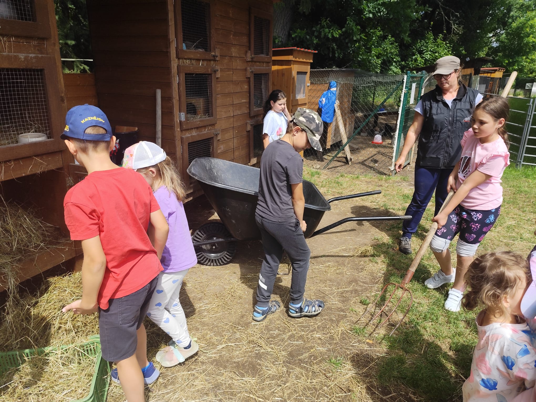 Ve čtvrtek se opět sportovalo a soutěžilo, ale odpoledne patřilo zvířatům zblízka. Děti navštívily králíky, znovu papoušky, a měly dokonce možnost projet se na koních. Během dne se podařilo zachránit i drobná, ale důležitá zvířata – motýla, včelu a mravence, která nesmí na arše chybět. Večer pak patřil klasickému táboráku – opékání buřtů, hra na kytaru a společné zpívání písniček sice ne pod hvězdami, jelikož nás vyhnal déšť, ale i tak si děti vytvořily nezapomenutelnou atmosféru. Tento večer byl výjimečný i tím, že děti zůstaly přes noc – přespávačka byla pro mnohé vrcholem týdne.