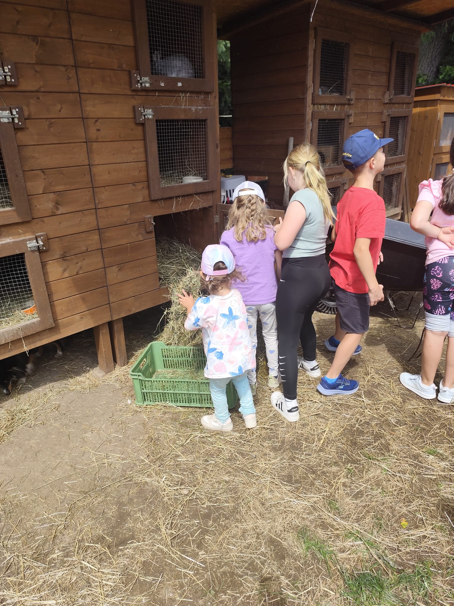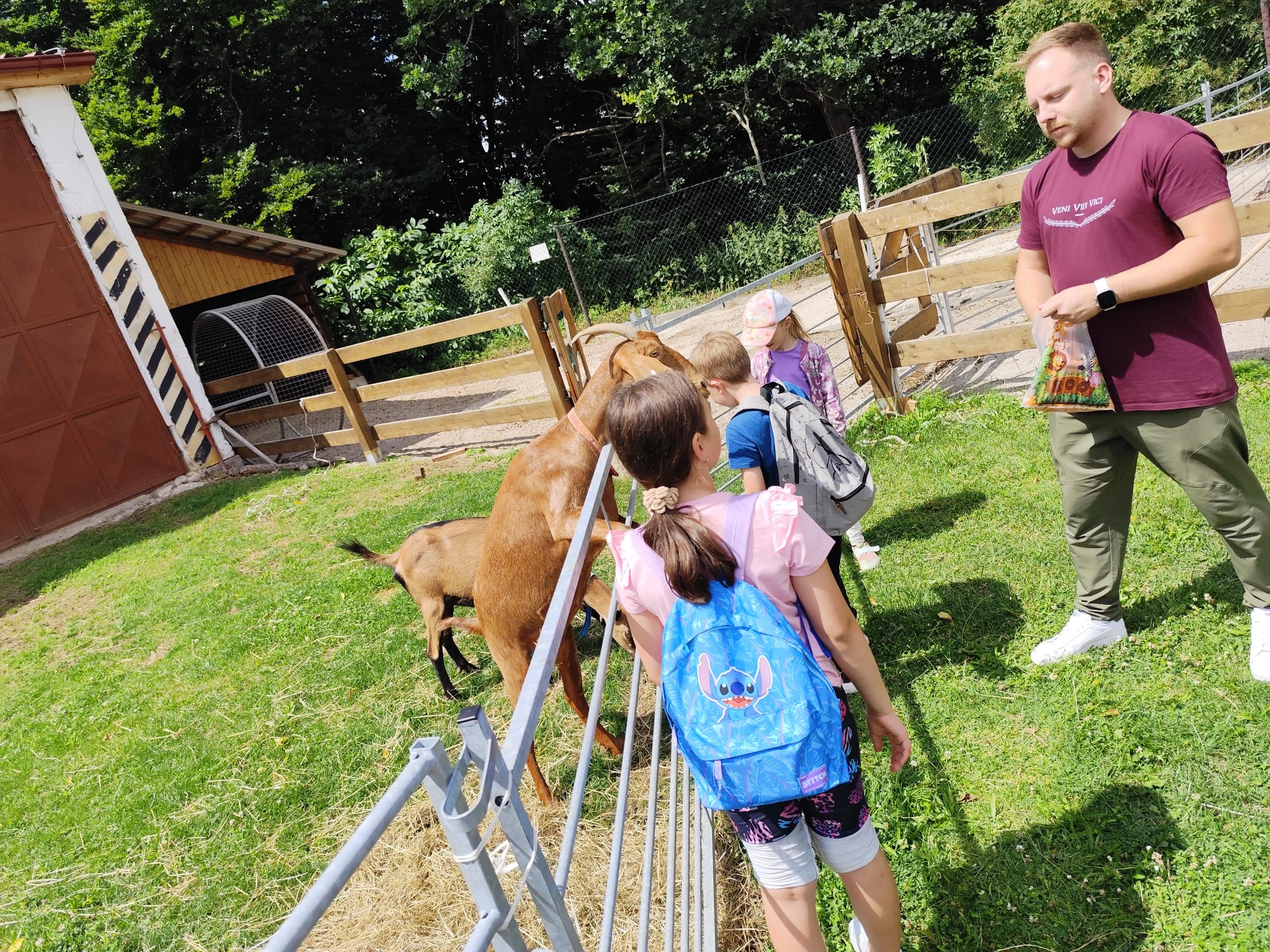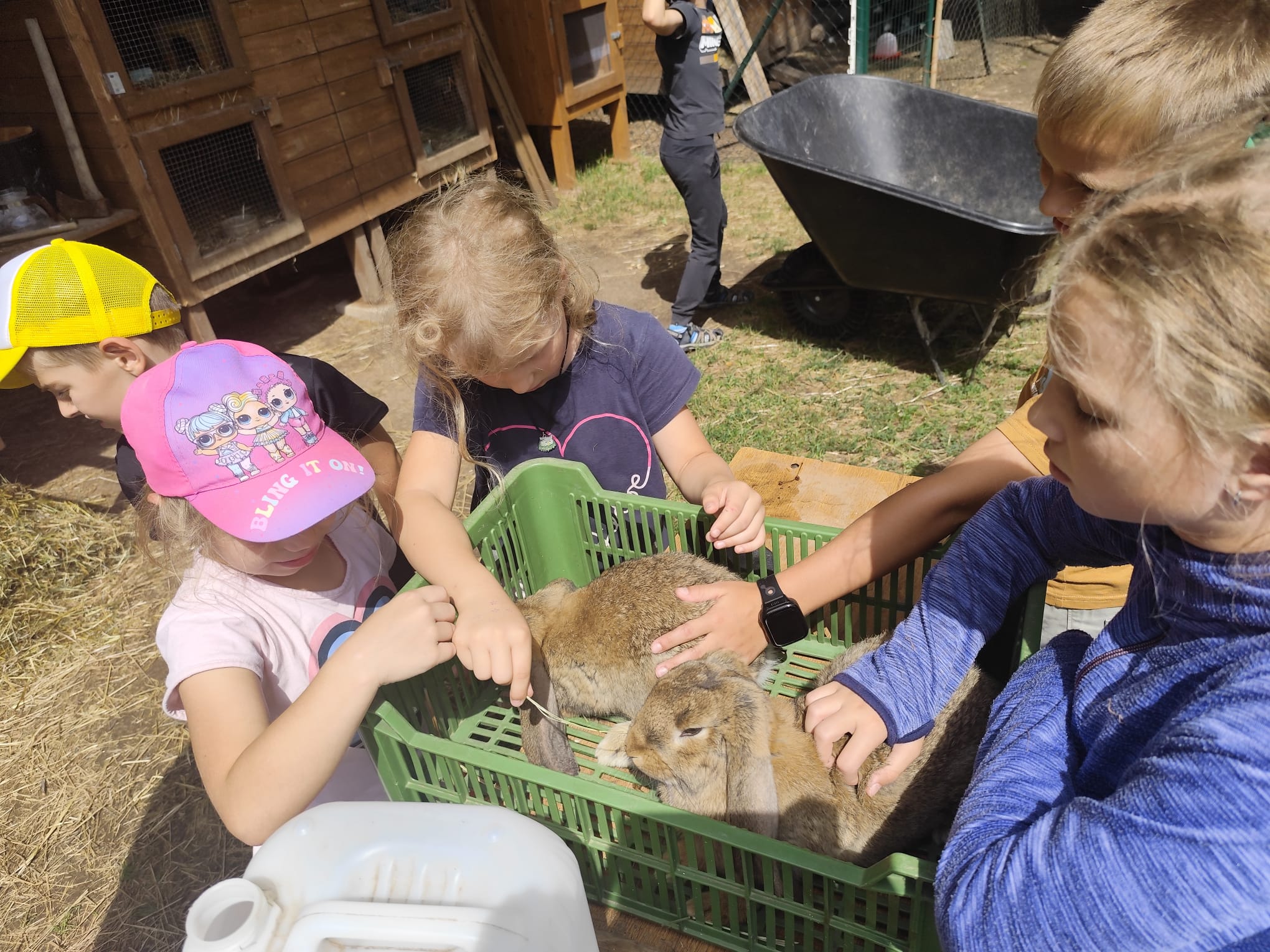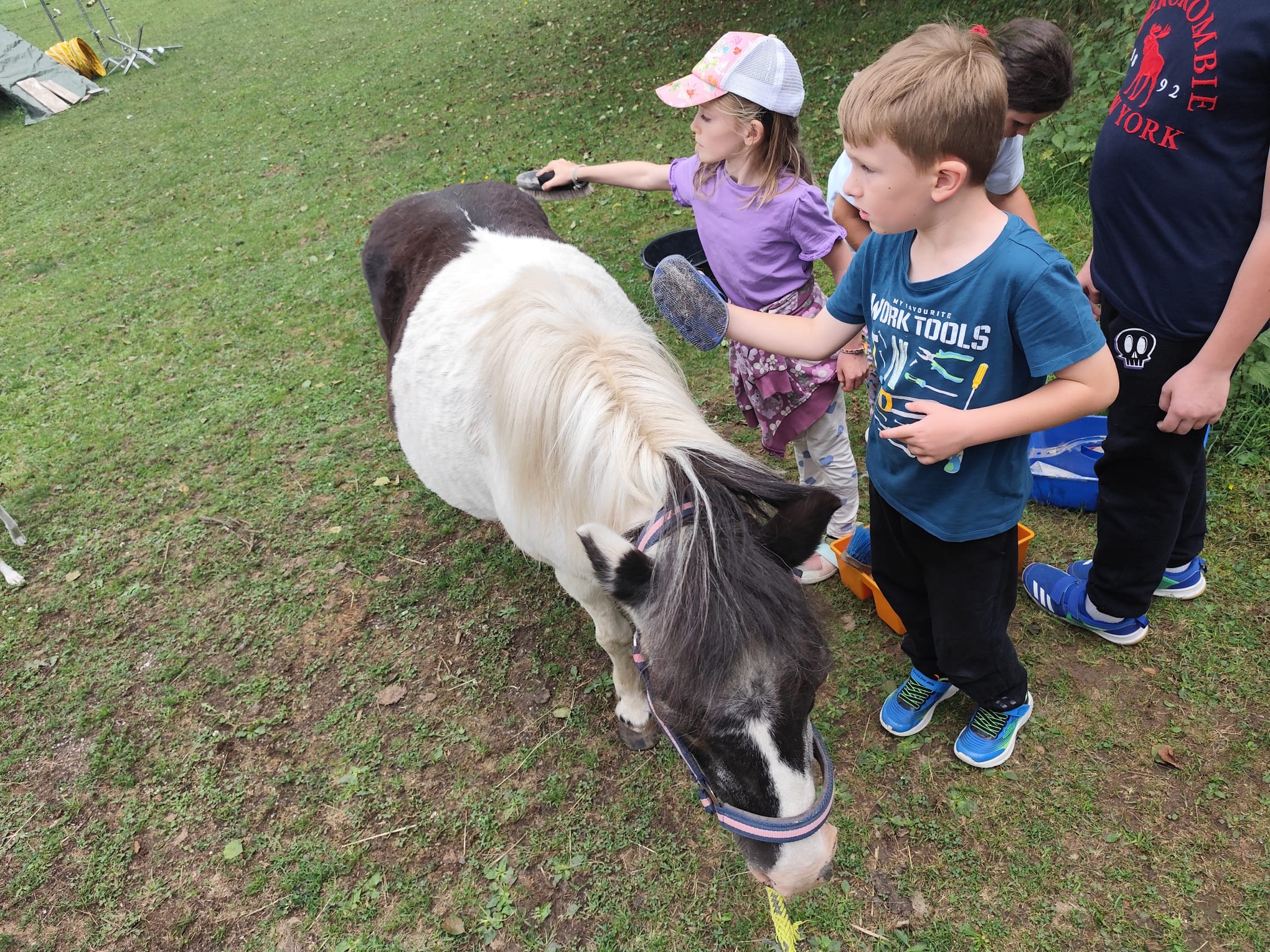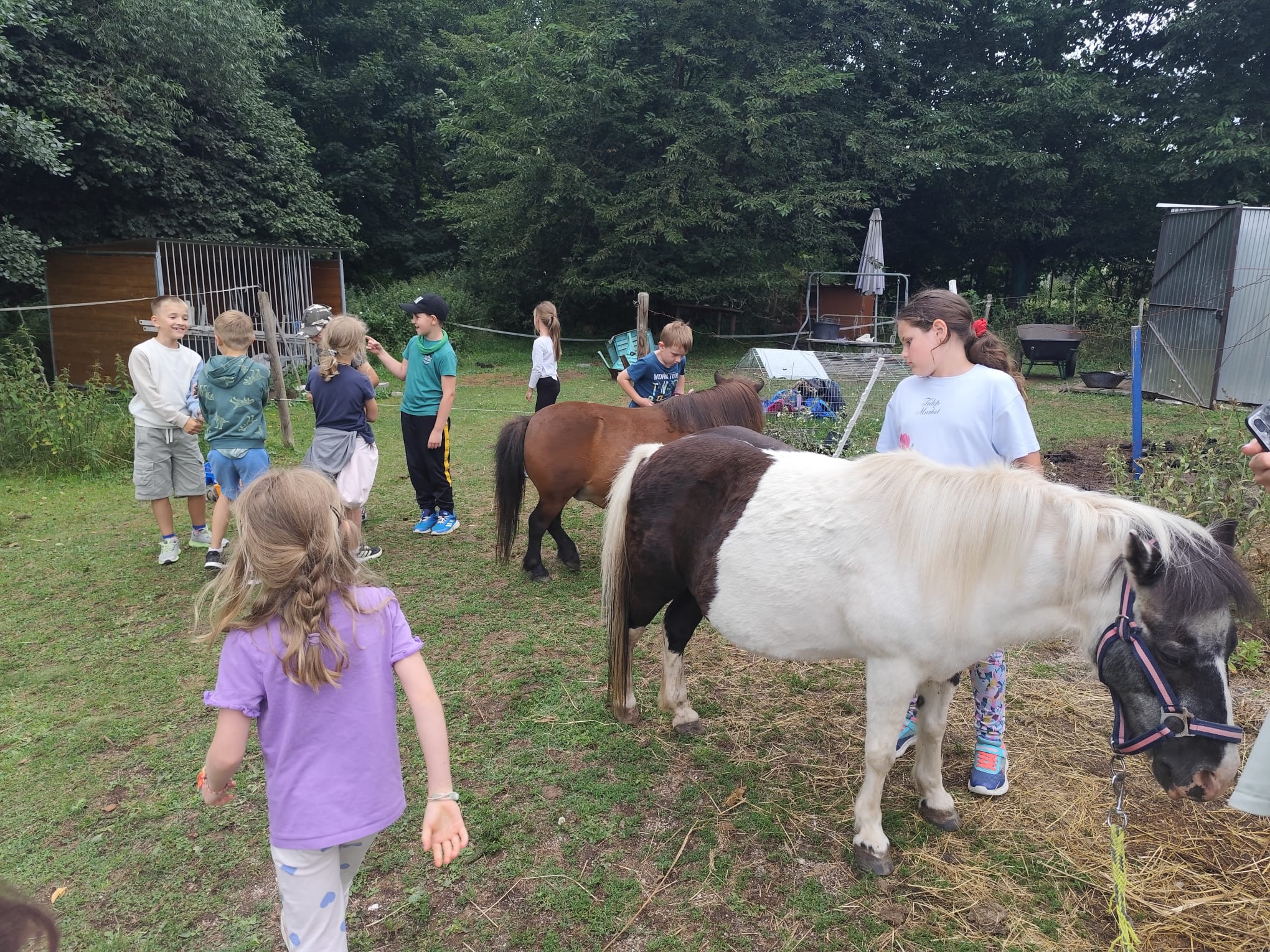 Ve čtvrtek se opět sportovalo a soutěžilo, ale odpoledne patřilo zvířatům zblízka. Děti navštívily králíky, znovu papoušky, a měly dokonce možnost projet se na koních. Během dne se podařilo zachránit i drobná, ale důležitá zvířata – motýla, včelu a mravence, která nesmí na arše chybět. Večer pak patřil klasickému táboráku – opékání buřtů, hra na kytaru a společné zpívání písniček sice ne pod hvězdami, jelikož nás vyhnal déšť, ale i tak si děti vytvořily nezapomenutelnou atmosféru. Tento večer byl výjimečný i tím, že děti zůstaly přes noc – přespávačka byla pro mnohé vrcholem týdne.