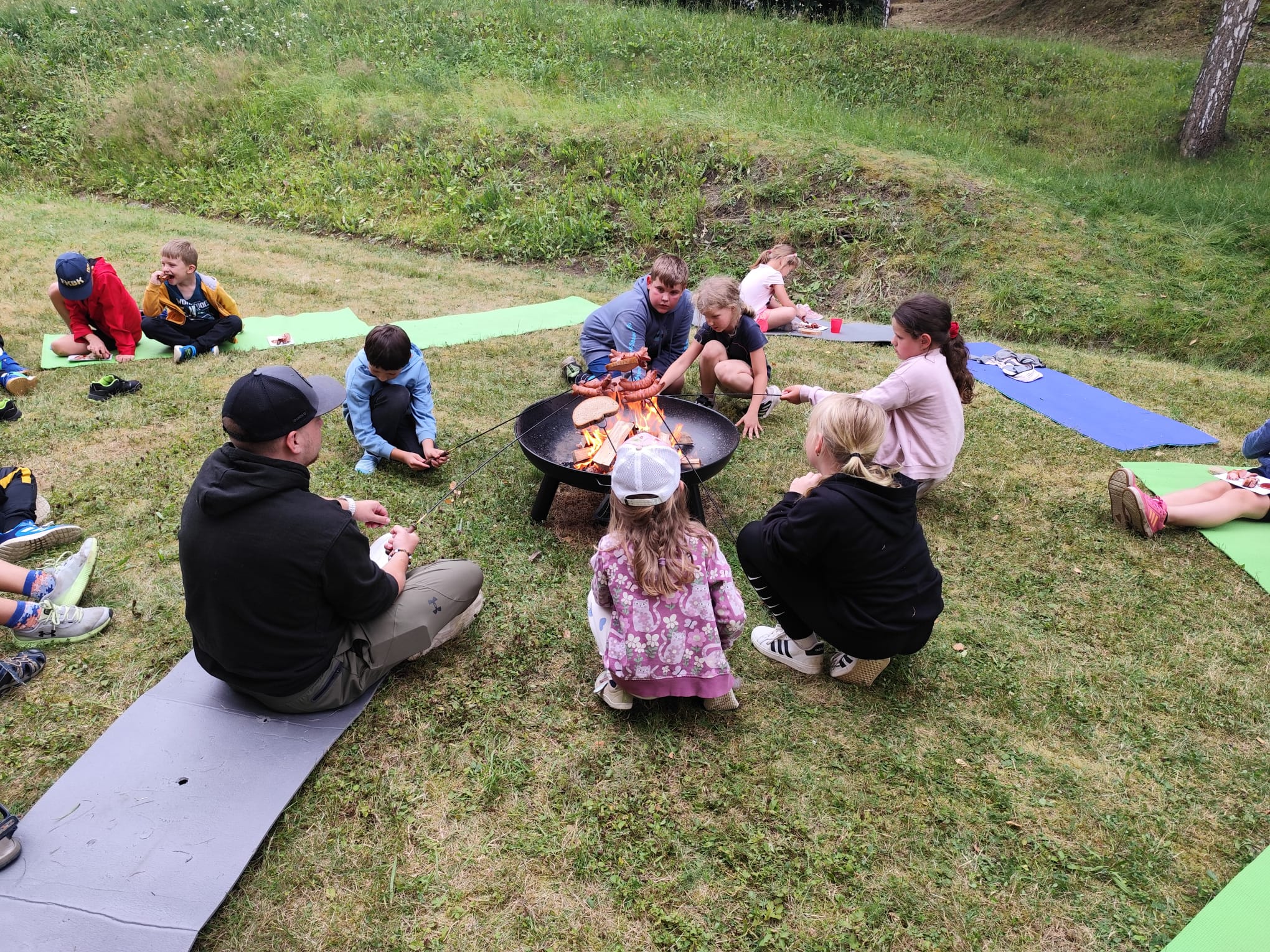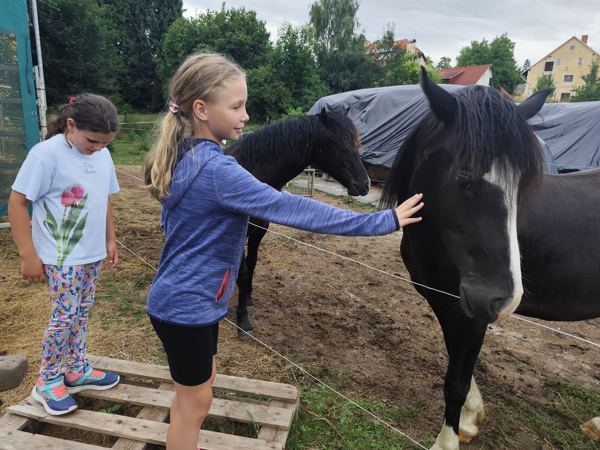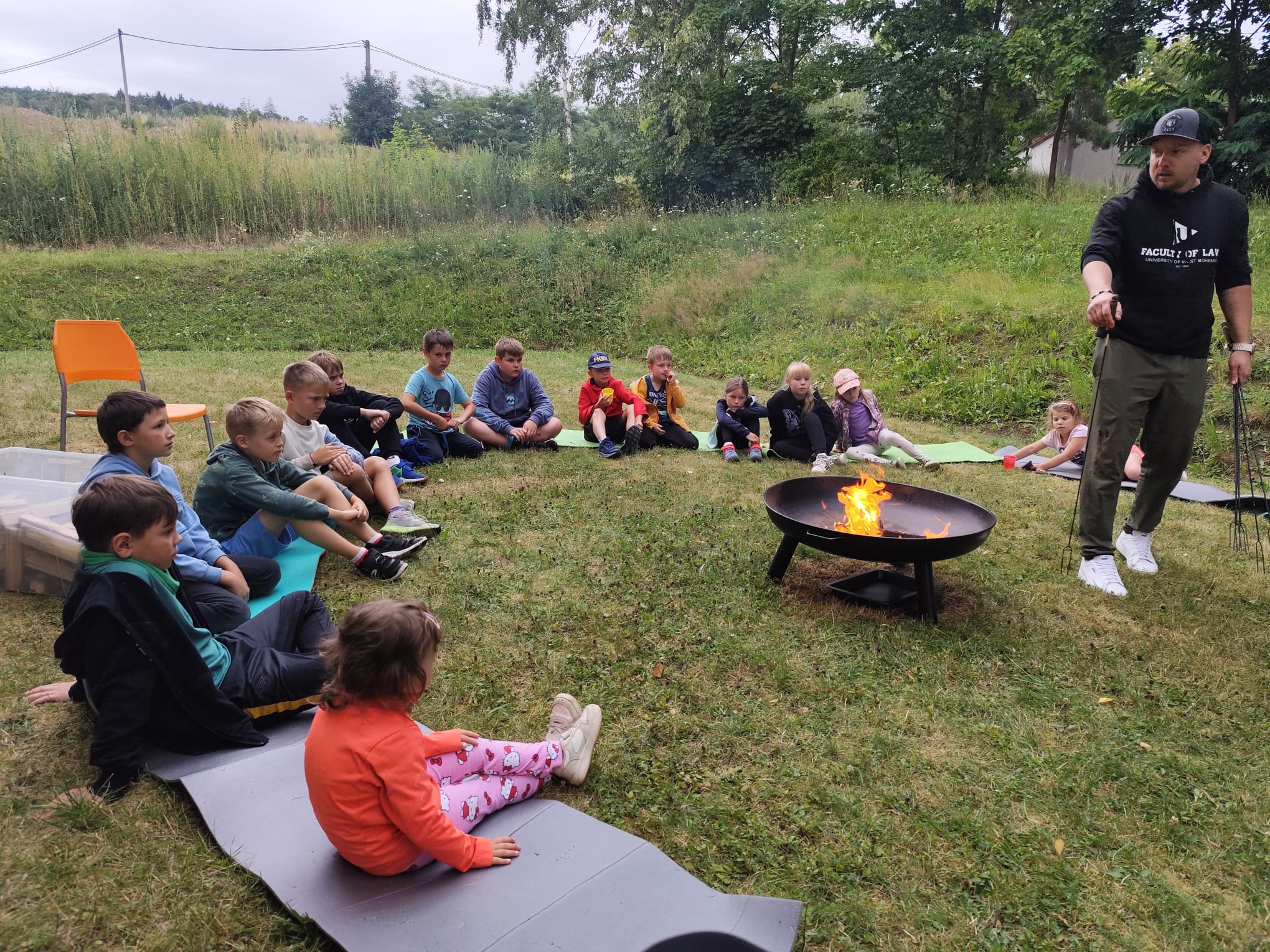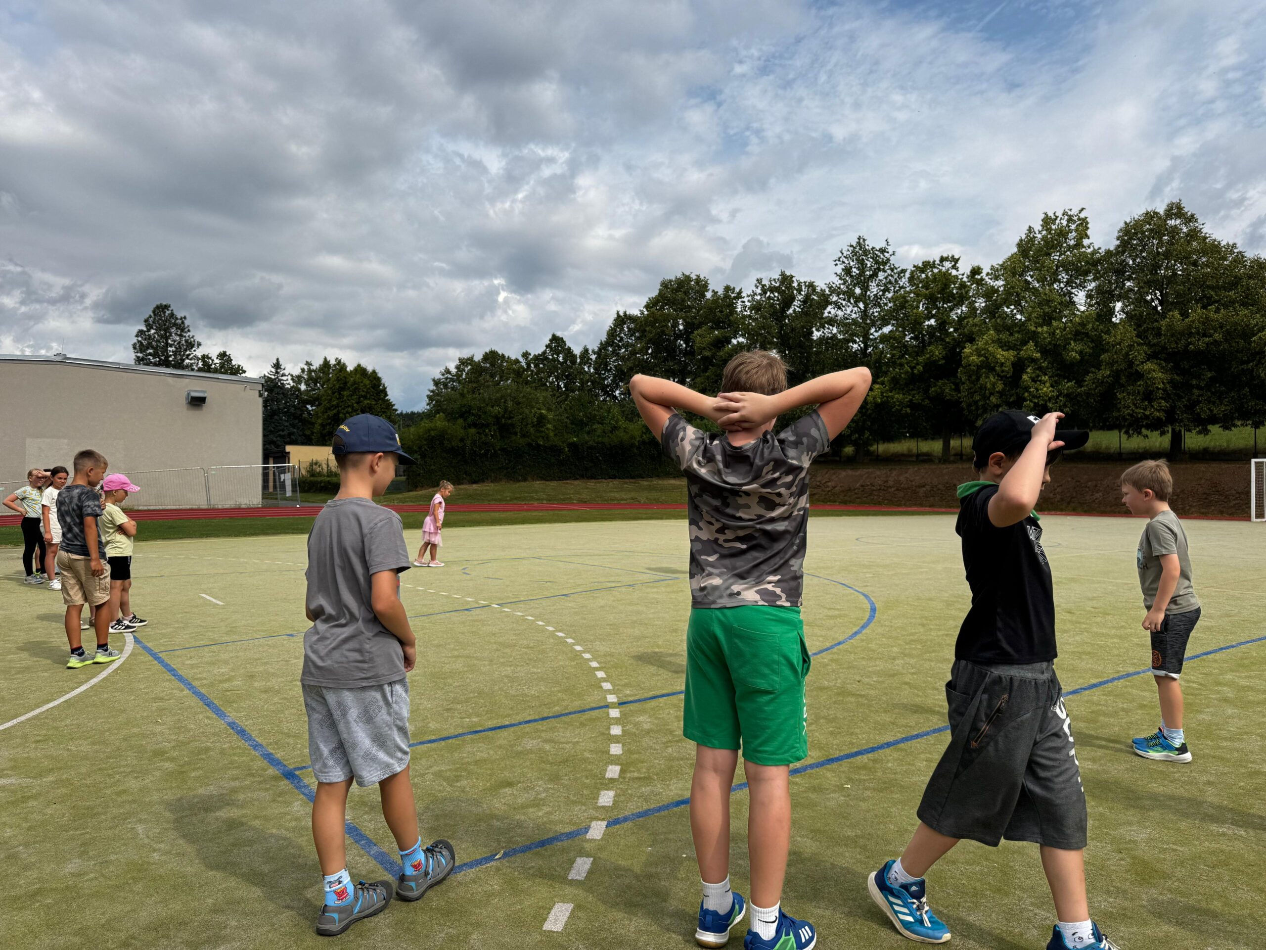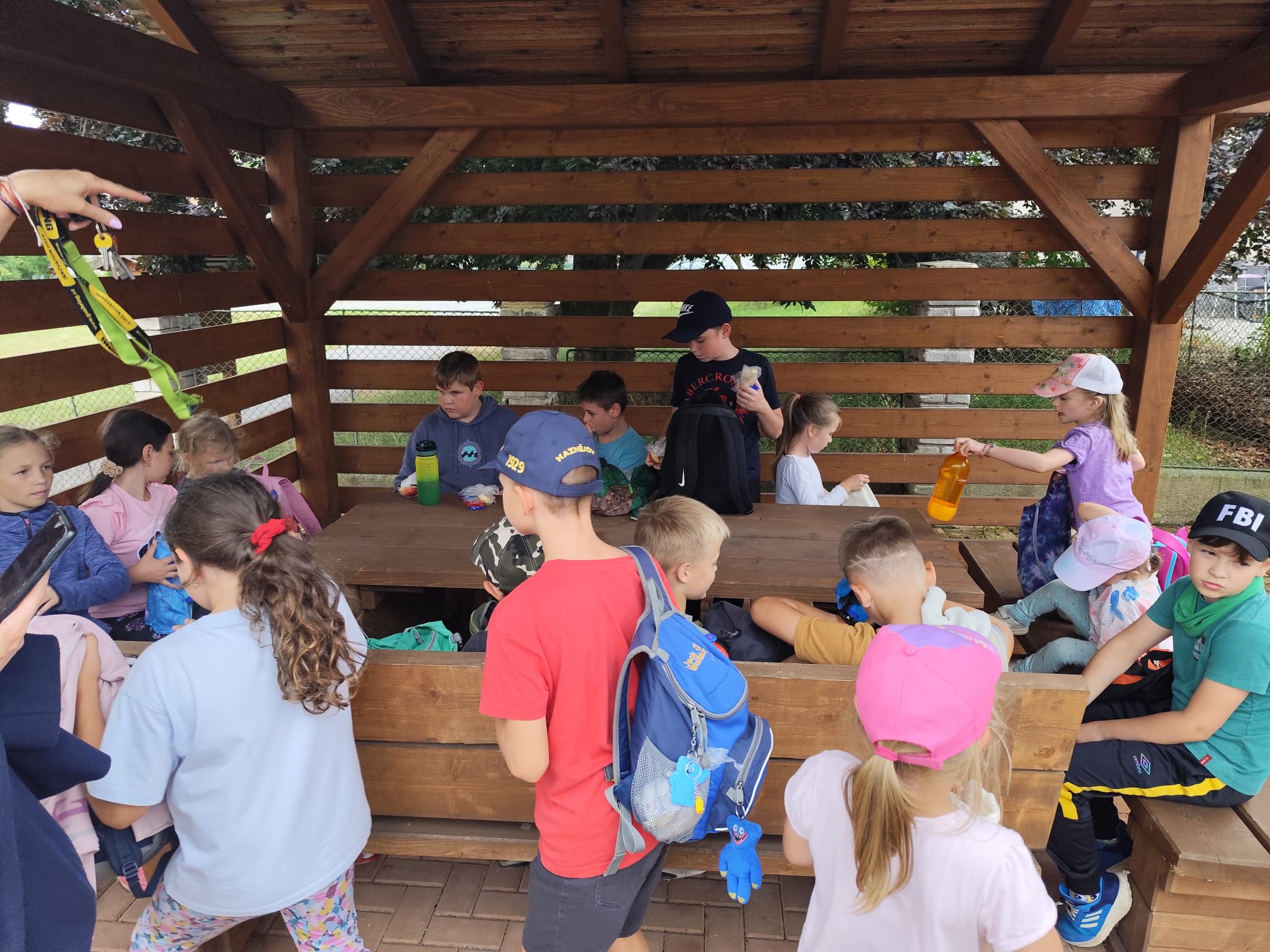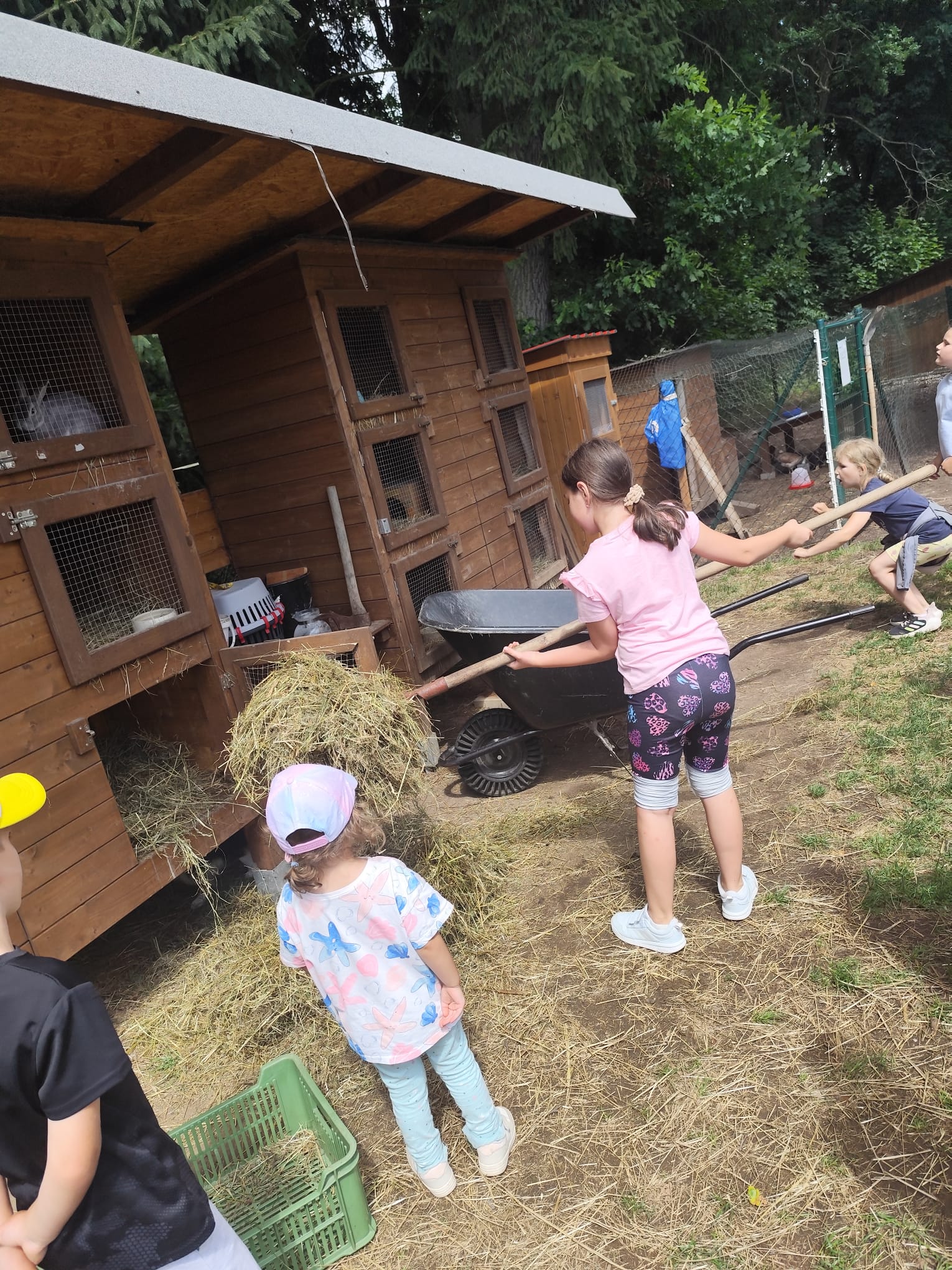 Ve čtvrtek se opět sportovalo a soutěžilo, ale odpoledne patřilo zvířatům zblízka. Děti navštívily králíky, znovu papoušky, a měly dokonce možnost projet se na koních. Během dne se podařilo zachránit i drobná, ale důležitá zvířata – motýla, včelu a mravence, která nesmí na arše chybět. Večer pak patřil klasickému táboráku – opékání buřtů, hra na kytaru a společné zpívání písniček sice ne pod hvězdami, jelikož nás vyhnal déšť, ale i tak si děti vytvořily nezapomenutelnou atmosféru. Tento večer byl výjimečný i tím, že děti zůstaly přes noc – přespávačka byla pro mnohé vrcholem týdne.