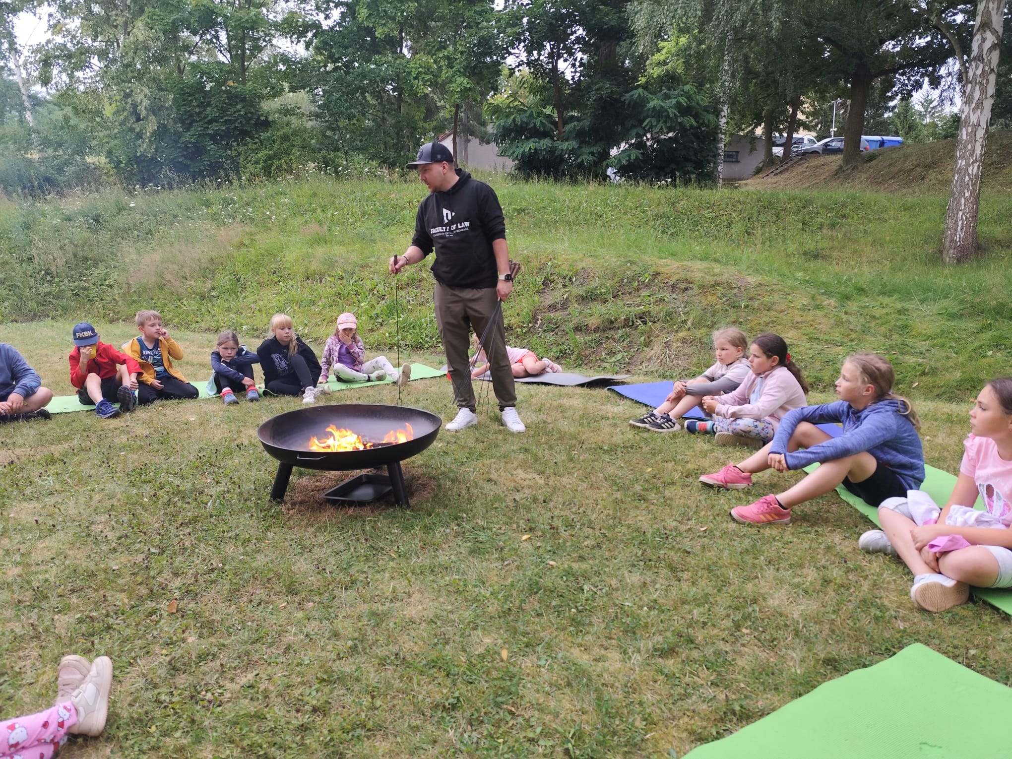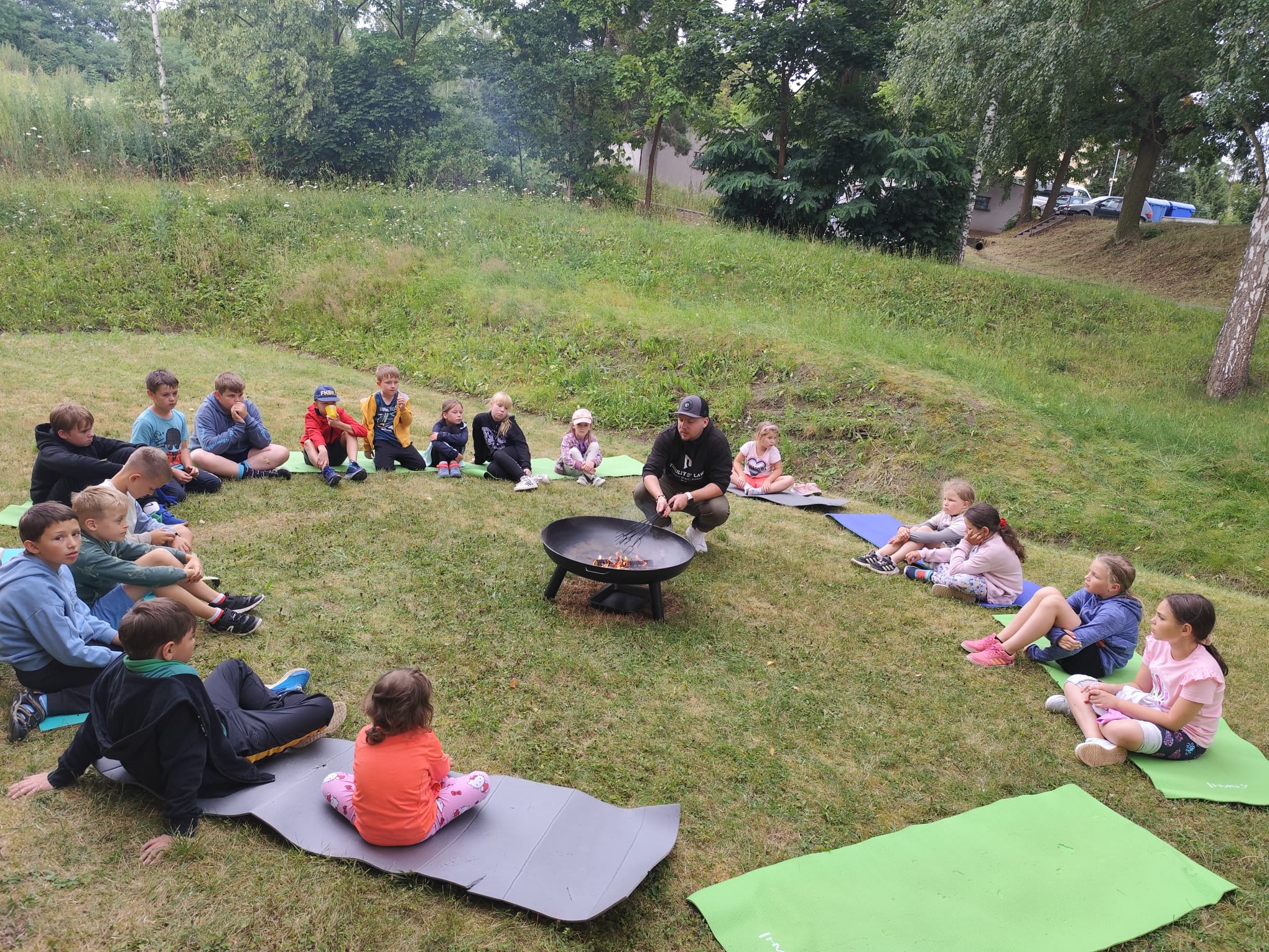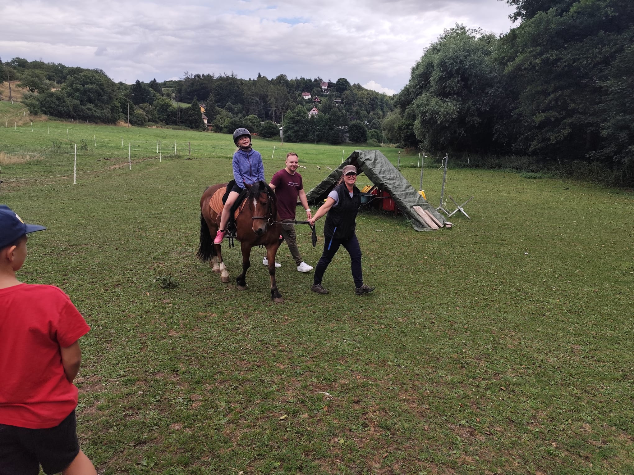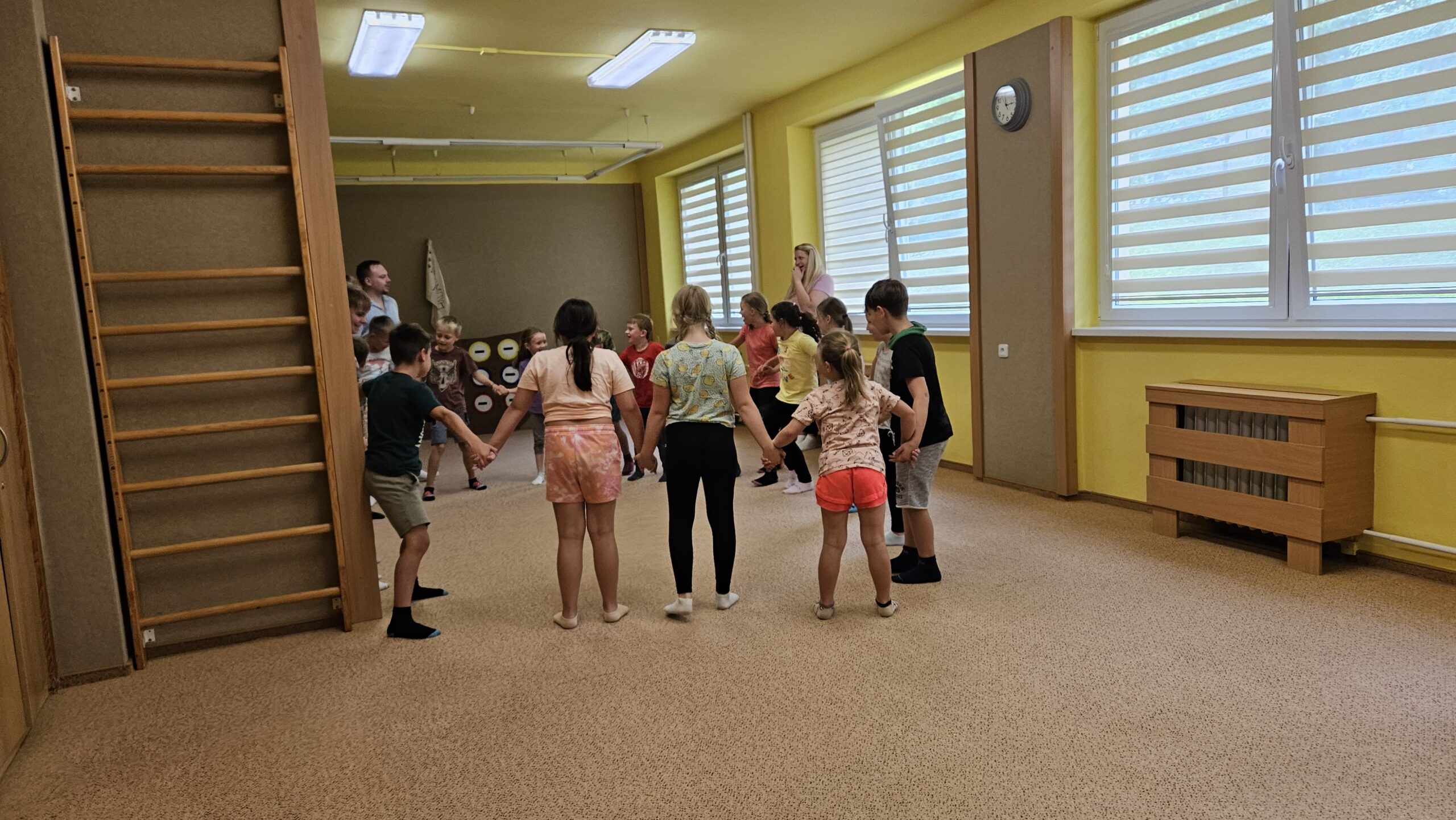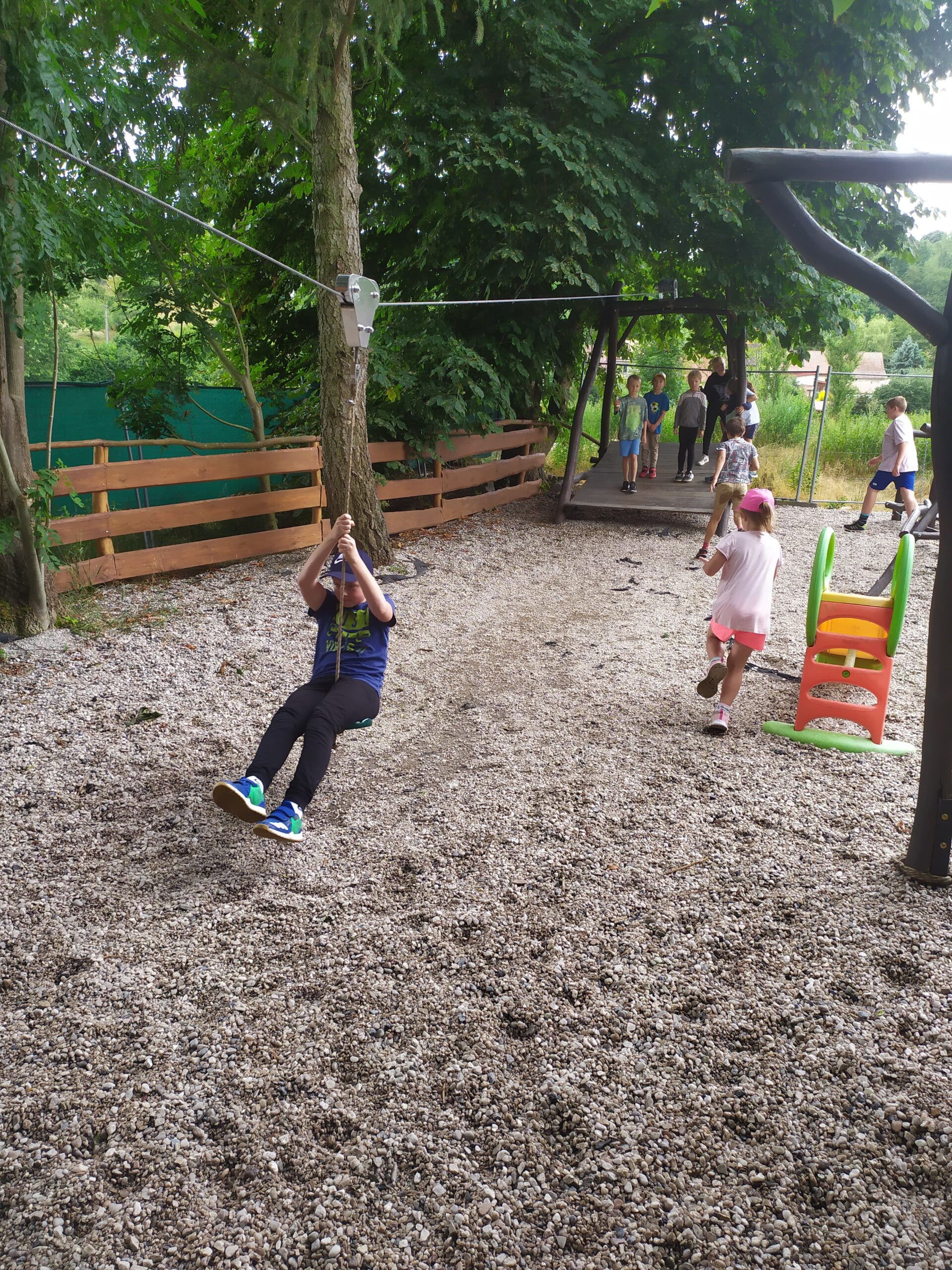 Ve čtvrtek se opět sportovalo a soutěžilo, ale odpoledne patřilo zvířatům zblízka. Děti navštívily králíky, znovu papoušky, a měly dokonce možnost projet se na koních. Během dne se podařilo zachránit i drobná, ale důležitá zvířata – motýla, včelu a mravence, která nesmí na arše chybět. Večer pak patřil klasickému táboráku – opékání buřtů, hra na kytaru a společné zpívání písniček sice ne pod hvězdami, jelikož nás vyhnal déšť, ale i tak si děti vytvořily nezapomenutelnou atmosféru. Tento večer byl výjimečný i tím, že děti zůstaly přes noc – přespávačka byla pro mnohé vrcholem týdne.