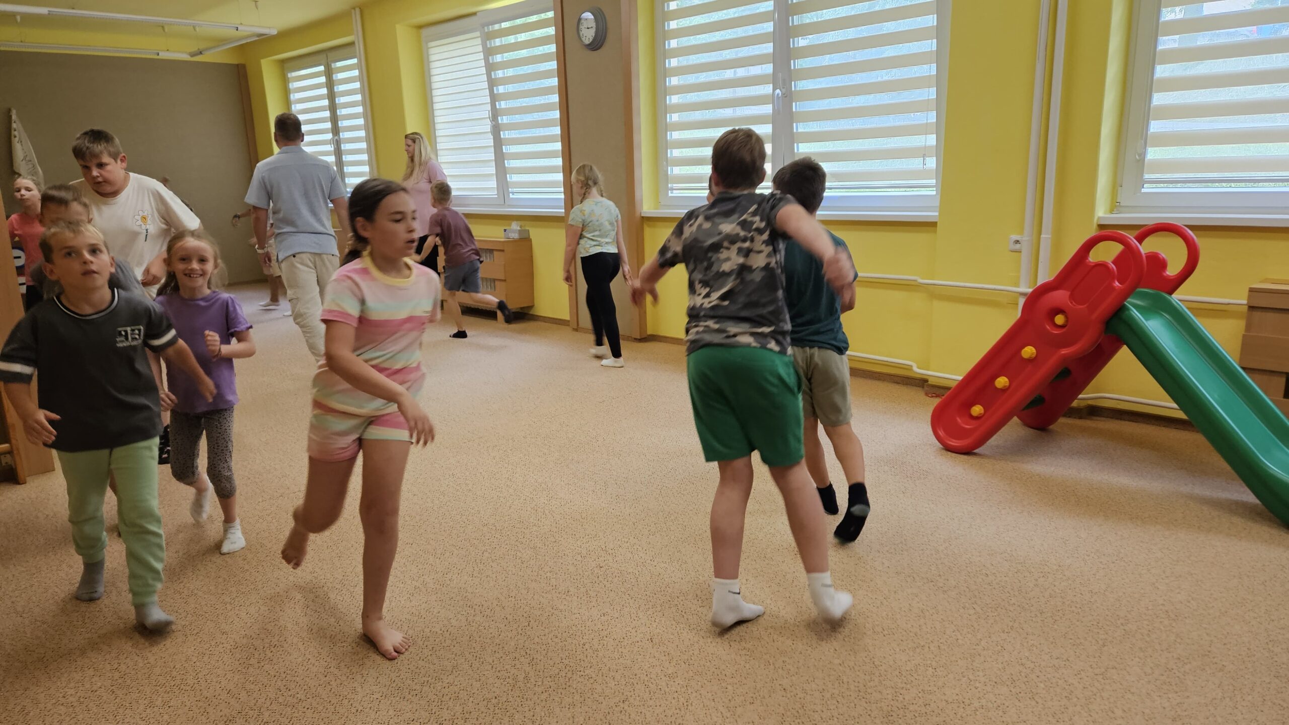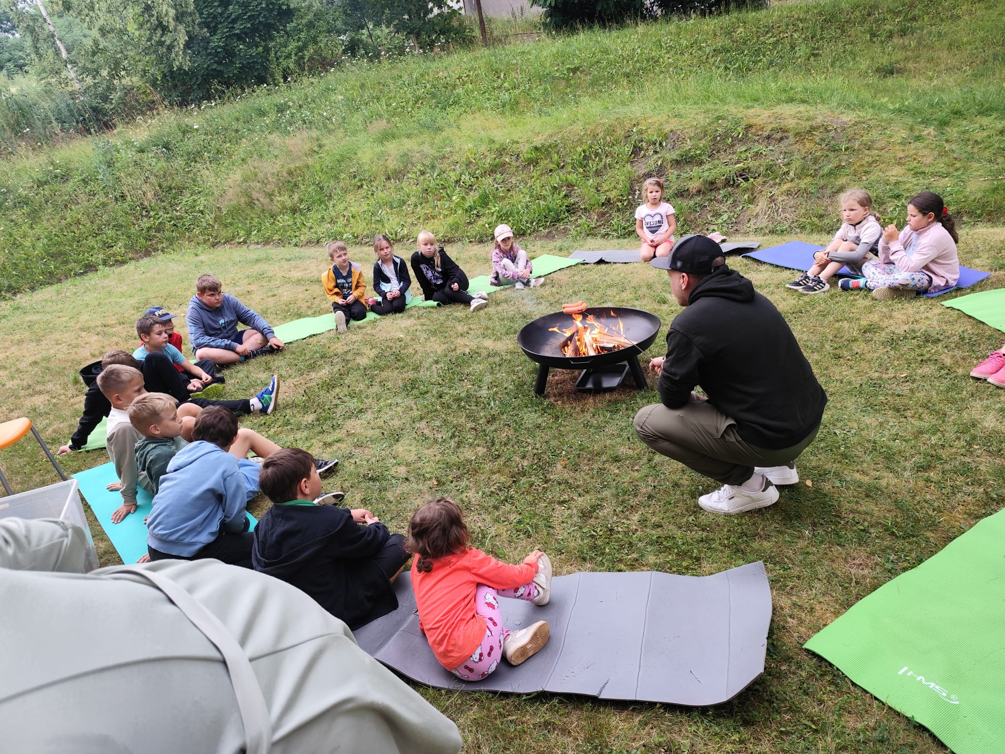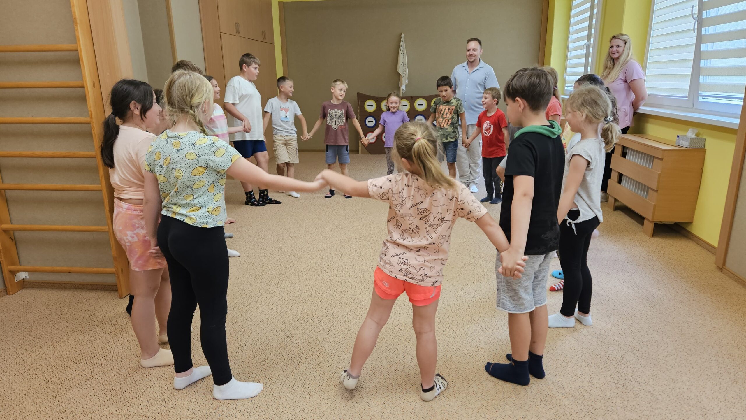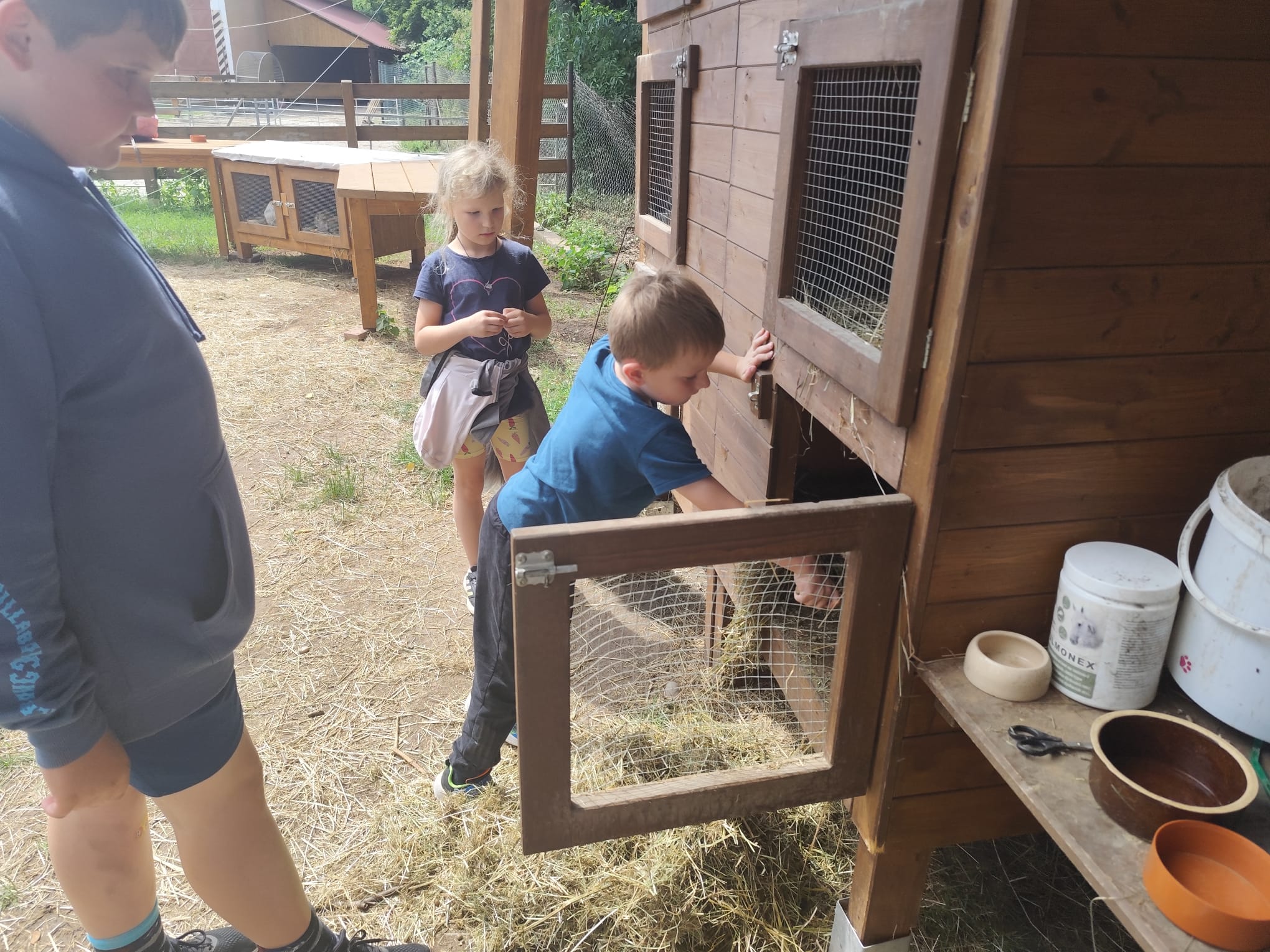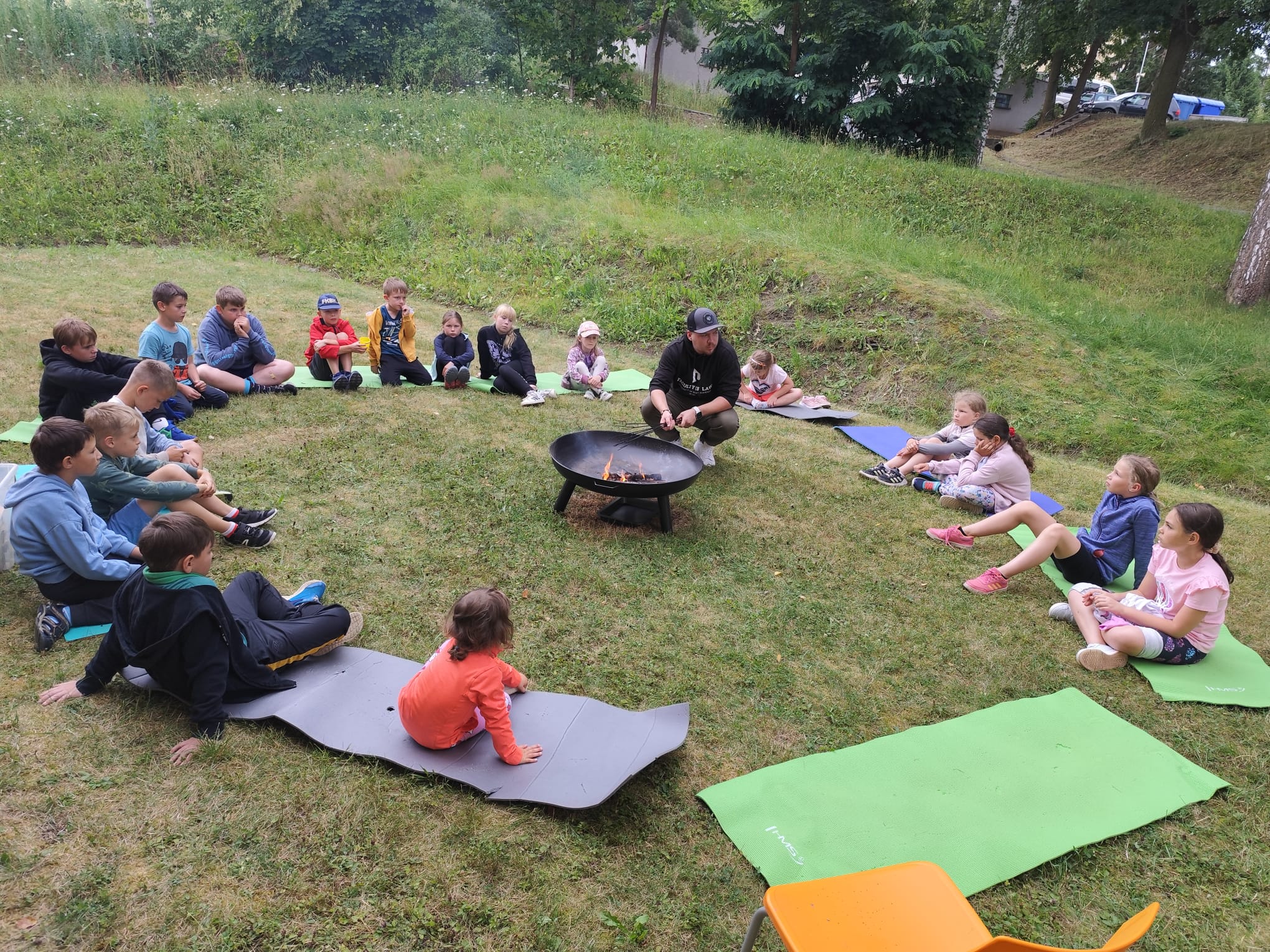 Ve čtvrtek se opět sportovalo a soutěžilo, ale odpoledne patřilo zvířatům zblízka. Děti navštívily králíky, znovu papoušky, a měly dokonce možnost projet se na koních. Během dne se podařilo zachránit i drobná, ale důležitá zvířata – motýla, včelu a mravence, která nesmí na arše chybět. Večer pak patřil klasickému táboráku – opékání buřtů, hra na kytaru a společné zpívání písniček sice ne pod hvězdami, jelikož nás vyhnal déšť, ale i tak si děti vytvořily nezapomenutelnou atmosféru. Tento večer byl výjimečný i tím, že děti zůstaly přes noc – přespávačka byla pro mnohé vrcholem týdne.