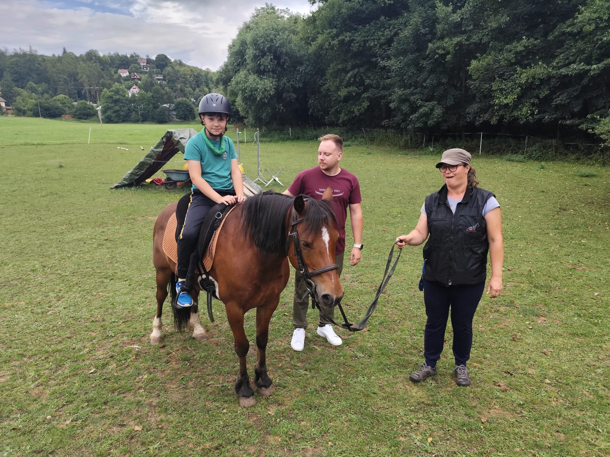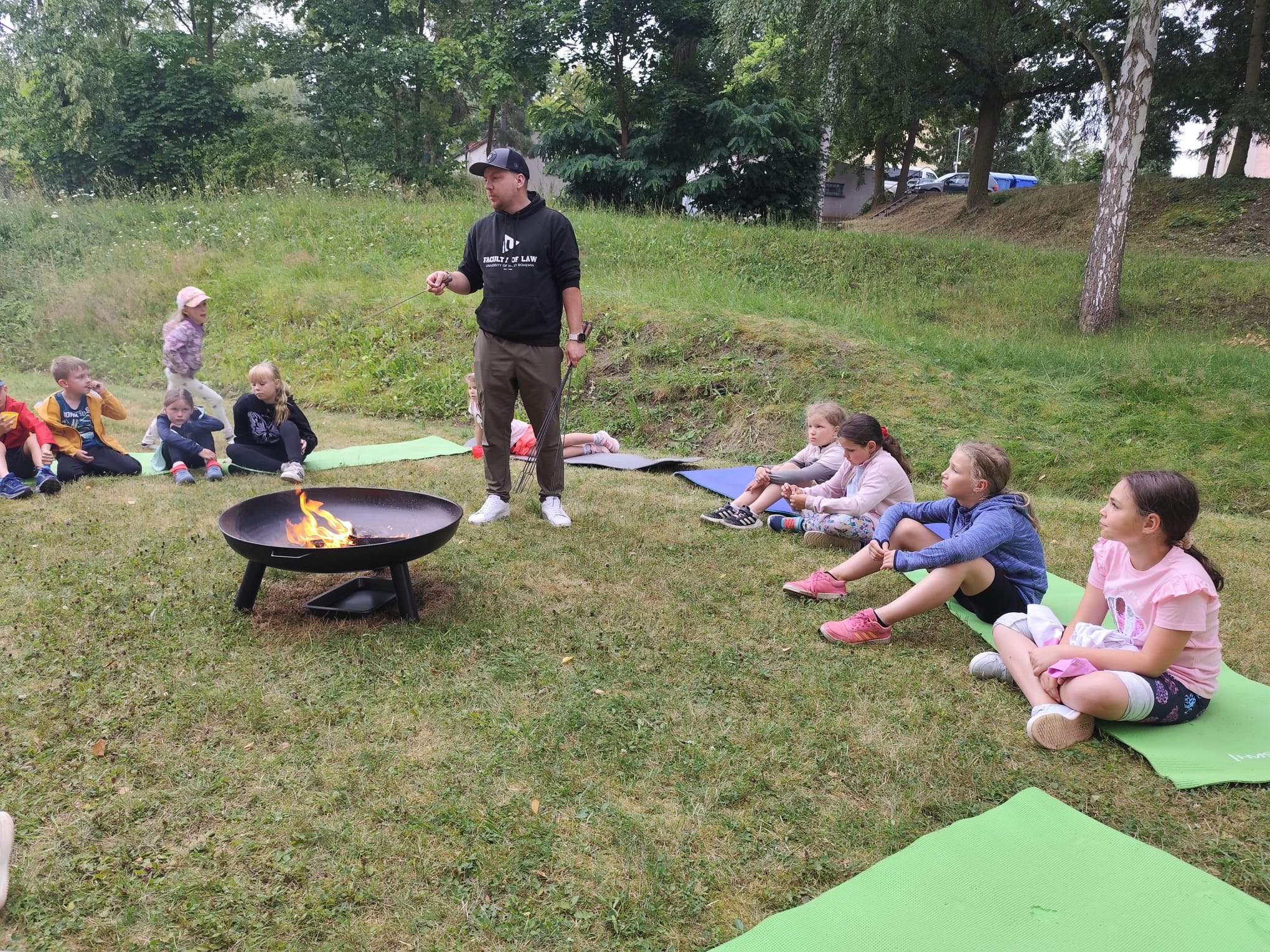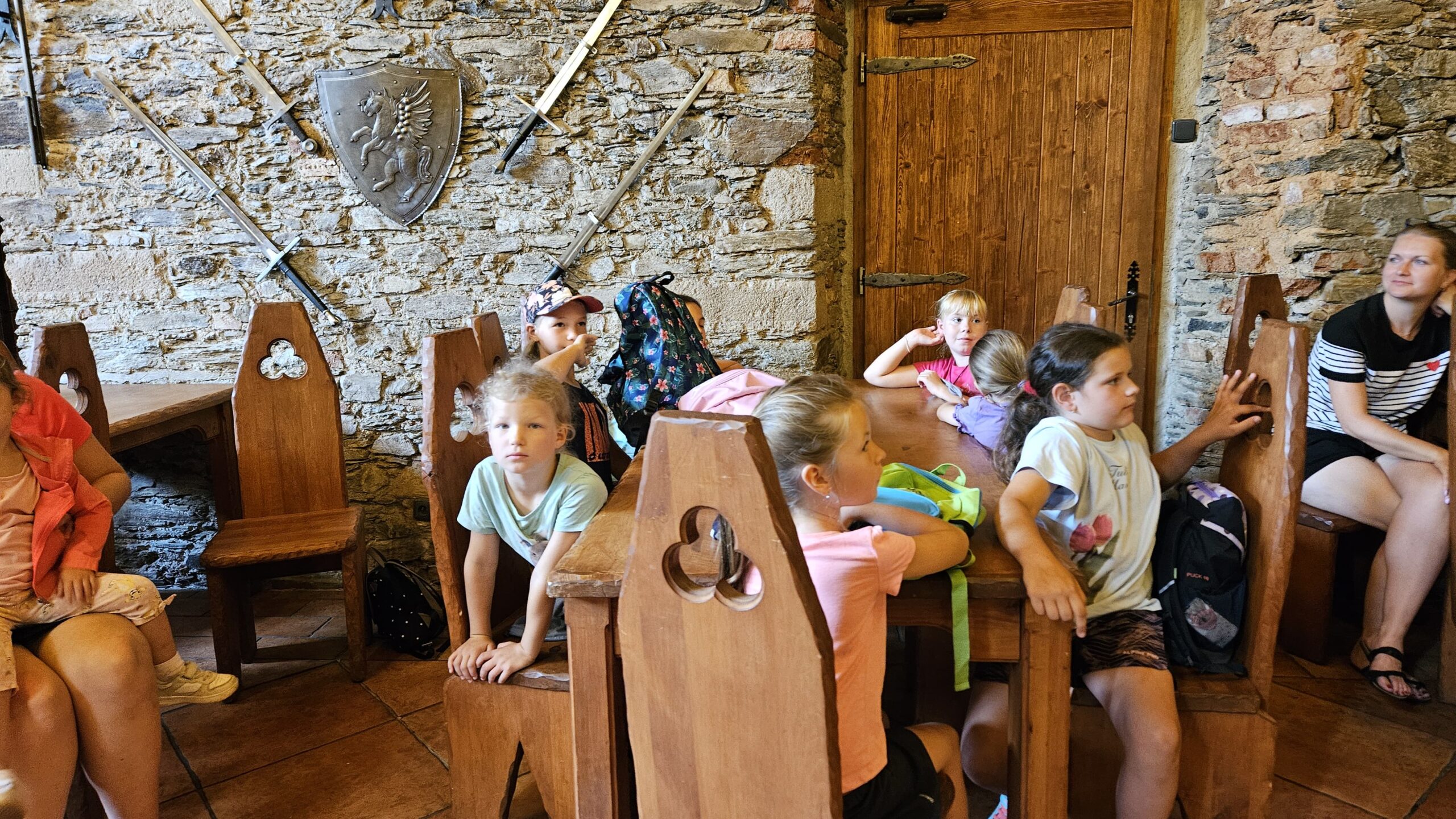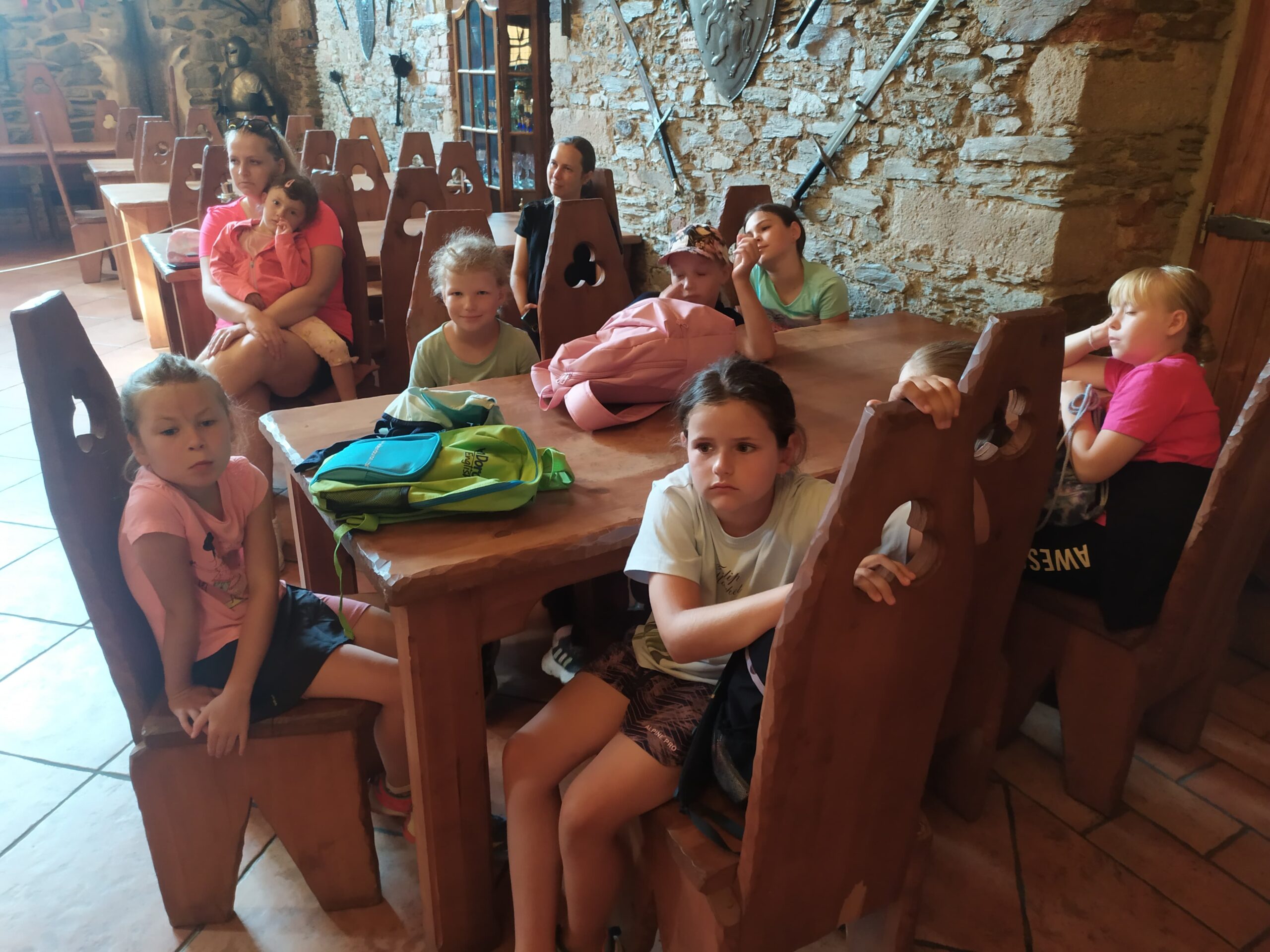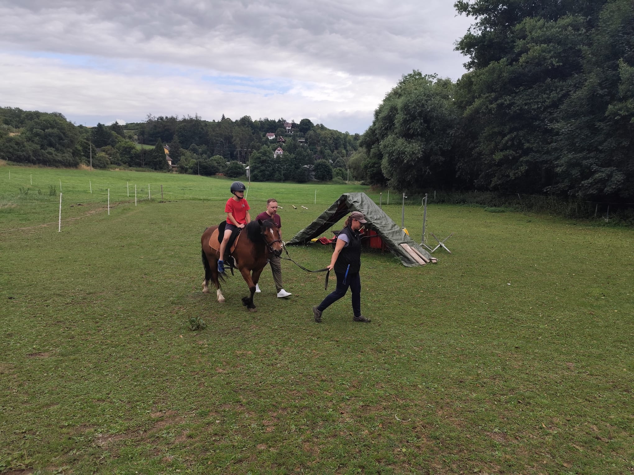 Ve čtvrtek se opět sportovalo a soutěžilo, ale odpoledne patřilo zvířatům zblízka. Děti navštívily králíky, znovu papoušky, a měly dokonce možnost projet se na koních. Během dne se podařilo zachránit i drobná, ale důležitá zvířata – motýla, včelu a mravence, která nesmí na arše chybět. Večer pak patřil klasickému táboráku – opékání buřtů, hra na kytaru a společné zpívání písniček sice ne pod hvězdami, jelikož nás vyhnal déšť, ale i tak si děti vytvořily nezapomenutelnou atmosféru. Tento večer byl výjimečný i tím, že děti zůstaly přes noc – přespávačka byla pro mnohé vrcholem týdne.