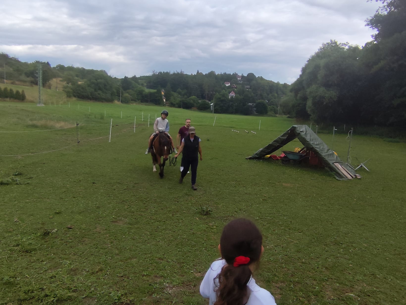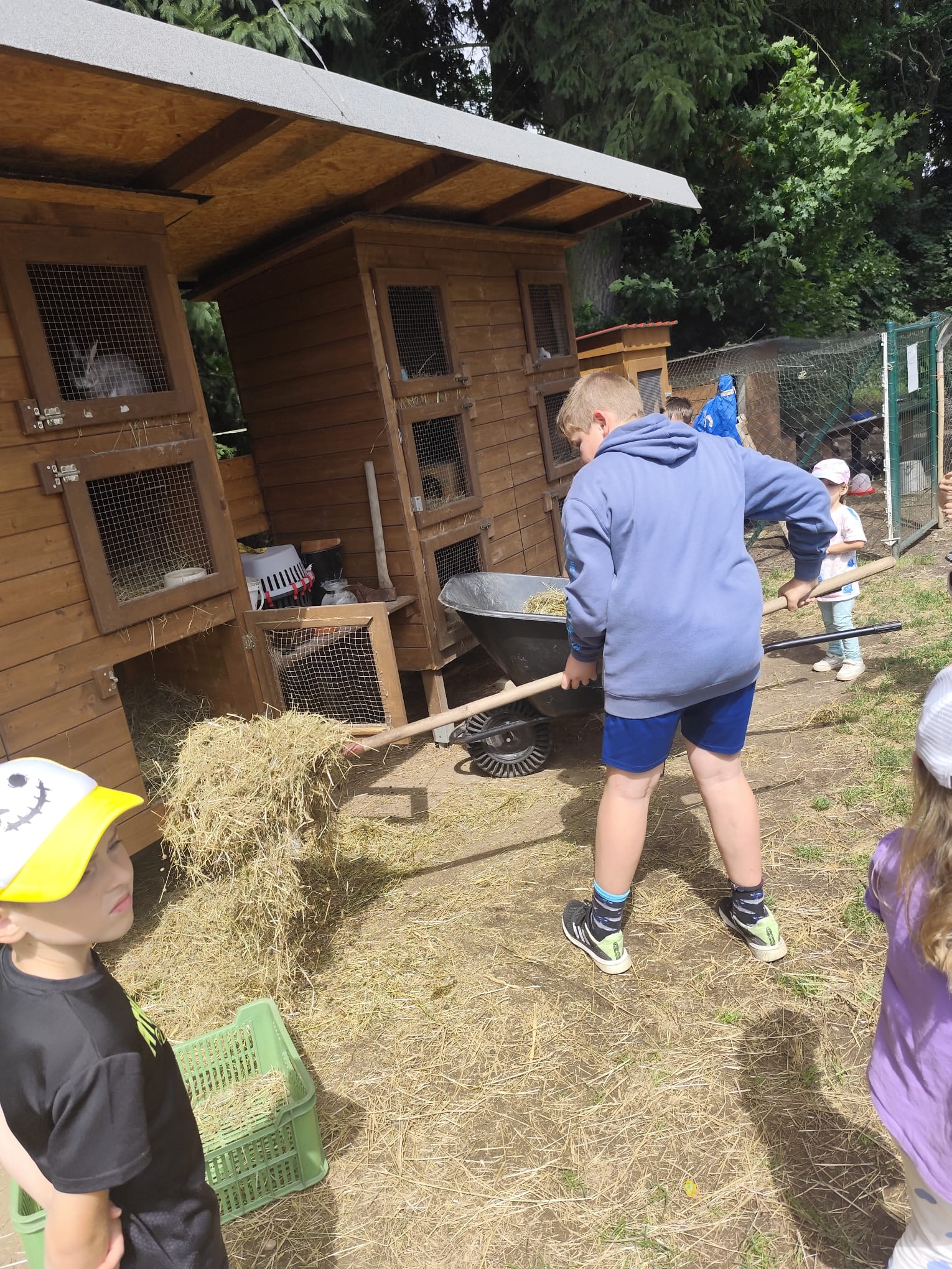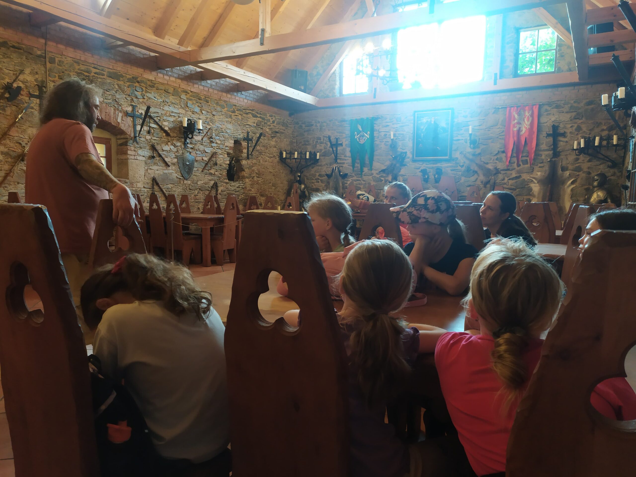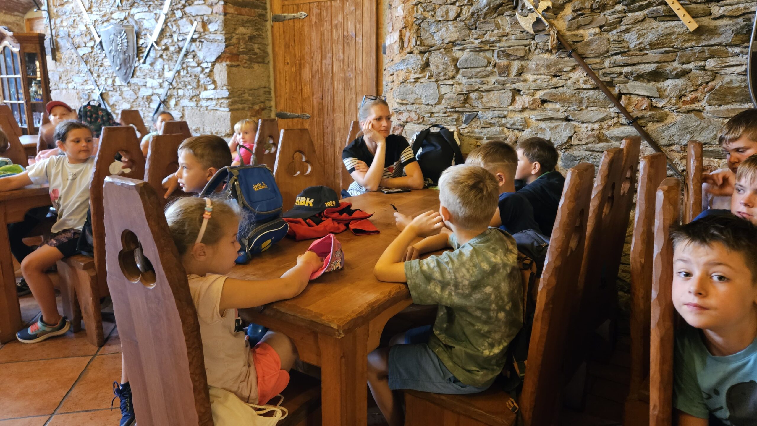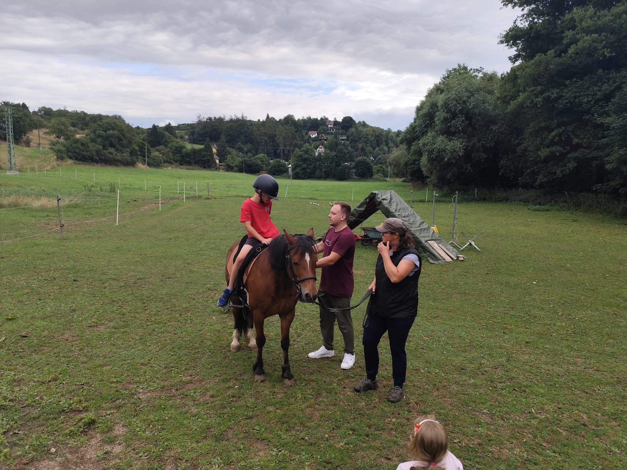 Ve čtvrtek se opět sportovalo a soutěžilo, ale odpoledne patřilo zvířatům zblízka. Děti navštívily králíky, znovu papoušky, a měly dokonce možnost projet se na koních. Během dne se podařilo zachránit i drobná, ale důležitá zvířata – motýla, včelu a mravence, která nesmí na arše chybět. Večer pak patřil klasickému táboráku – opékání buřtů, hra na kytaru a společné zpívání písniček sice ne pod hvězdami, jelikož nás vyhnal déšť, ale i tak si děti vytvořily nezapomenutelnou atmosféru. Tento večer byl výjimečný i tím, že děti zůstaly přes noc – přespávačka byla pro mnohé vrcholem týdne.