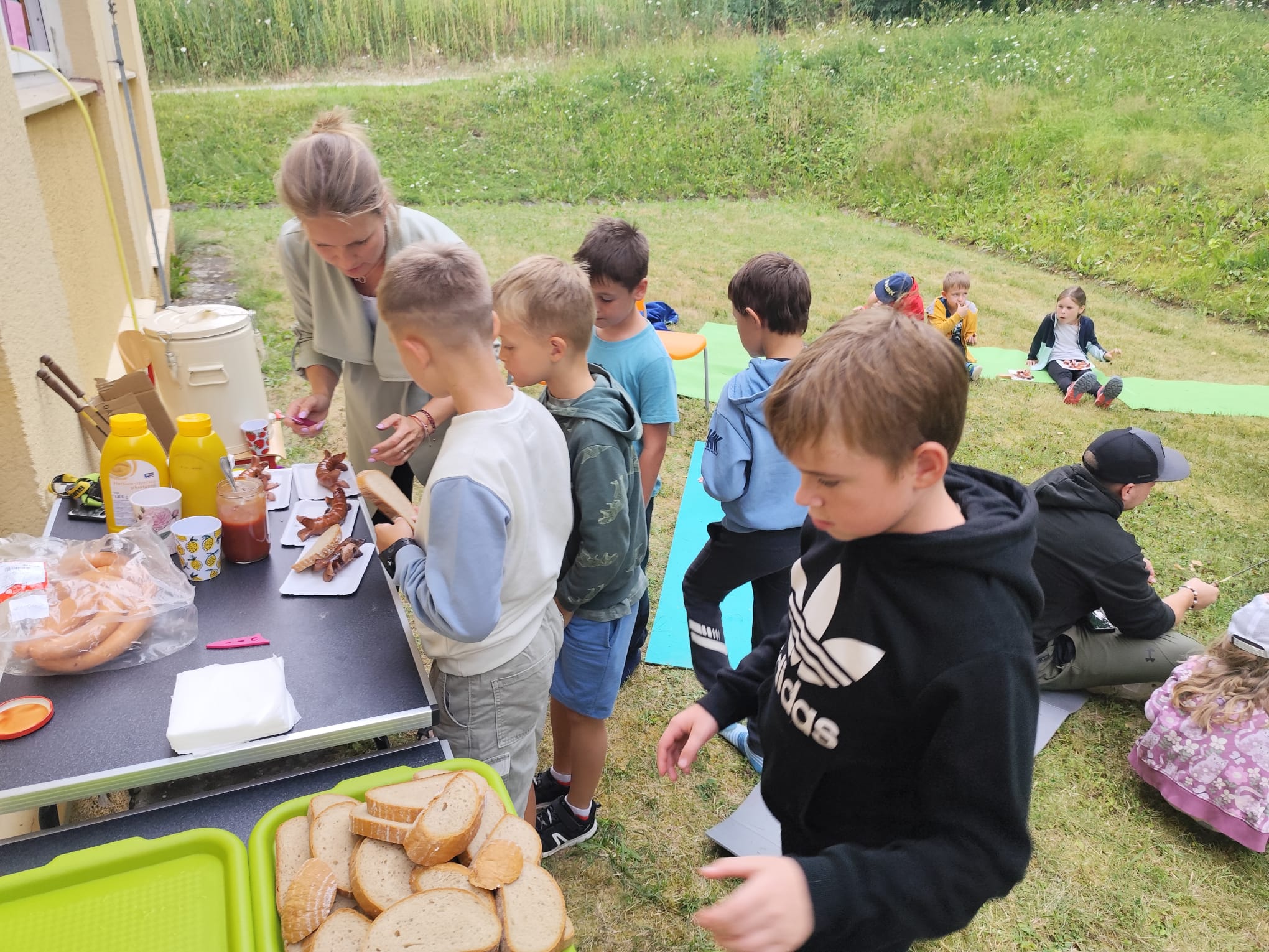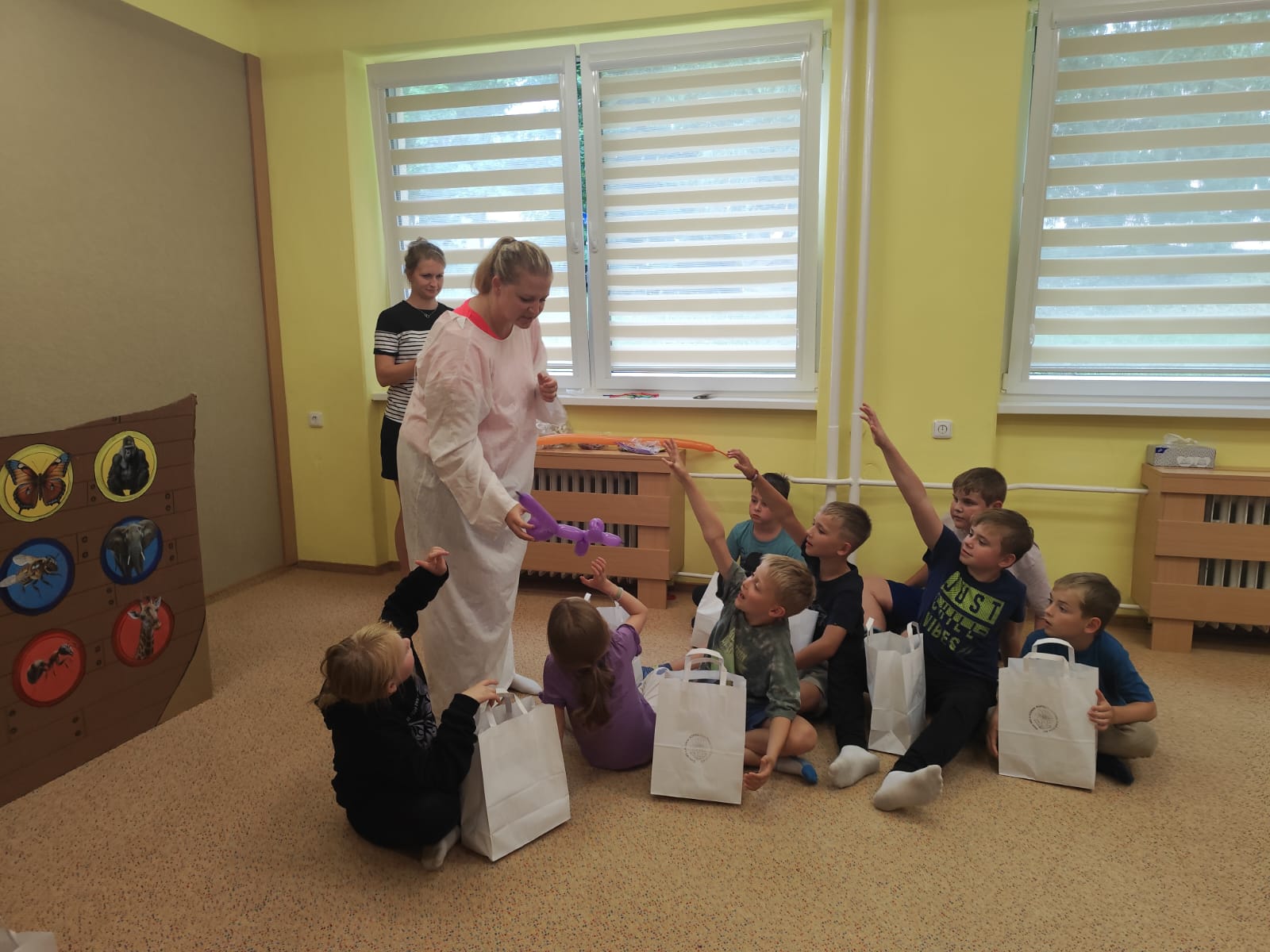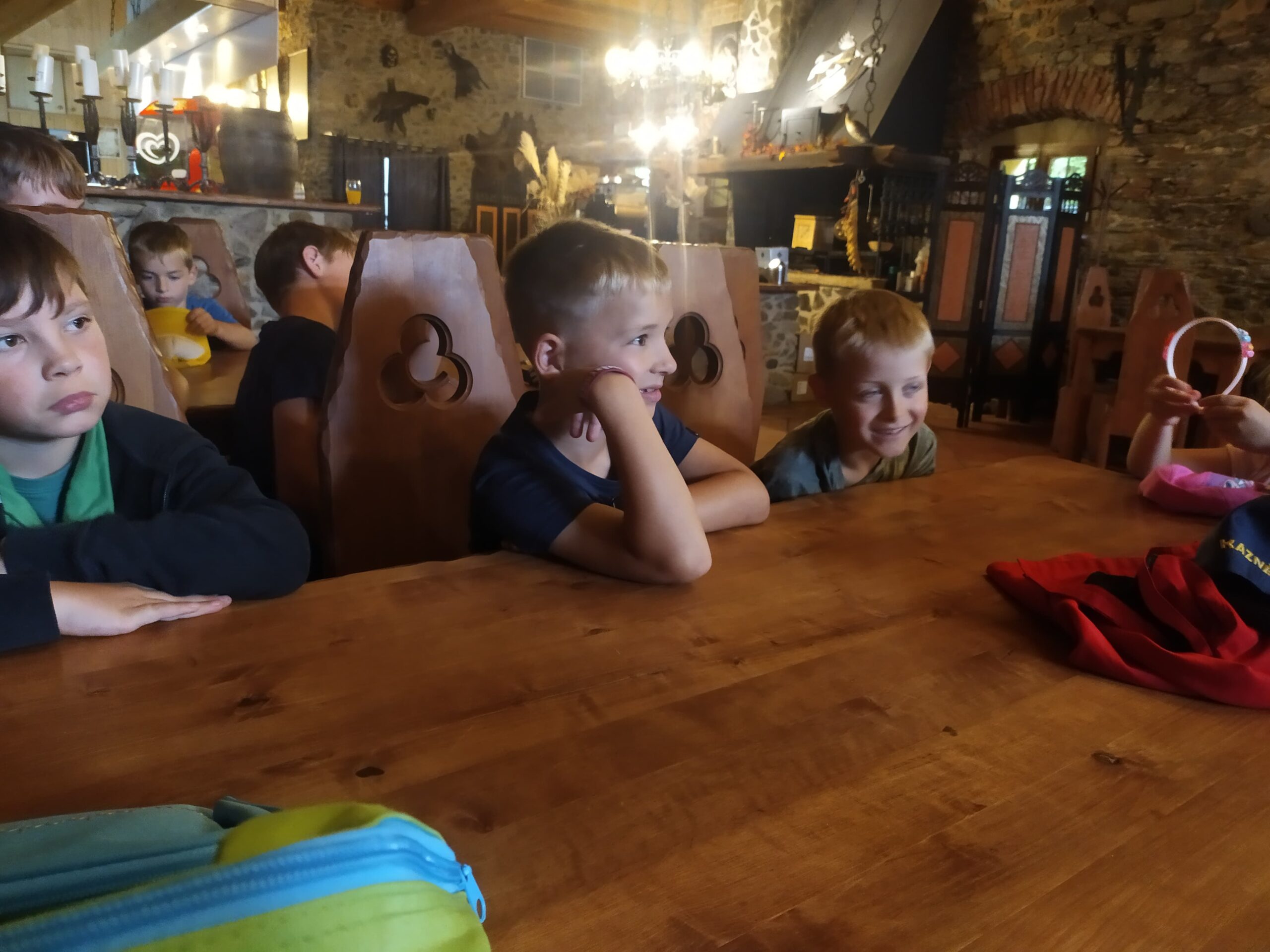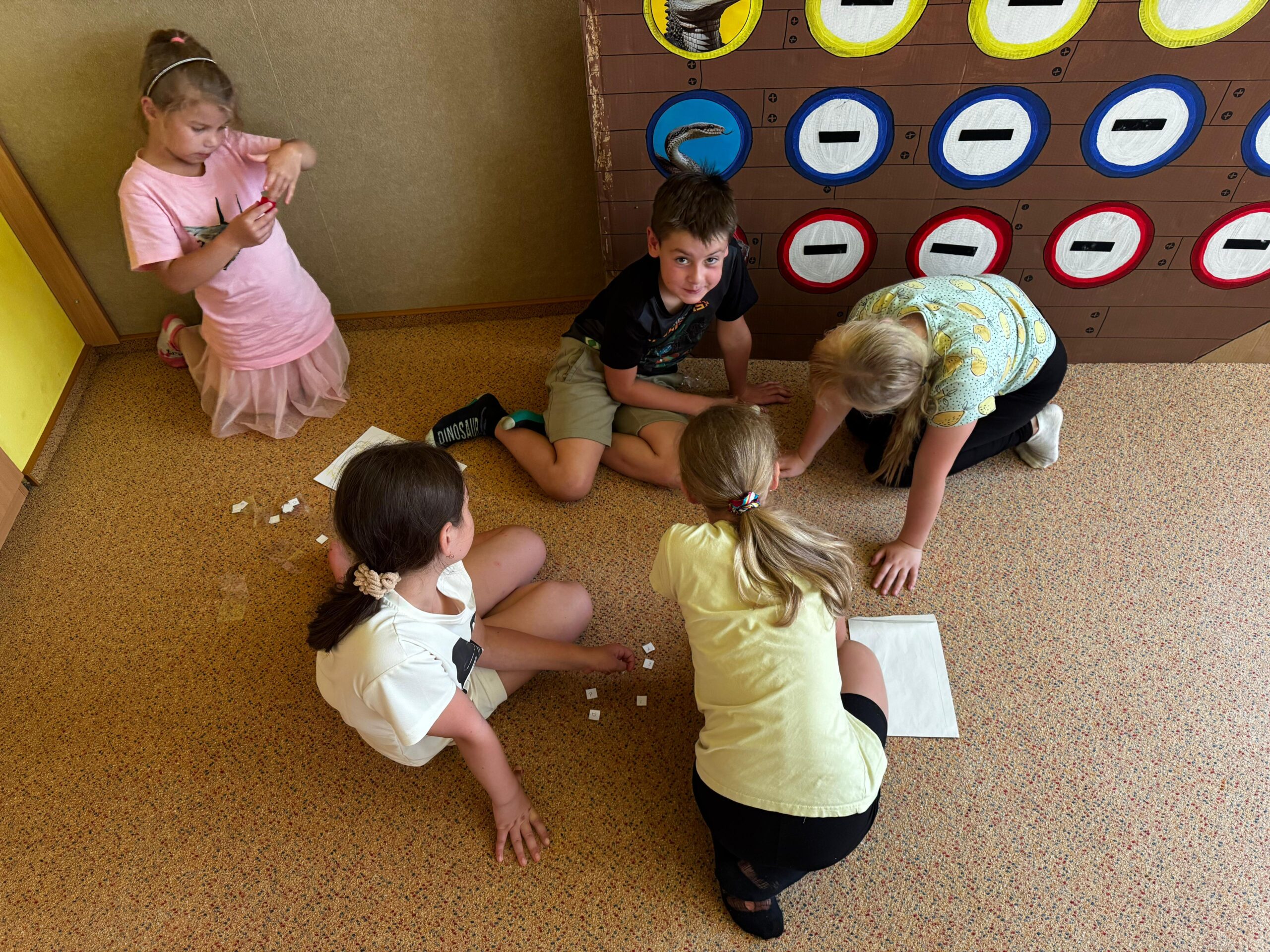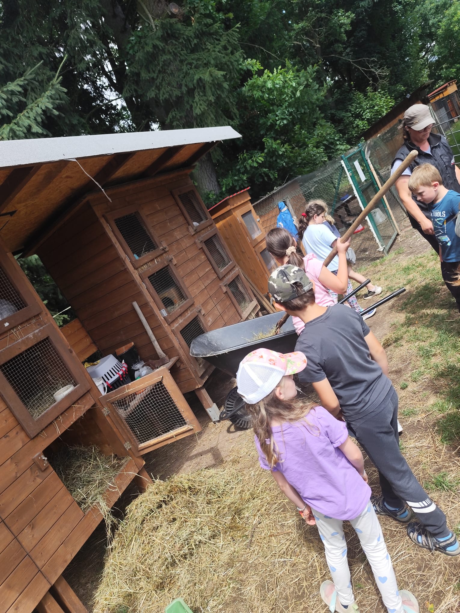 Ve čtvrtek se opět sportovalo a soutěžilo, ale odpoledne patřilo zvířatům zblízka. Děti navštívily králíky, znovu papoušky, a měly dokonce možnost projet se na koních. Během dne se podařilo zachránit i drobná, ale důležitá zvířata – motýla, včelu a mravence, která nesmí na arše chybět. Večer pak patřil klasickému táboráku – opékání buřtů, hra na kytaru a společné zpívání písniček sice ne pod hvězdami, jelikož nás vyhnal déšť, ale i tak si děti vytvořily nezapomenutelnou atmosféru. Tento večer byl výjimečný i tím, že děti zůstaly přes noc – přespávačka byla pro mnohé vrcholem týdne.