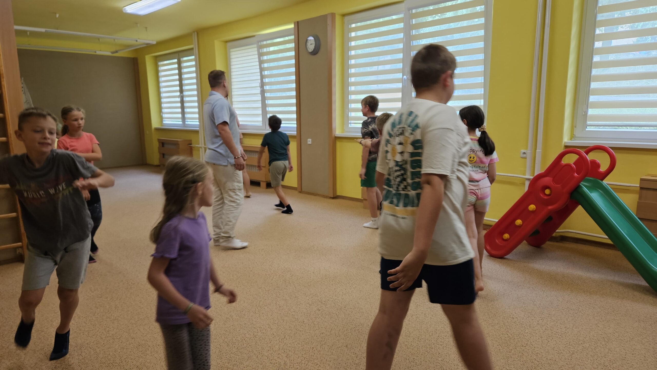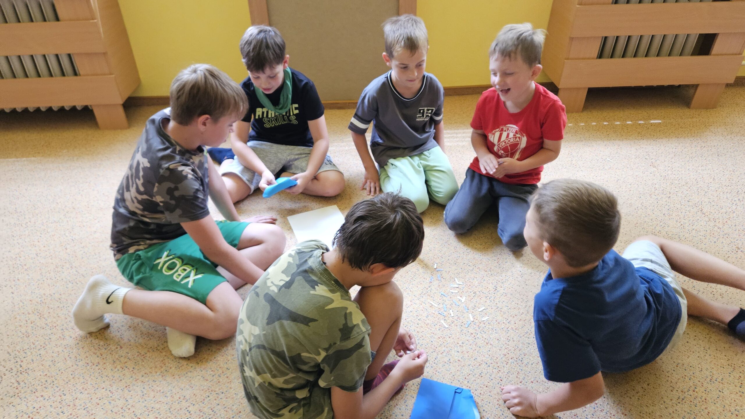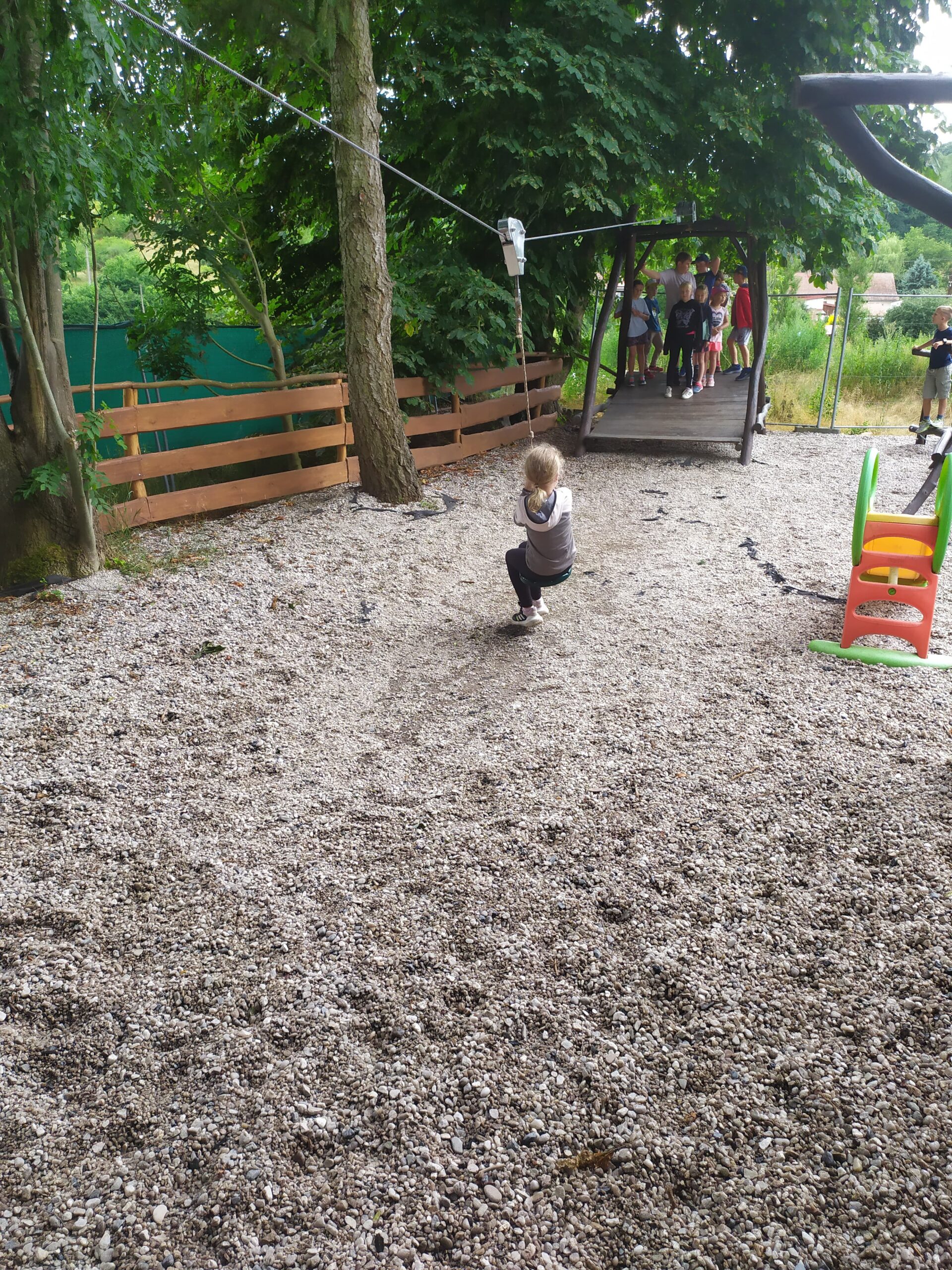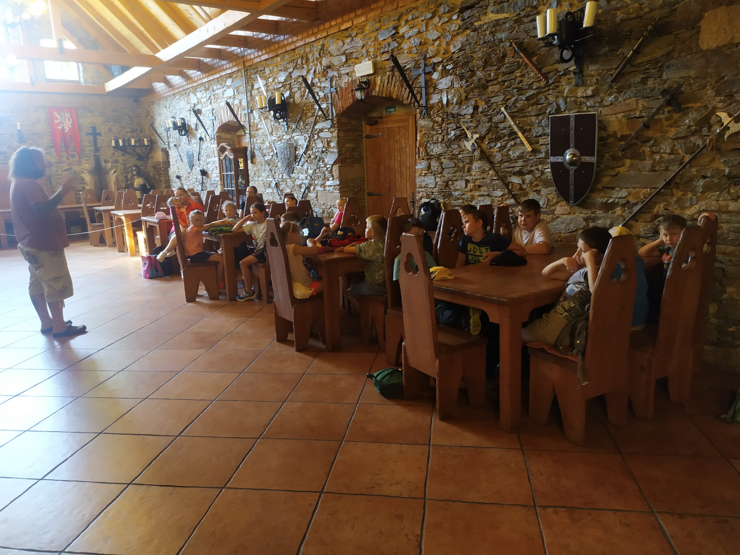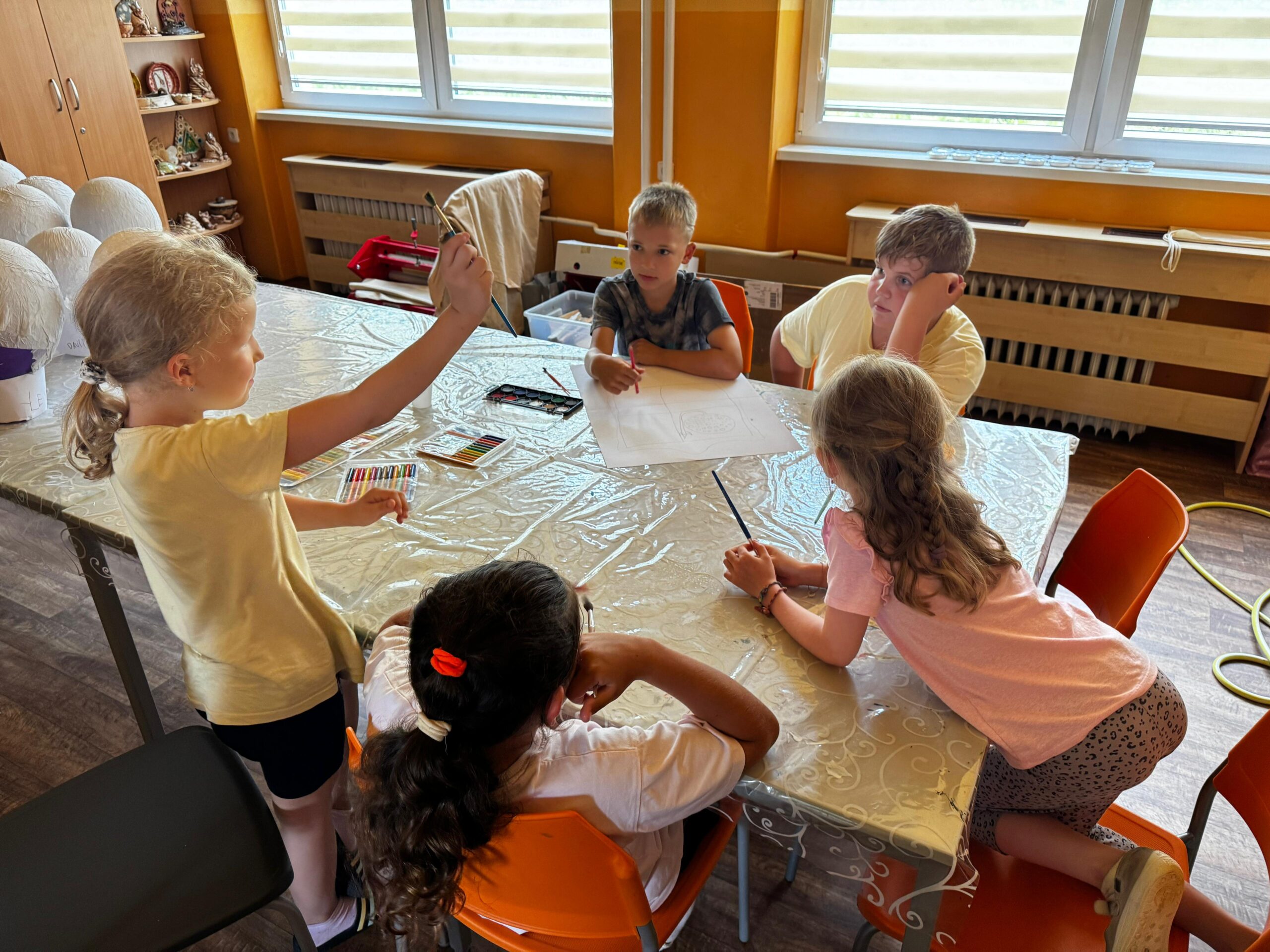 Ve čtvrtek se opět sportovalo a soutěžilo, ale odpoledne patřilo zvířatům zblízka. Děti navštívily králíky, znovu papoušky, a měly dokonce možnost projet se na koních. Během dne se podařilo zachránit i drobná, ale důležitá zvířata – motýla, včelu a mravence, která nesmí na arše chybět. Večer pak patřil klasickému táboráku – opékání buřtů, hra na kytaru a společné zpívání písniček sice ne pod hvězdami, jelikož nás vyhnal déšť, ale i tak si děti vytvořily nezapomenutelnou atmosféru. Tento večer byl výjimečný i tím, že děti zůstaly přes noc – přespávačka byla pro mnohé vrcholem týdne.