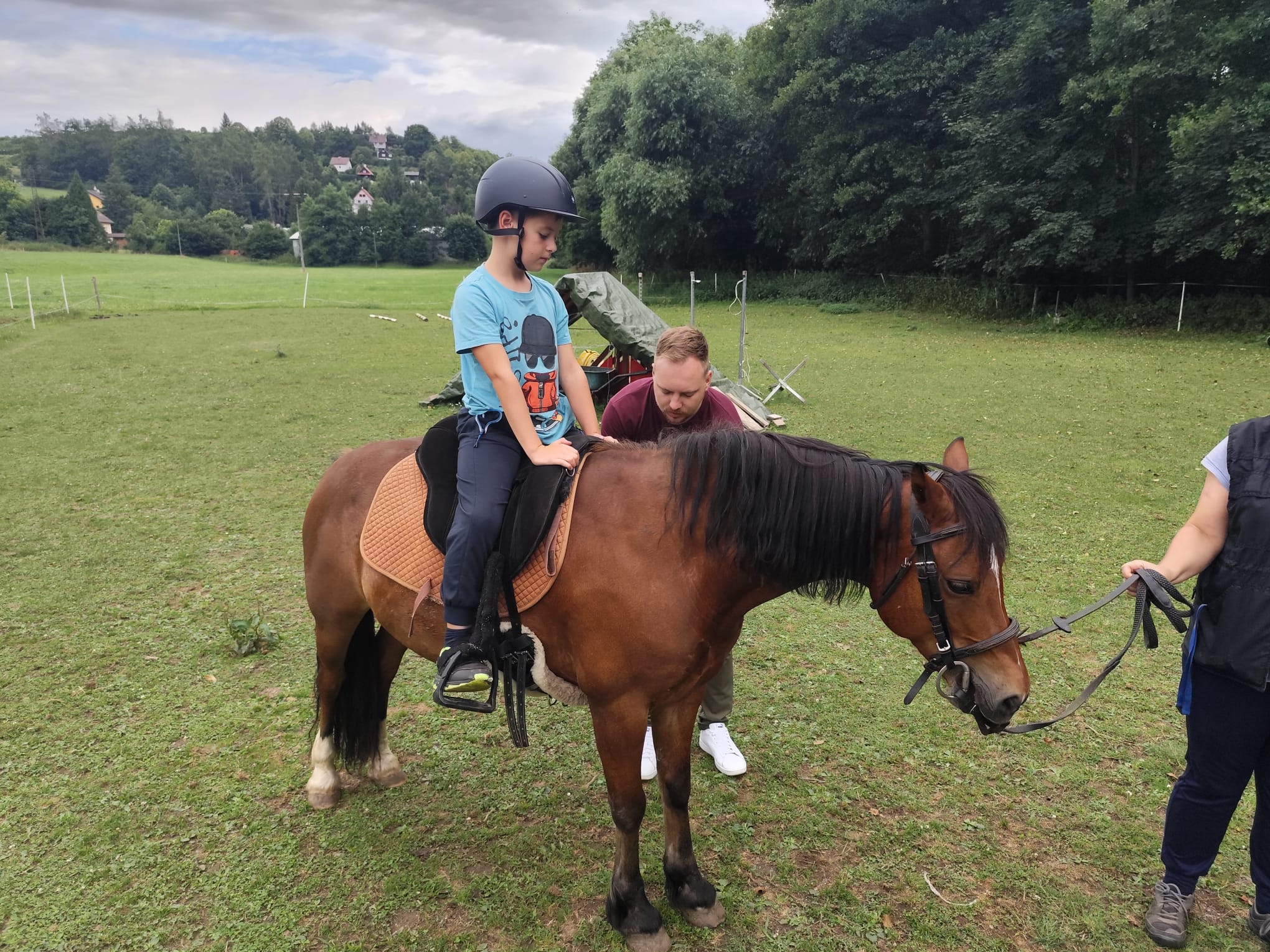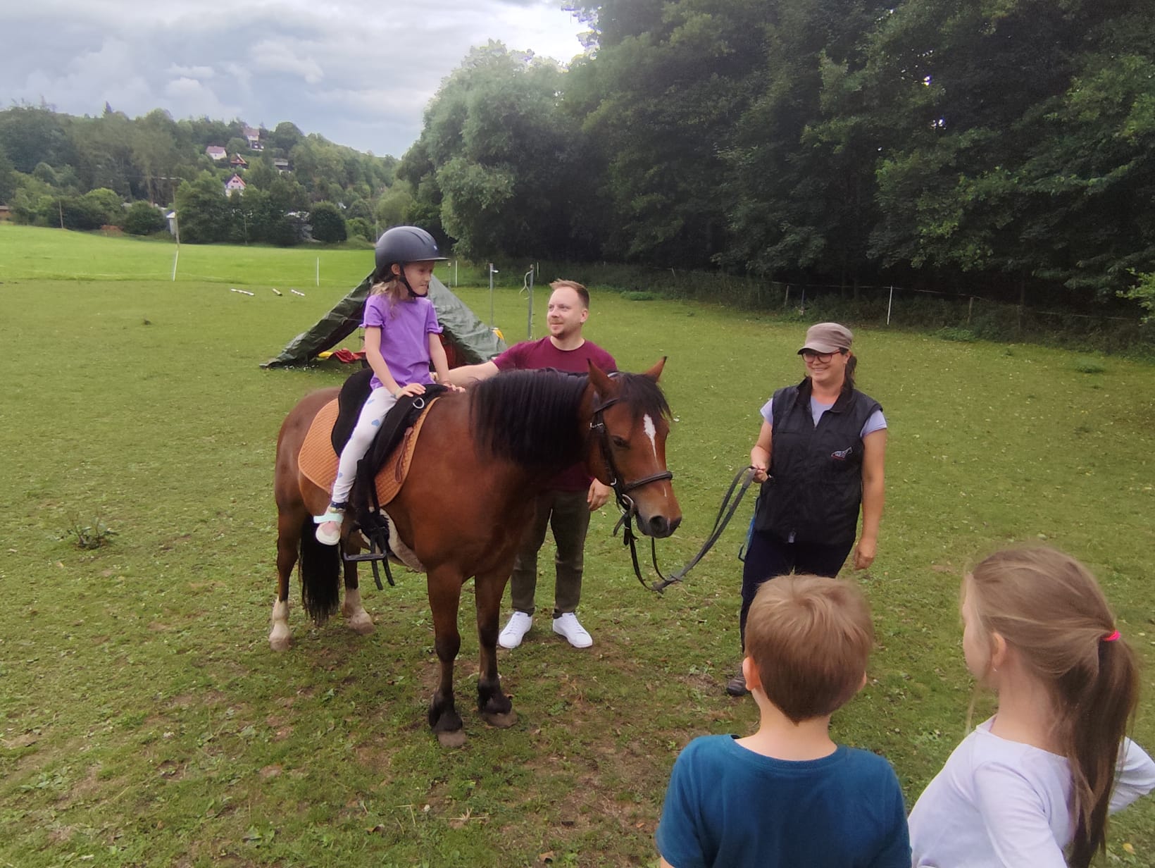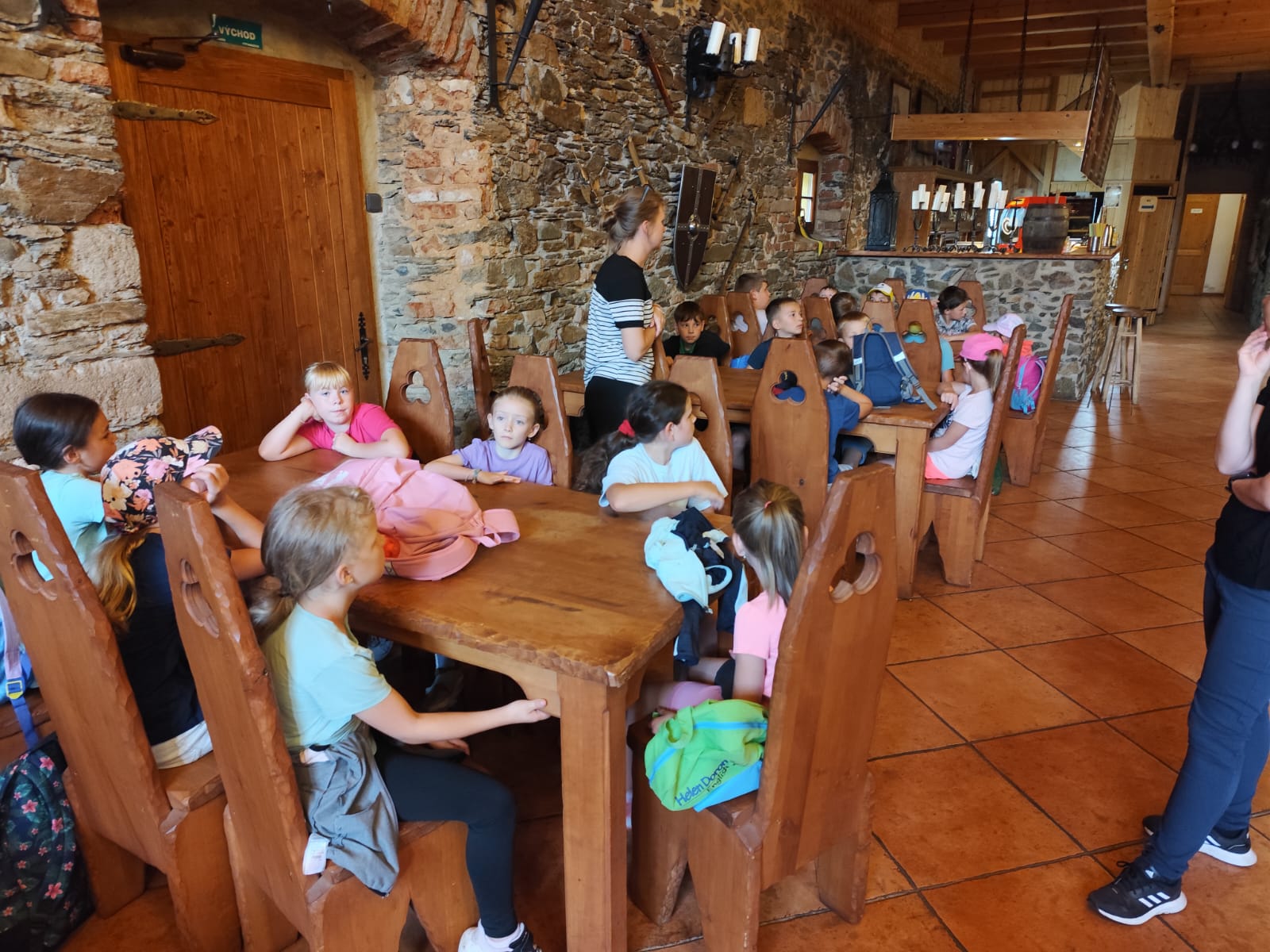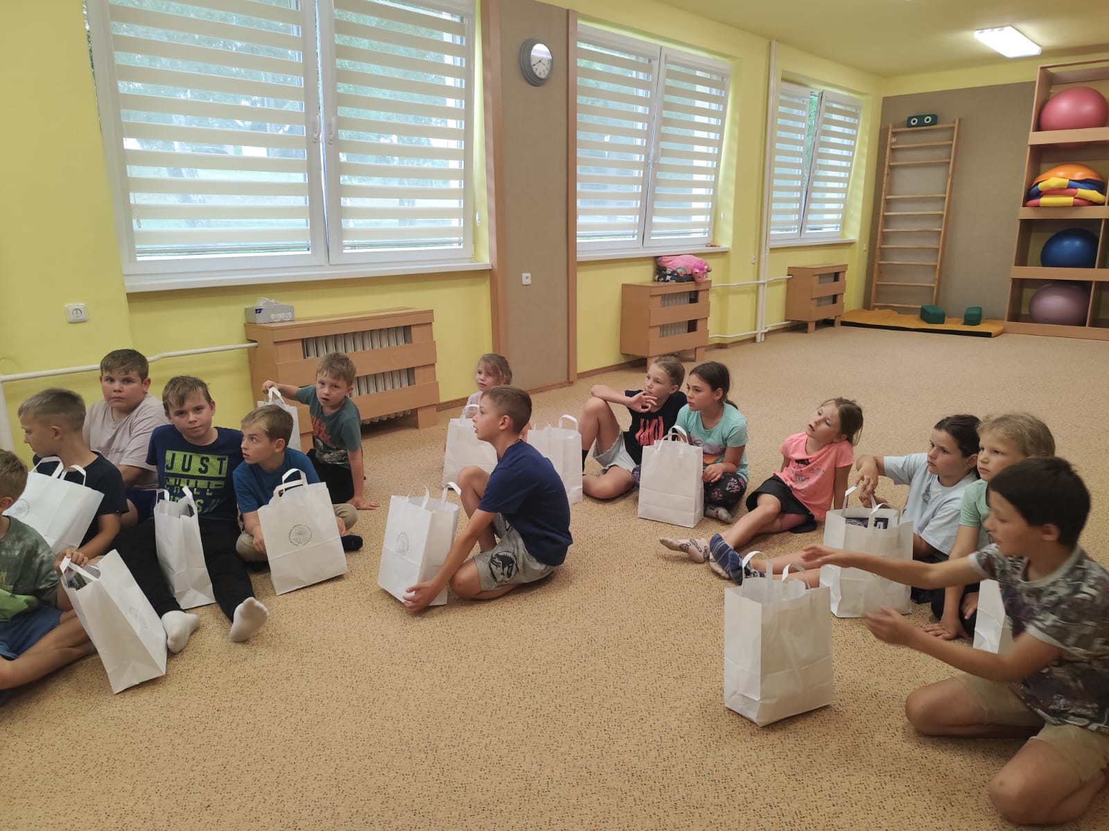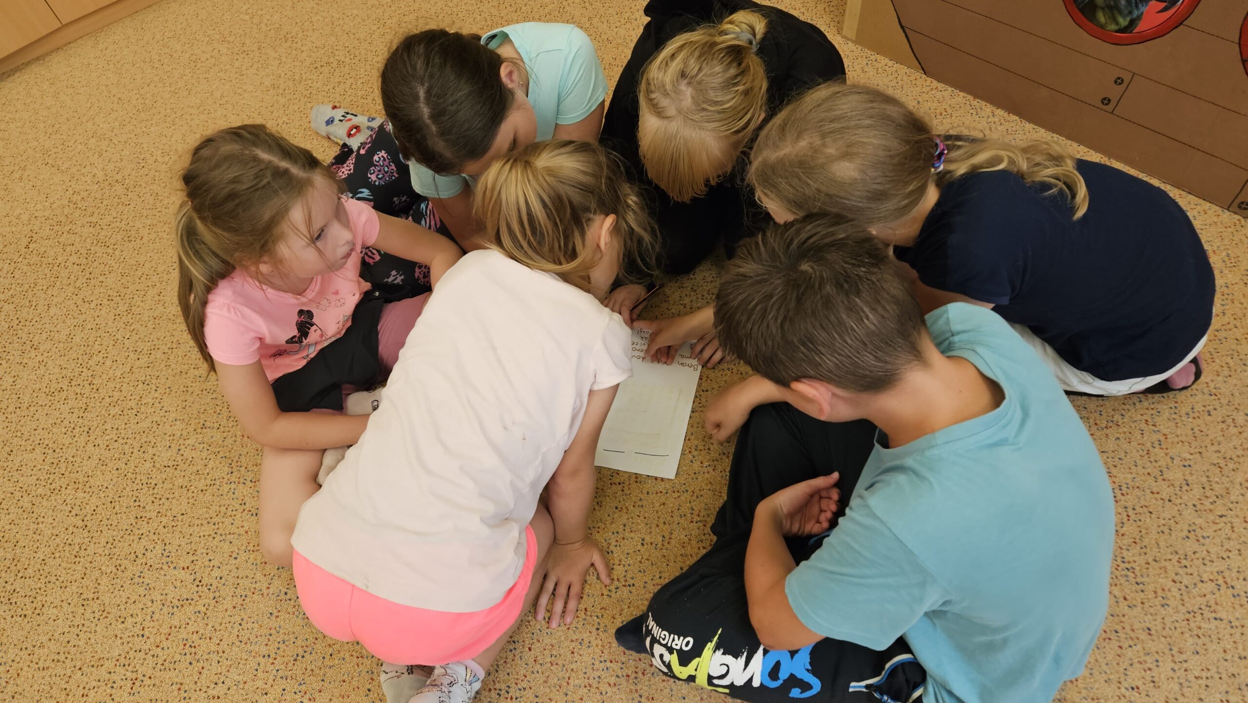 Ve čtvrtek se opět sportovalo a soutěžilo, ale odpoledne patřilo zvířatům zblízka. Děti navštívily králíky, znovu papoušky, a měly dokonce možnost projet se na koních. Během dne se podařilo zachránit i drobná, ale důležitá zvířata – motýla, včelu a mravence, která nesmí na arše chybět. Večer pak patřil klasickému táboráku – opékání buřtů, hra na kytaru a společné zpívání písniček sice ne pod hvězdami, jelikož nás vyhnal déšť, ale i tak si děti vytvořily nezapomenutelnou atmosféru. Tento večer byl výjimečný i tím, že děti zůstaly přes noc – přespávačka byla pro mnohé vrcholem týdne.