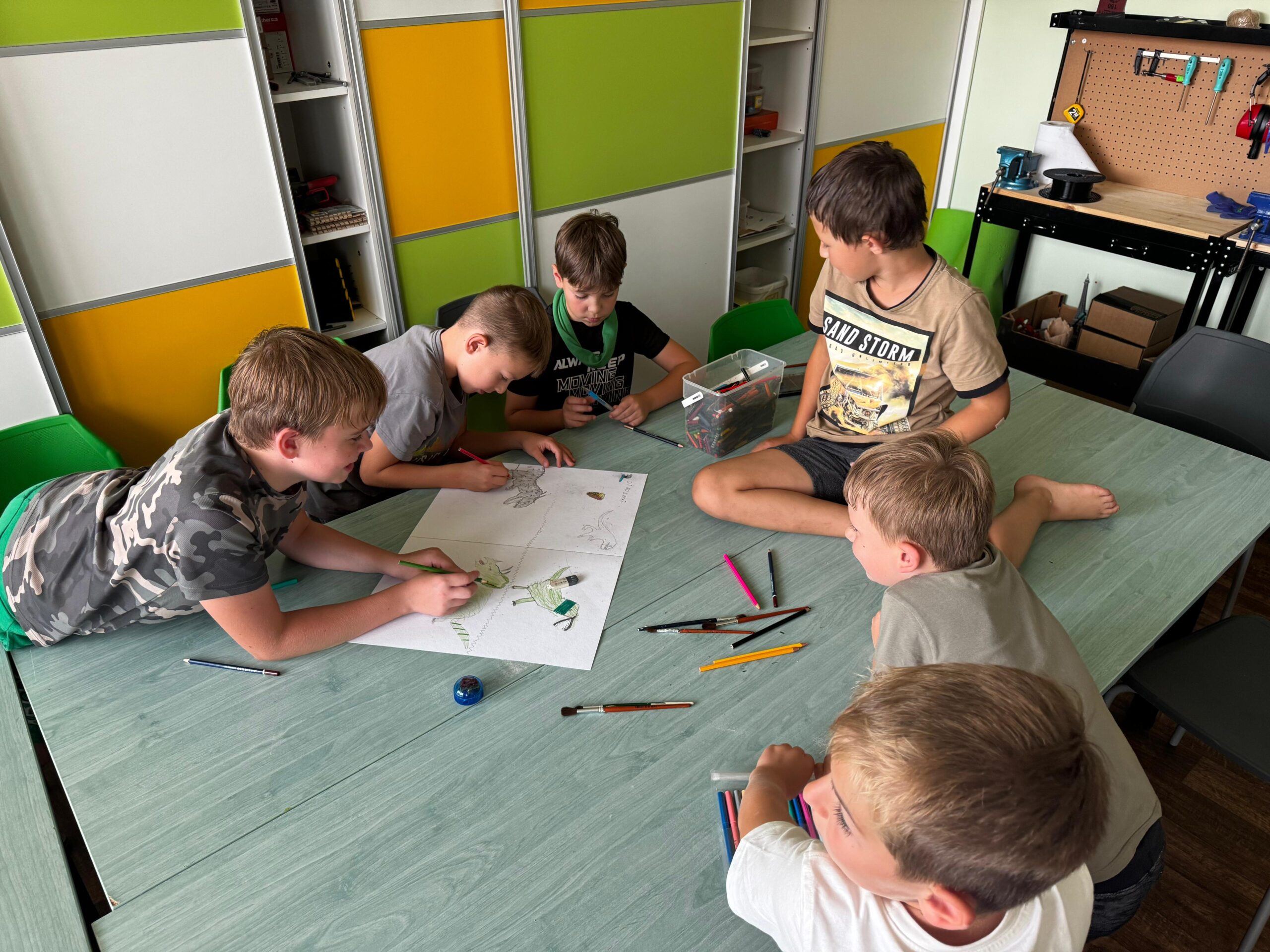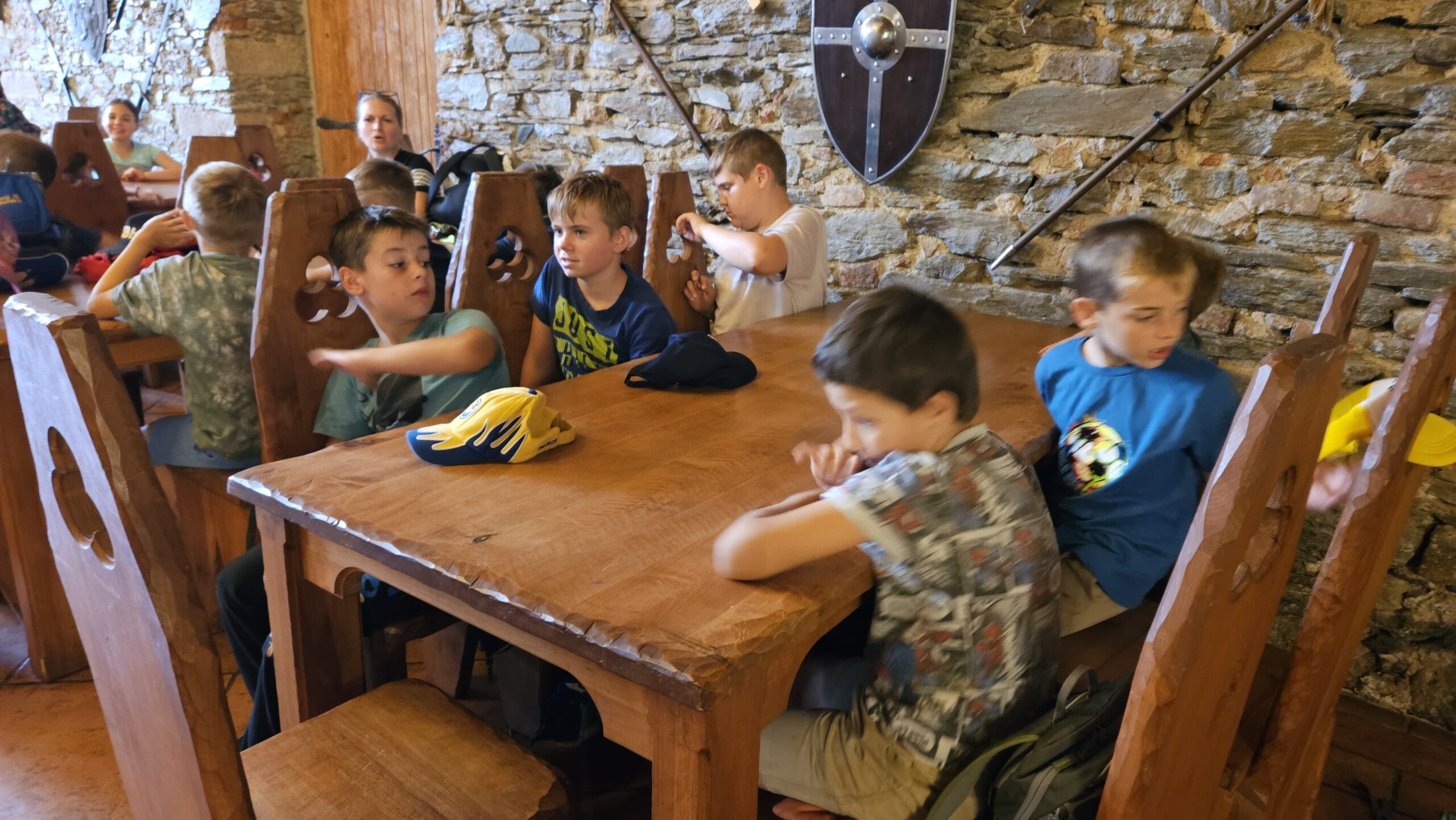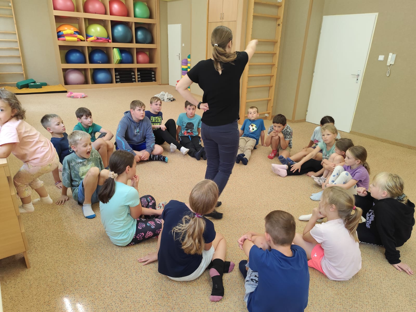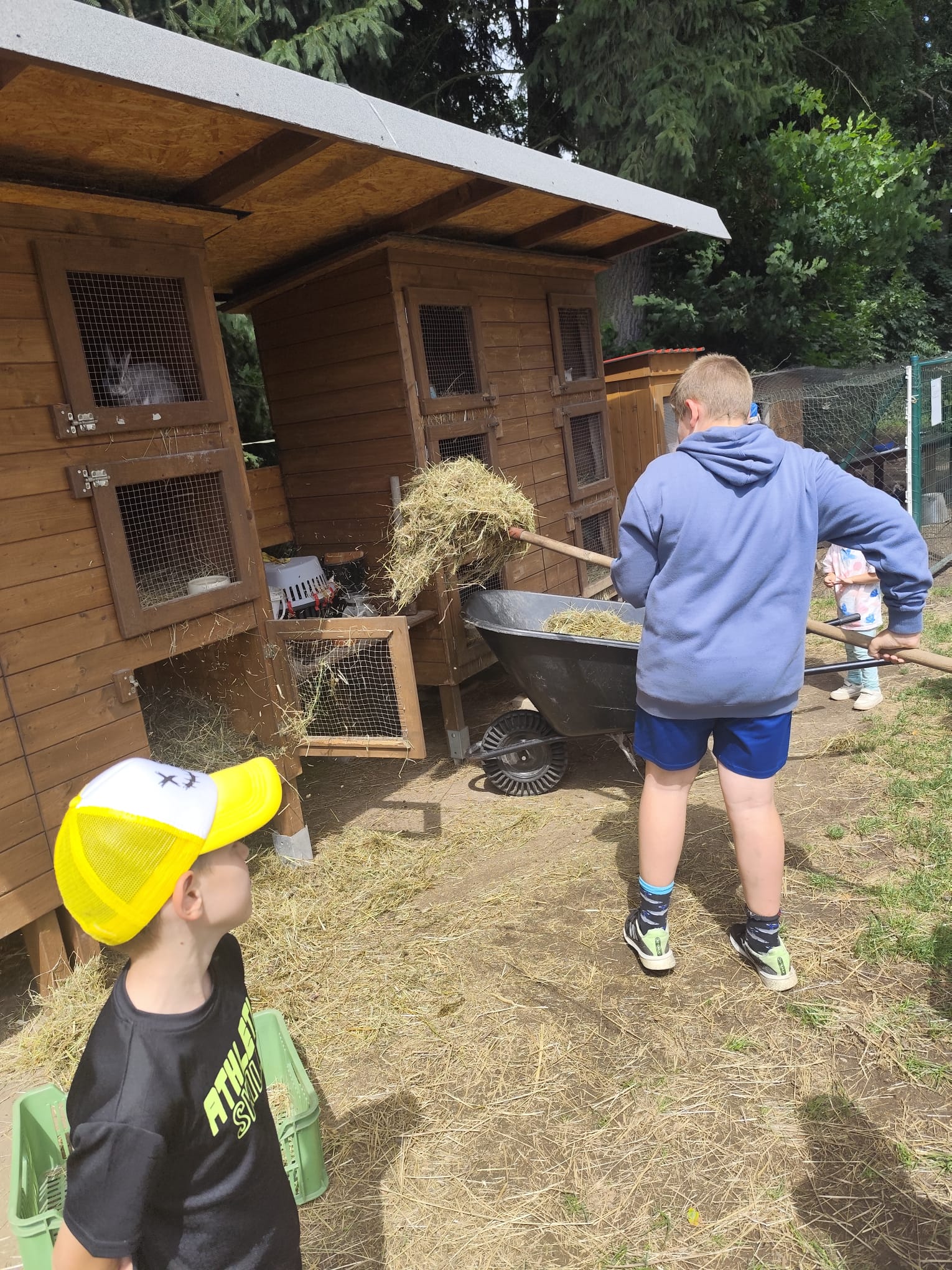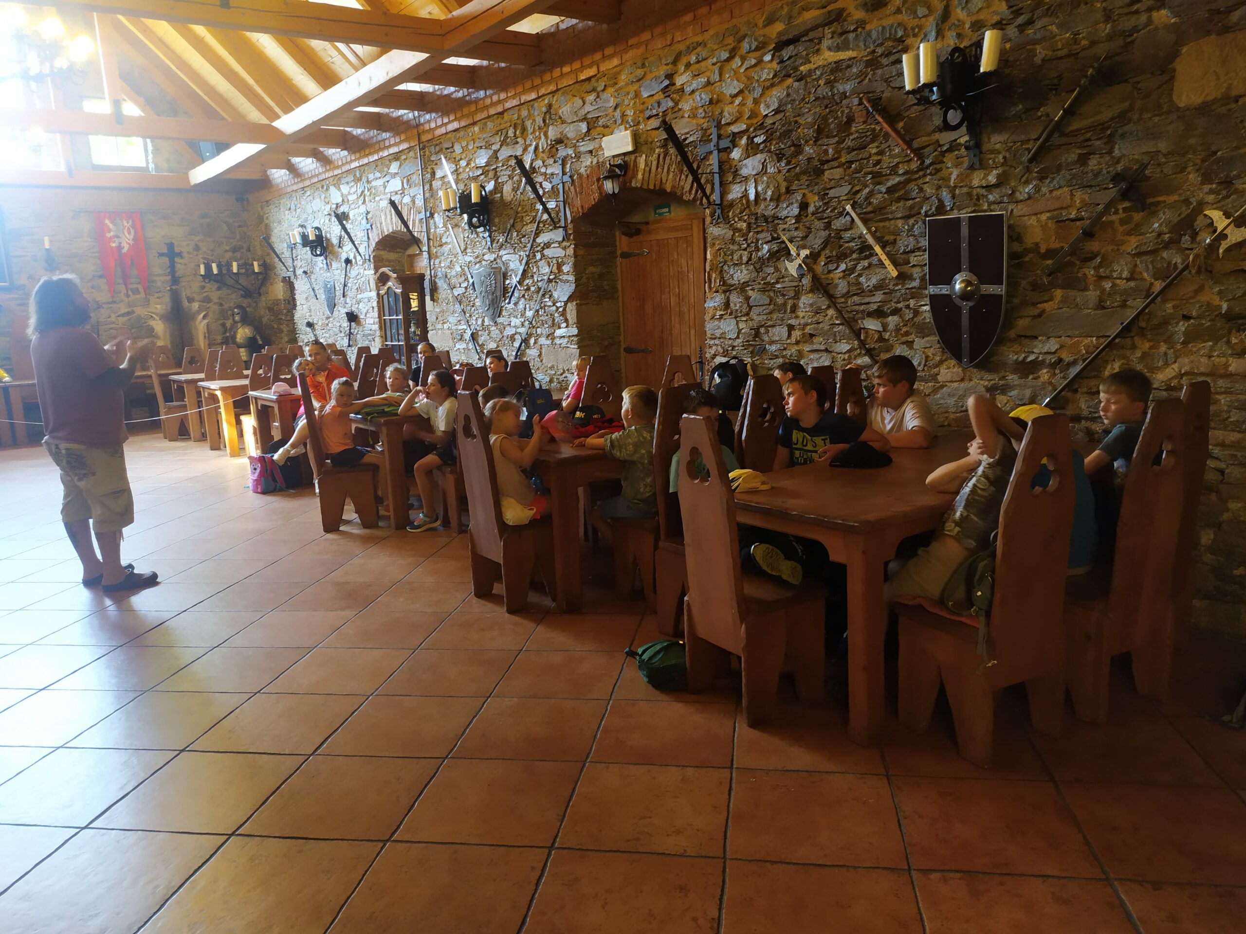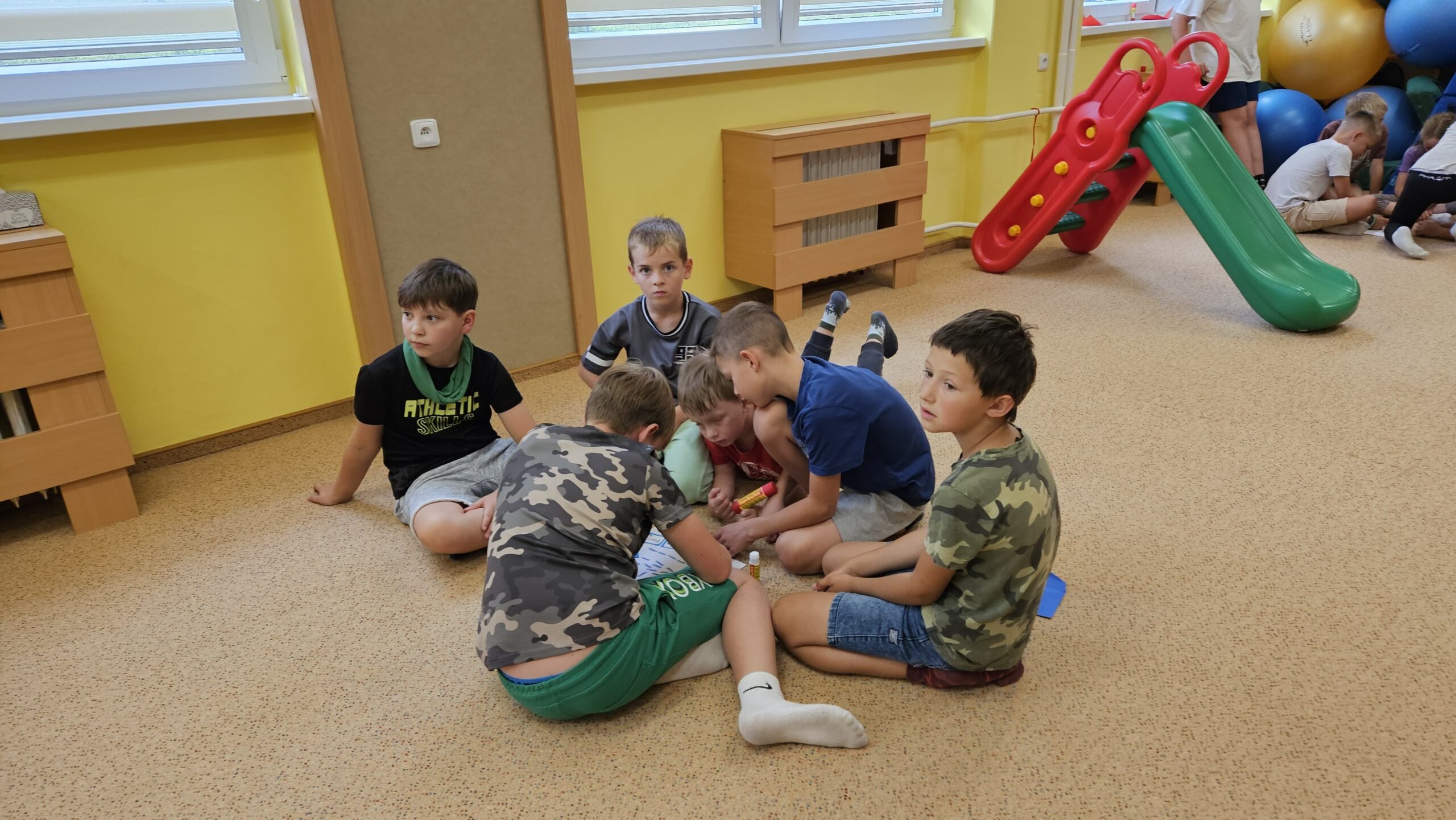 Ve čtvrtek se opět sportovalo a soutěžilo, ale odpoledne patřilo zvířatům zblízka. Děti navštívily králíky, znovu papoušky, a měly dokonce možnost projet se na koních. Během dne se podařilo zachránit i drobná, ale důležitá zvířata – motýla, včelu a mravence, která nesmí na arše chybět. Večer pak patřil klasickému táboráku – opékání buřtů, hra na kytaru a společné zpívání písniček sice ne pod hvězdami, jelikož nás vyhnal déšť, ale i tak si děti vytvořily nezapomenutelnou atmosféru. Tento večer byl výjimečný i tím, že děti zůstaly přes noc – přespávačka byla pro mnohé vrcholem týdne.