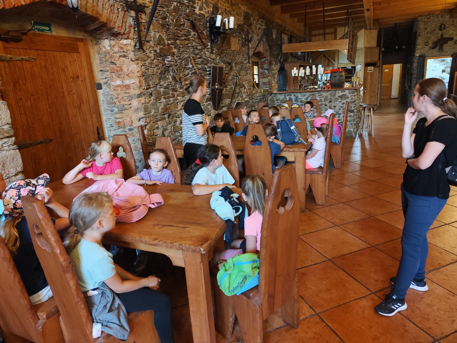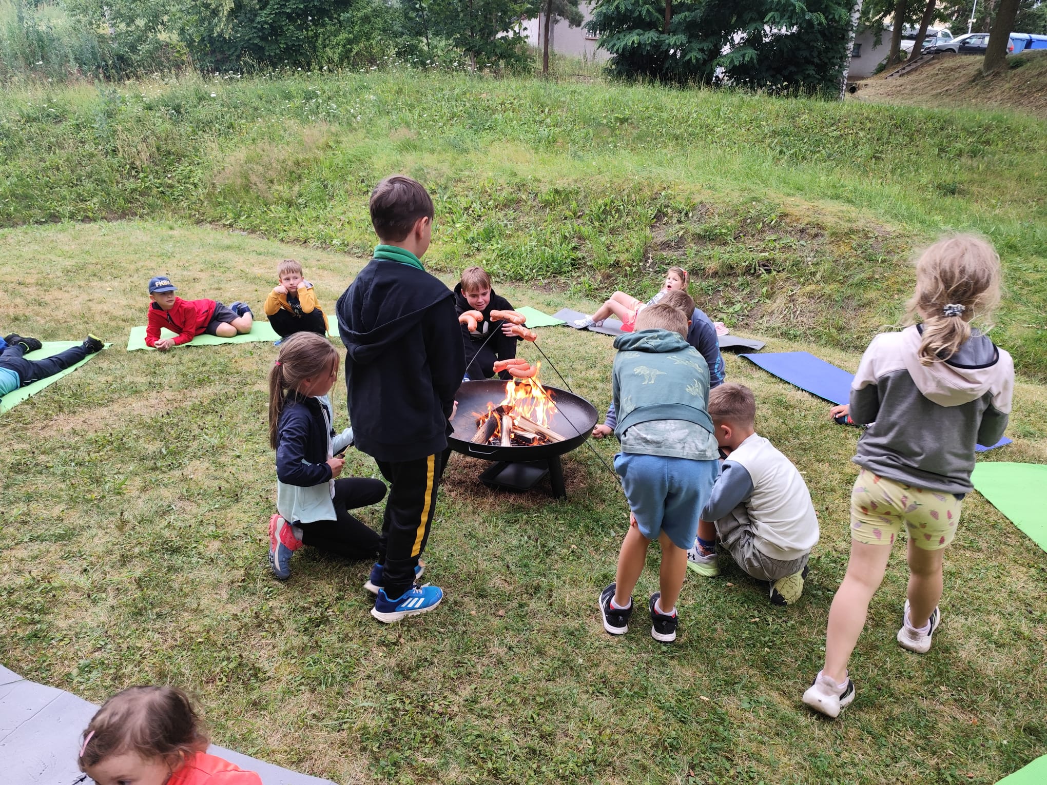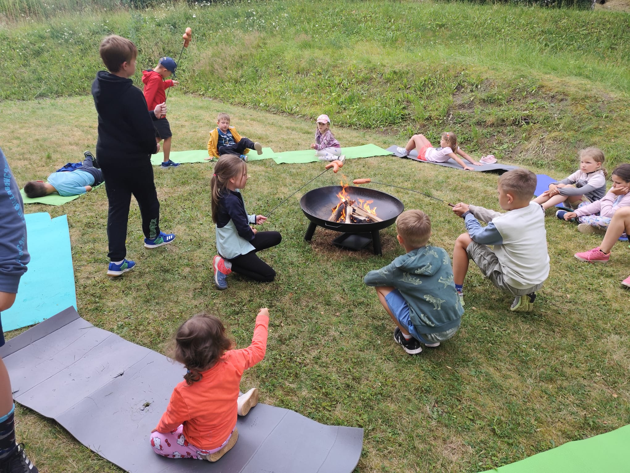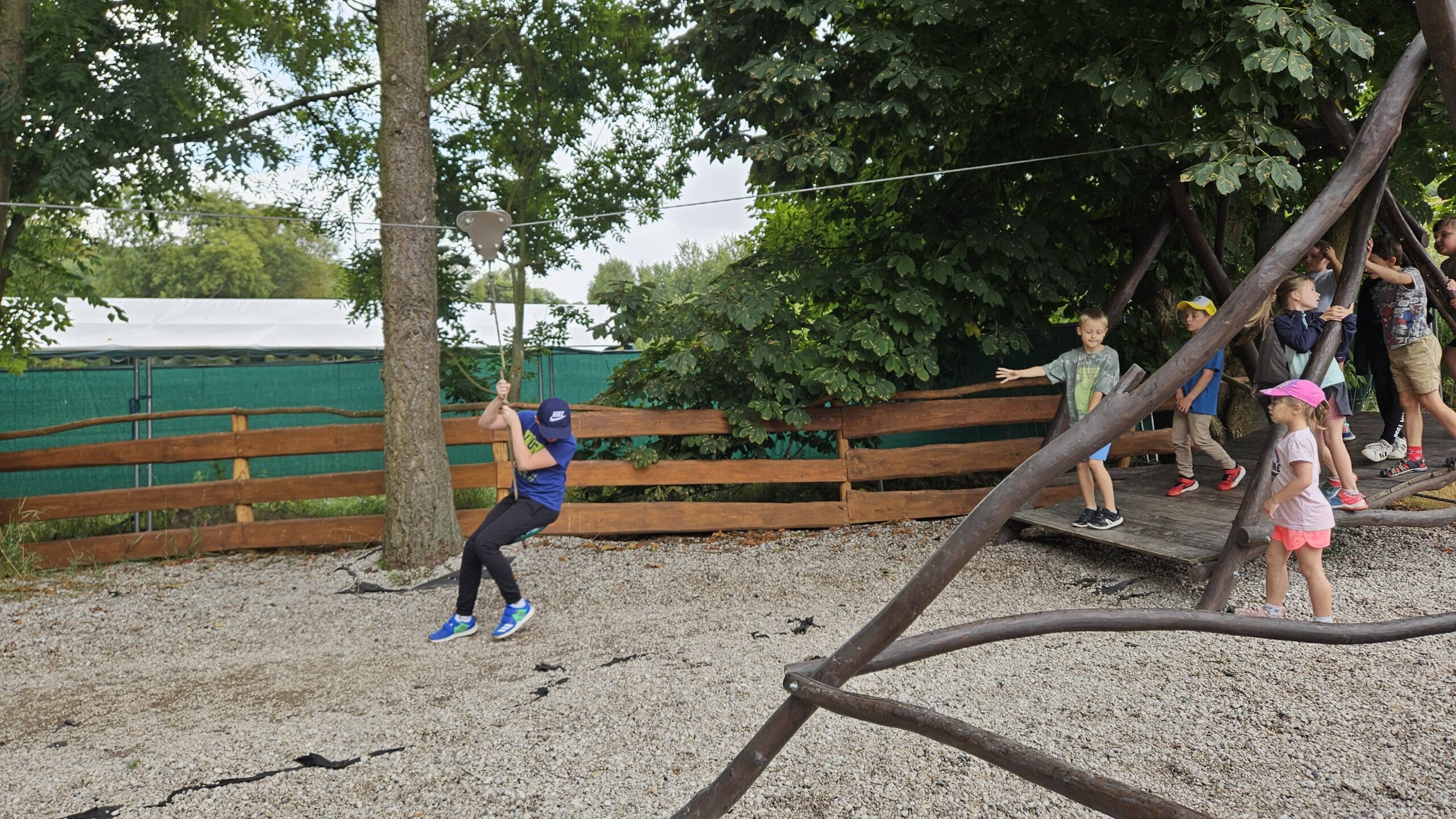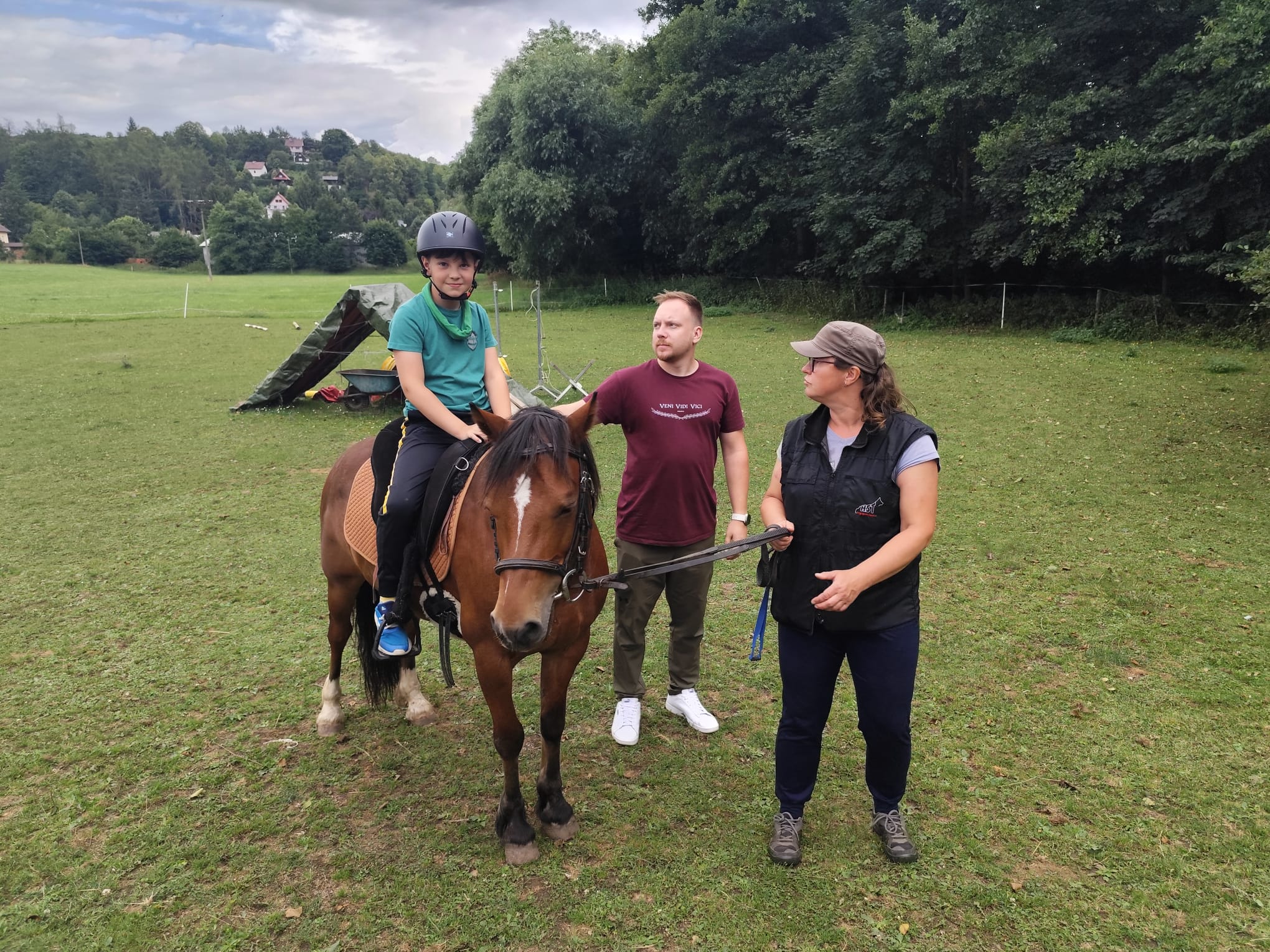 Ve čtvrtek se opět sportovalo a soutěžilo, ale odpoledne patřilo zvířatům zblízka. Děti navštívily králíky, znovu papoušky, a měly dokonce možnost projet se na koních. Během dne se podařilo zachránit i drobná, ale důležitá zvířata – motýla, včelu a mravence, která nesmí na arše chybět. Večer pak patřil klasickému táboráku – opékání buřtů, hra na kytaru a společné zpívání písniček sice ne pod hvězdami, jelikož nás vyhnal déšť, ale i tak si děti vytvořily nezapomenutelnou atmosféru. Tento večer byl výjimečný i tím, že děti zůstaly přes noc – přespávačka byla pro mnohé vrcholem týdne.