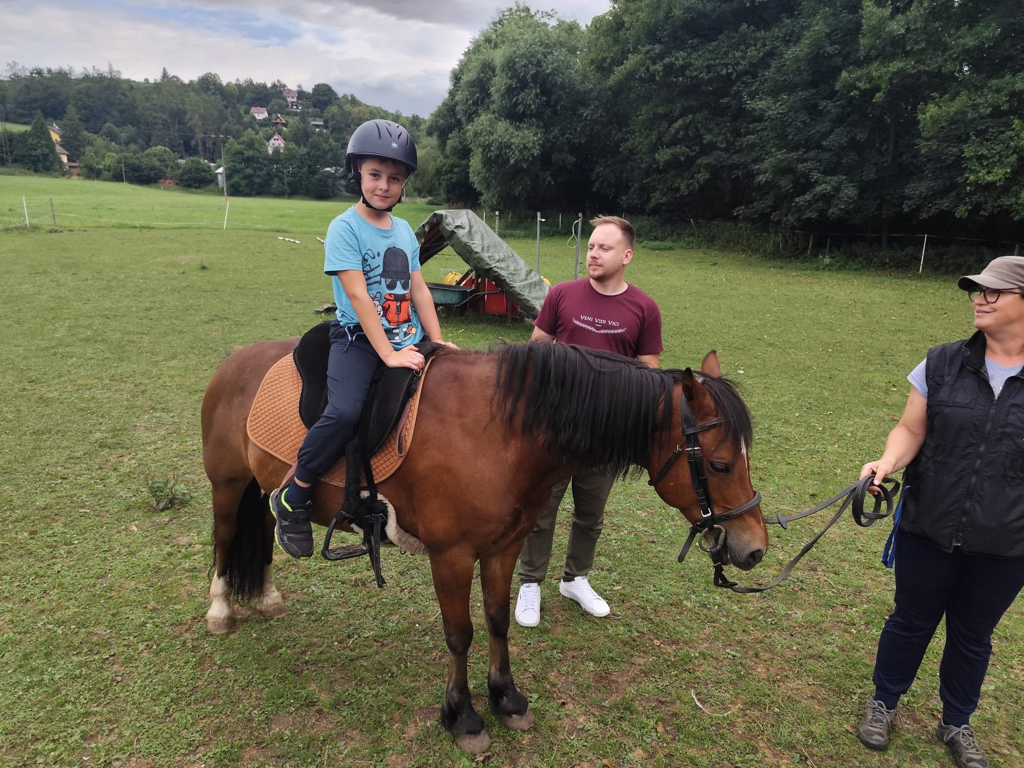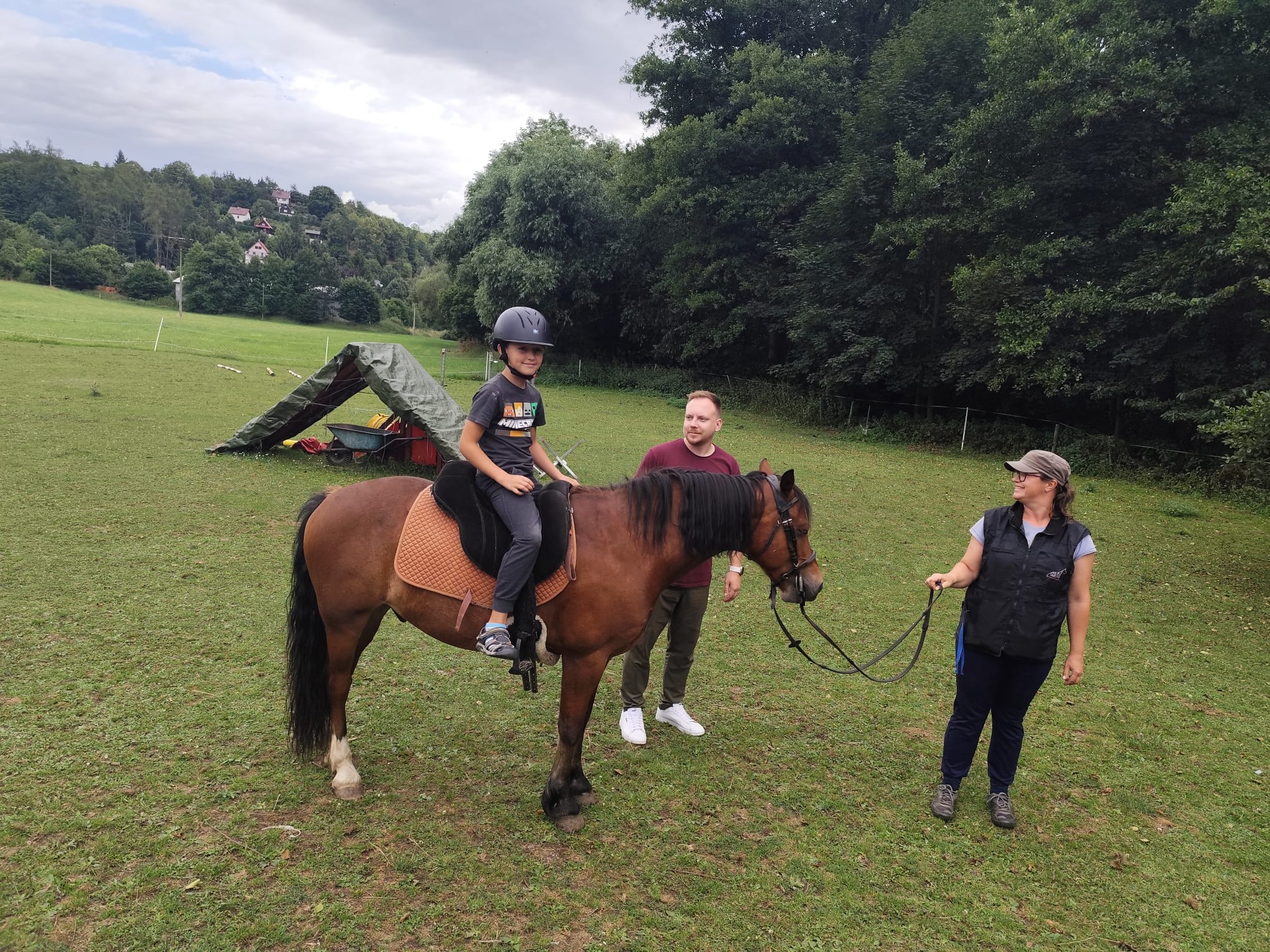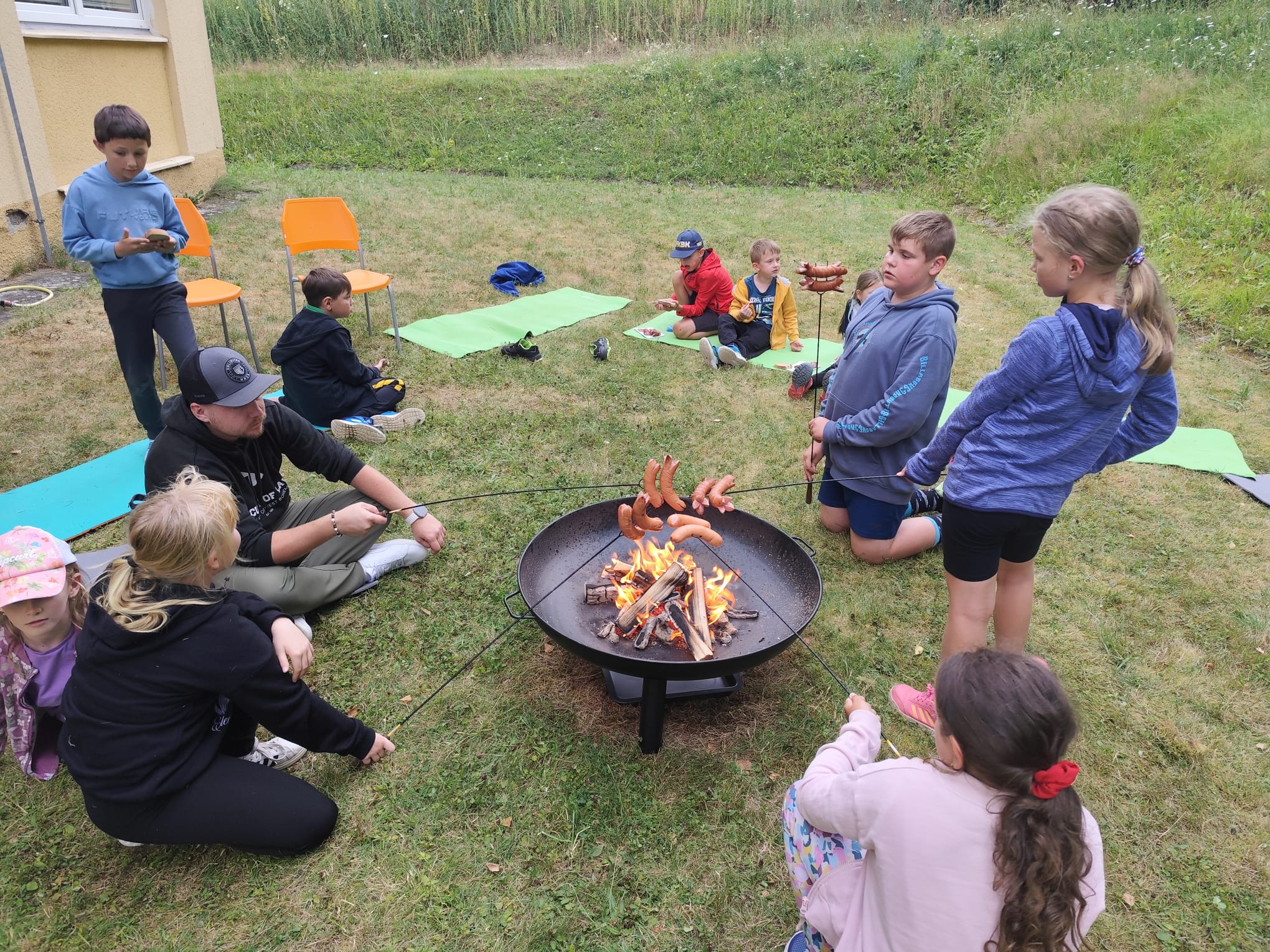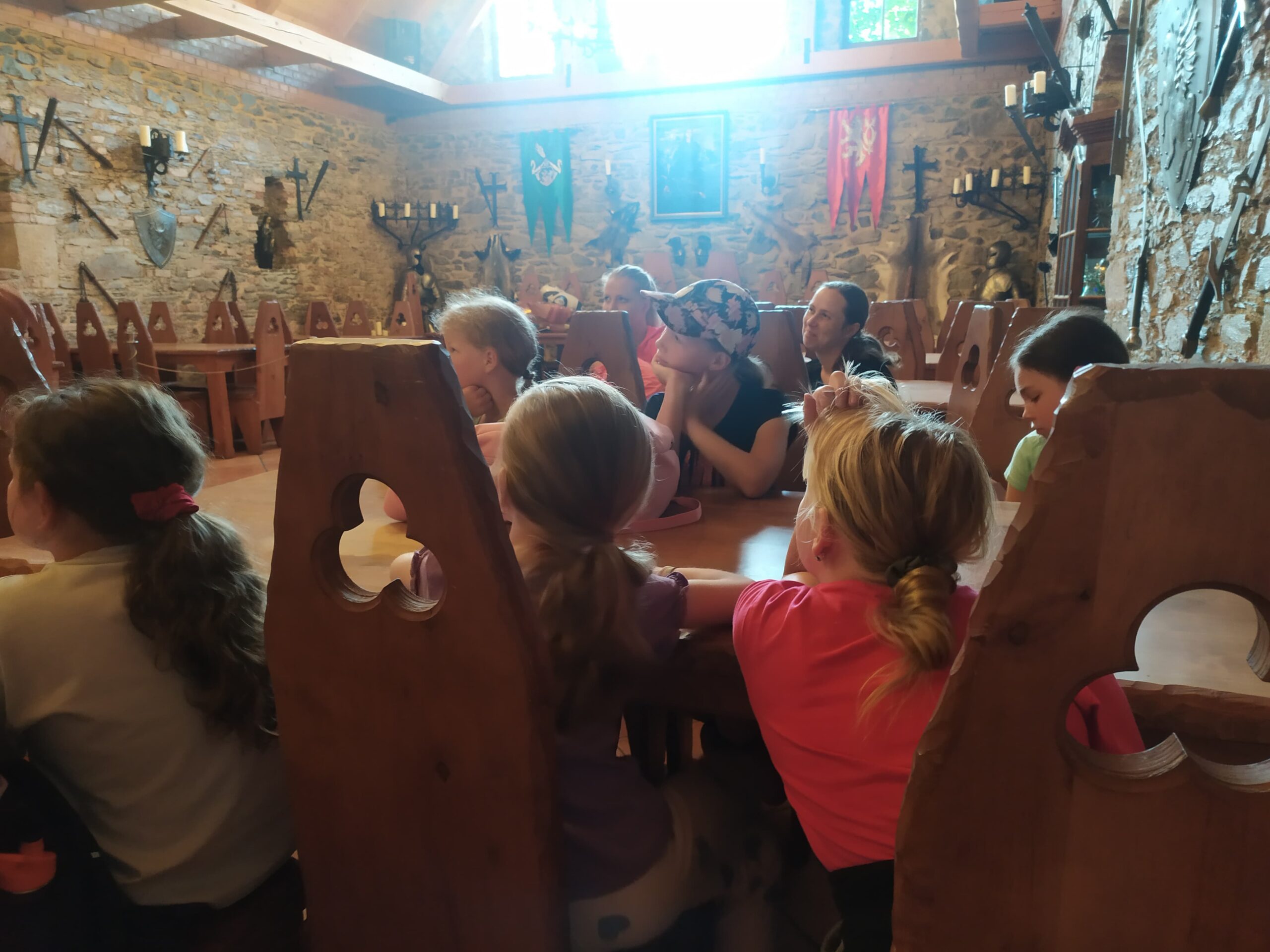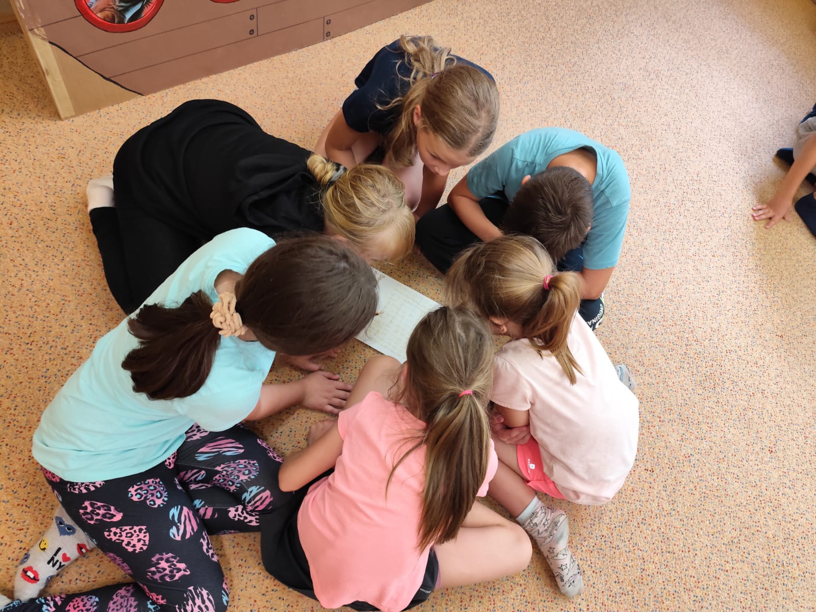 Ve čtvrtek se opět sportovalo a soutěžilo, ale odpoledne patřilo zvířatům zblízka. Děti navštívily králíky, znovu papoušky, a měly dokonce možnost projet se na koních. Během dne se podařilo zachránit i drobná, ale důležitá zvířata – motýla, včelu a mravence, která nesmí na arše chybět. Večer pak patřil klasickému táboráku – opékání buřtů, hra na kytaru a společné zpívání písniček sice ne pod hvězdami, jelikož nás vyhnal déšť, ale i tak si děti vytvořily nezapomenutelnou atmosféru. Tento večer byl výjimečný i tím, že děti zůstaly přes noc – přespávačka byla pro mnohé vrcholem týdne.