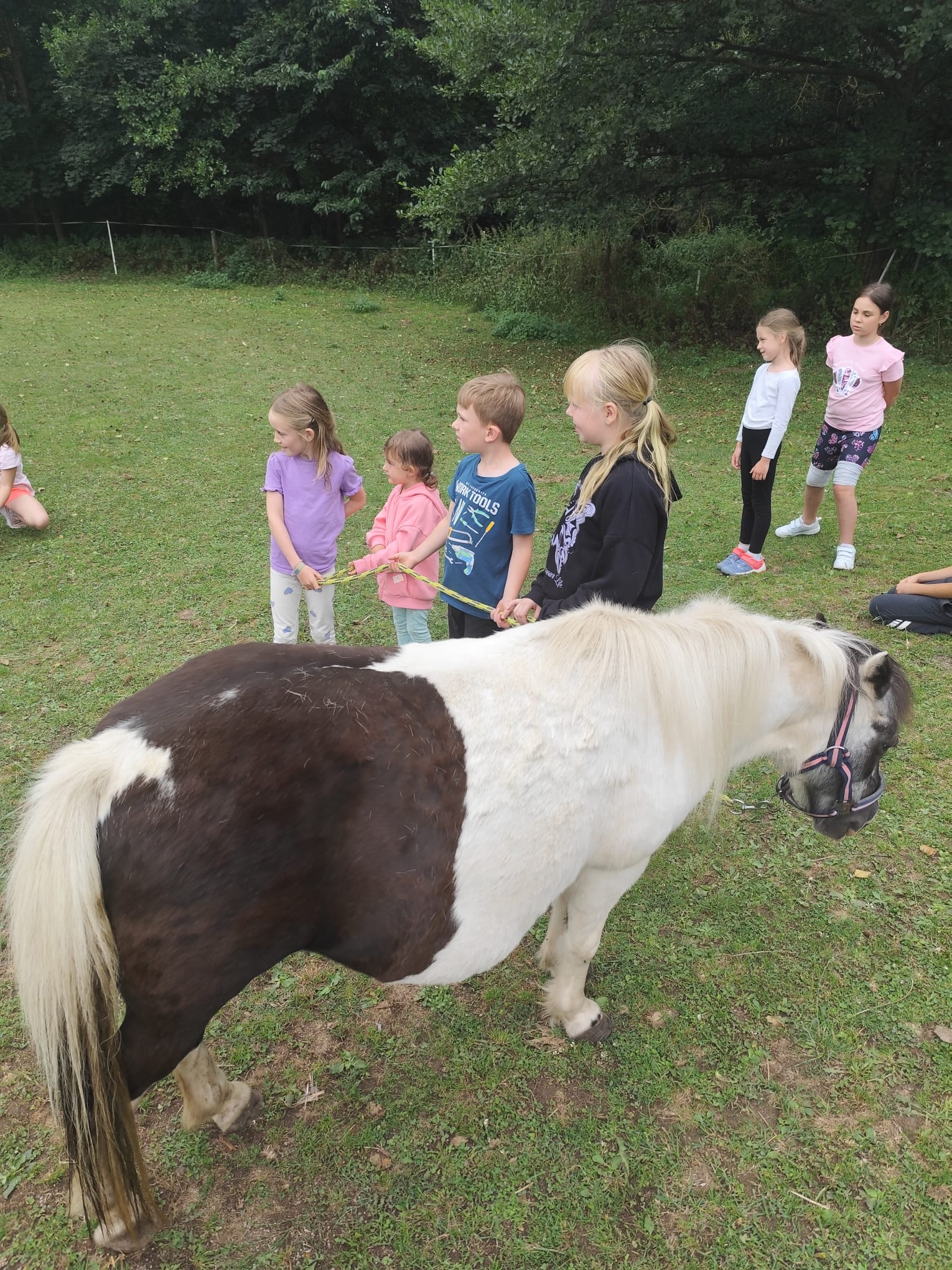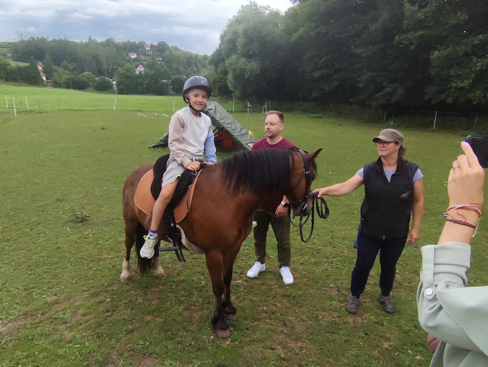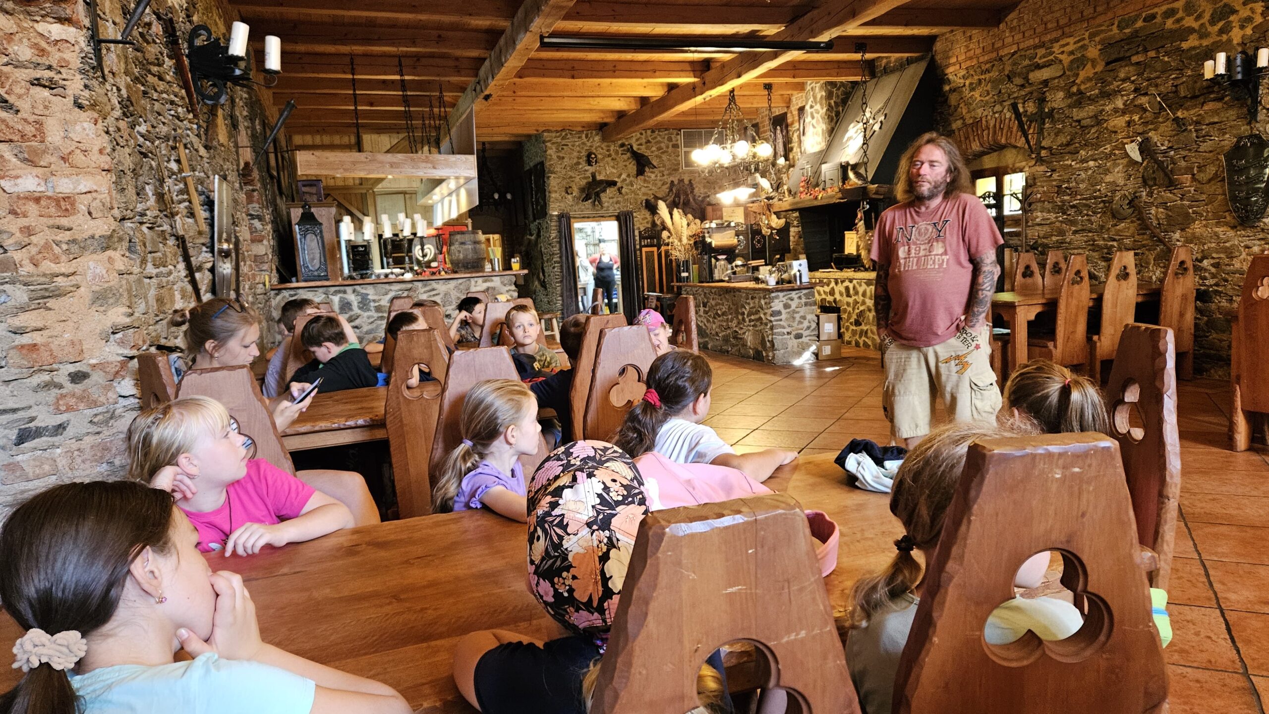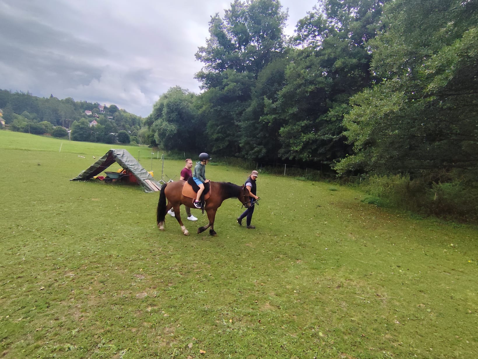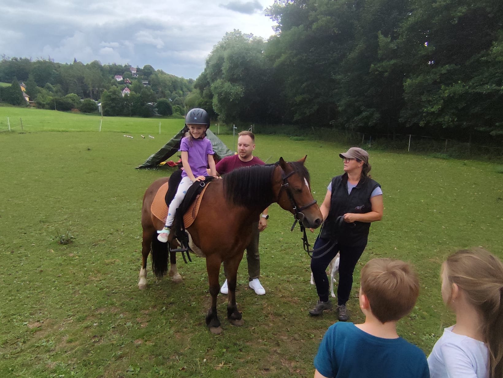 Ve čtvrtek se opět sportovalo a soutěžilo, ale odpoledne patřilo zvířatům zblízka. Děti navštívily králíky, znovu papoušky, a měly dokonce možnost projet se na koních. Během dne se podařilo zachránit i drobná, ale důležitá zvířata – motýla, včelu a mravence, která nesmí na arše chybět. Večer pak patřil klasickému táboráku – opékání buřtů, hra na kytaru a společné zpívání písniček sice ne pod hvězdami, jelikož nás vyhnal déšť, ale i tak si děti vytvořily nezapomenutelnou atmosféru. Tento večer byl výjimečný i tím, že děti zůstaly přes noc – přespávačka byla pro mnohé vrcholem týdne.