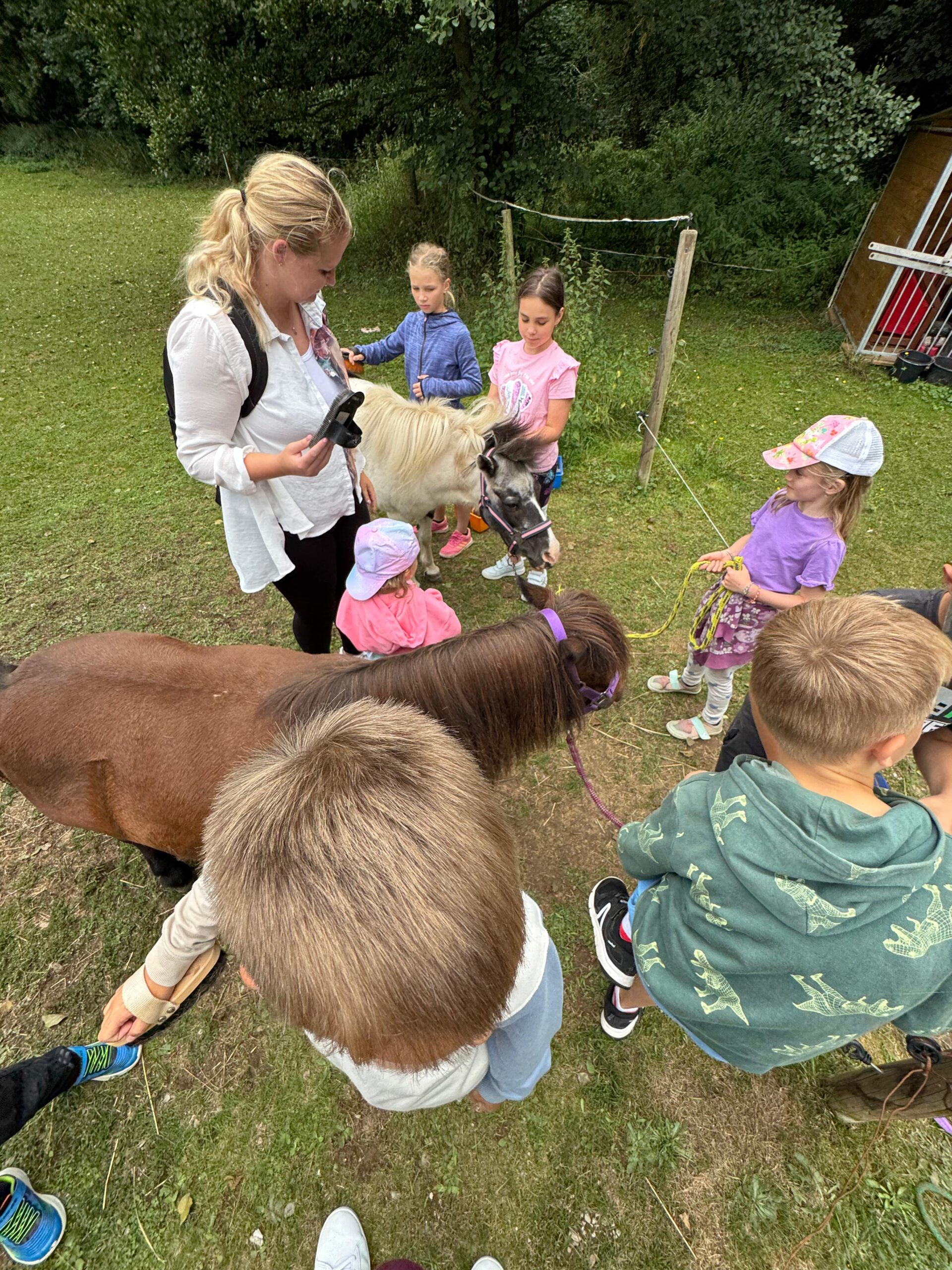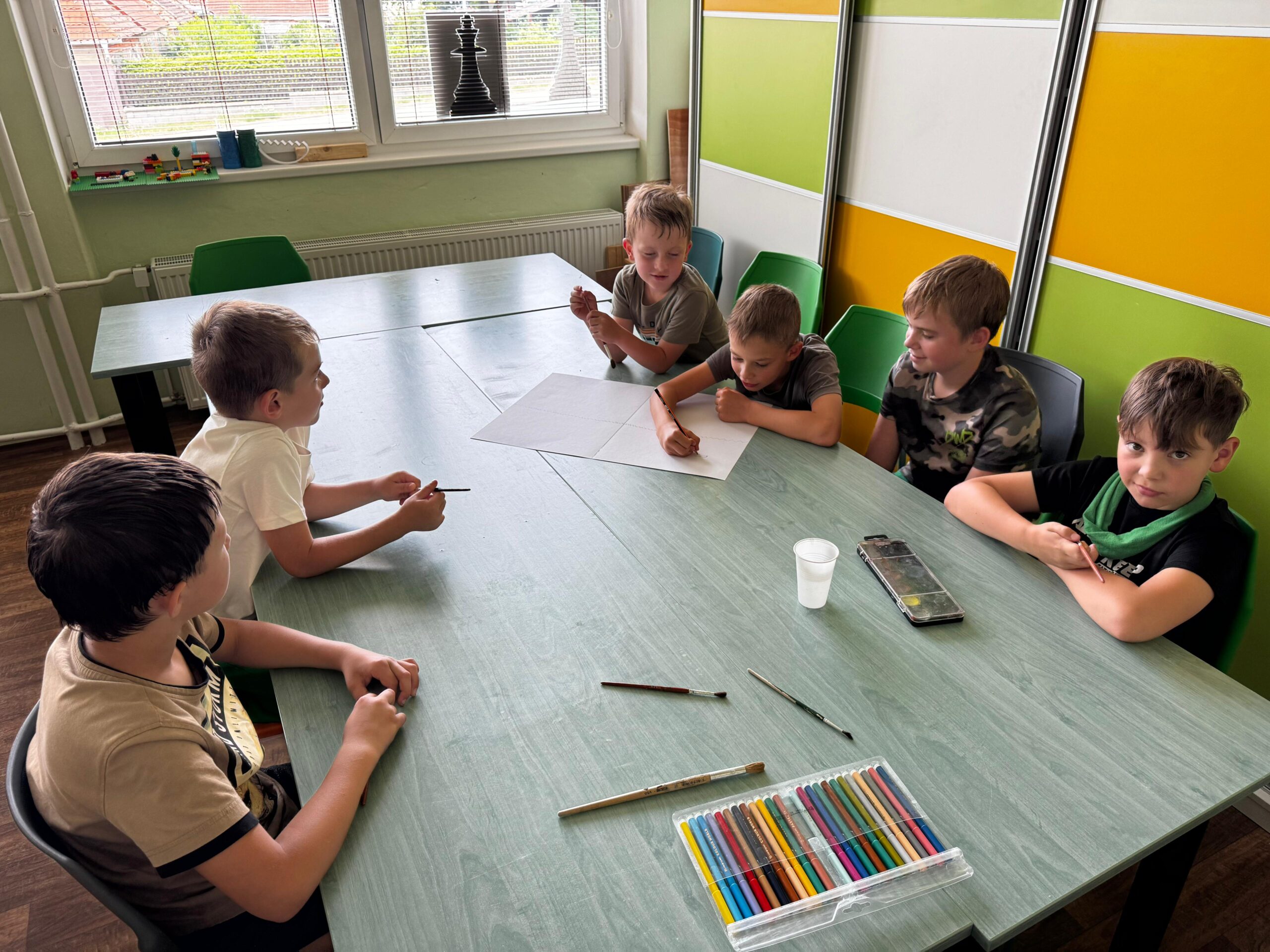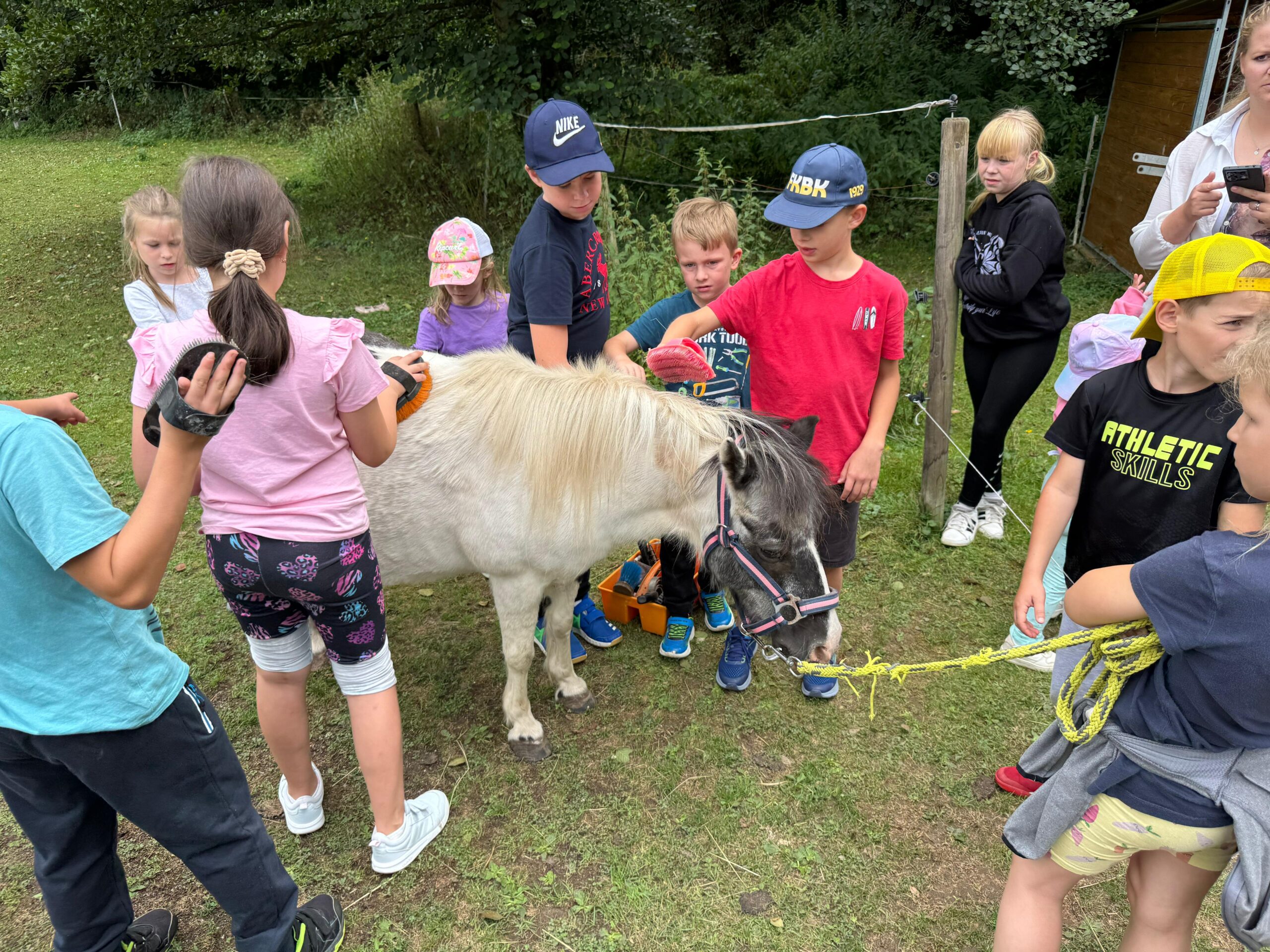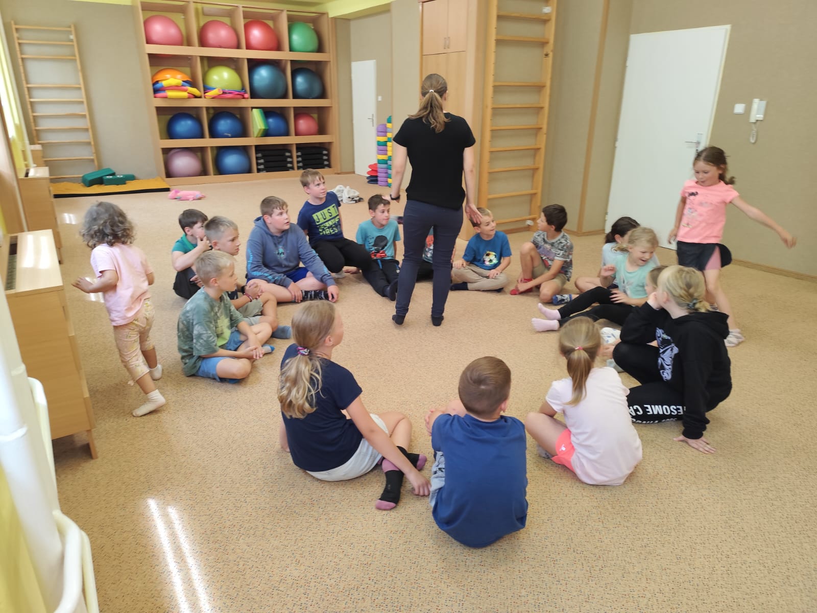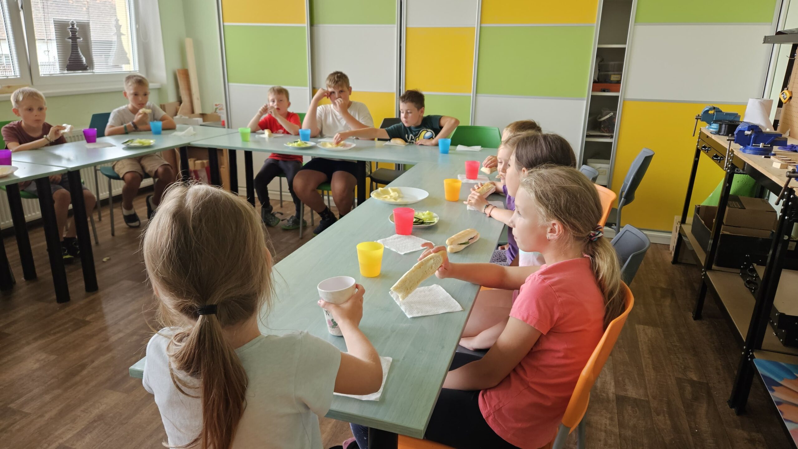 Ve čtvrtek se opět sportovalo a soutěžilo, ale odpoledne patřilo zvířatům zblízka. Děti navštívily králíky, znovu papoušky, a měly dokonce možnost projet se na koních. Během dne se podařilo zachránit i drobná, ale důležitá zvířata – motýla, včelu a mravence, která nesmí na arše chybět. Večer pak patřil klasickému táboráku – opékání buřtů, hra na kytaru a společné zpívání písniček sice ne pod hvězdami, jelikož nás vyhnal déšť, ale i tak si děti vytvořily nezapomenutelnou atmosféru. Tento večer byl výjimečný i tím, že děti zůstaly přes noc – přespávačka byla pro mnohé vrcholem týdne.