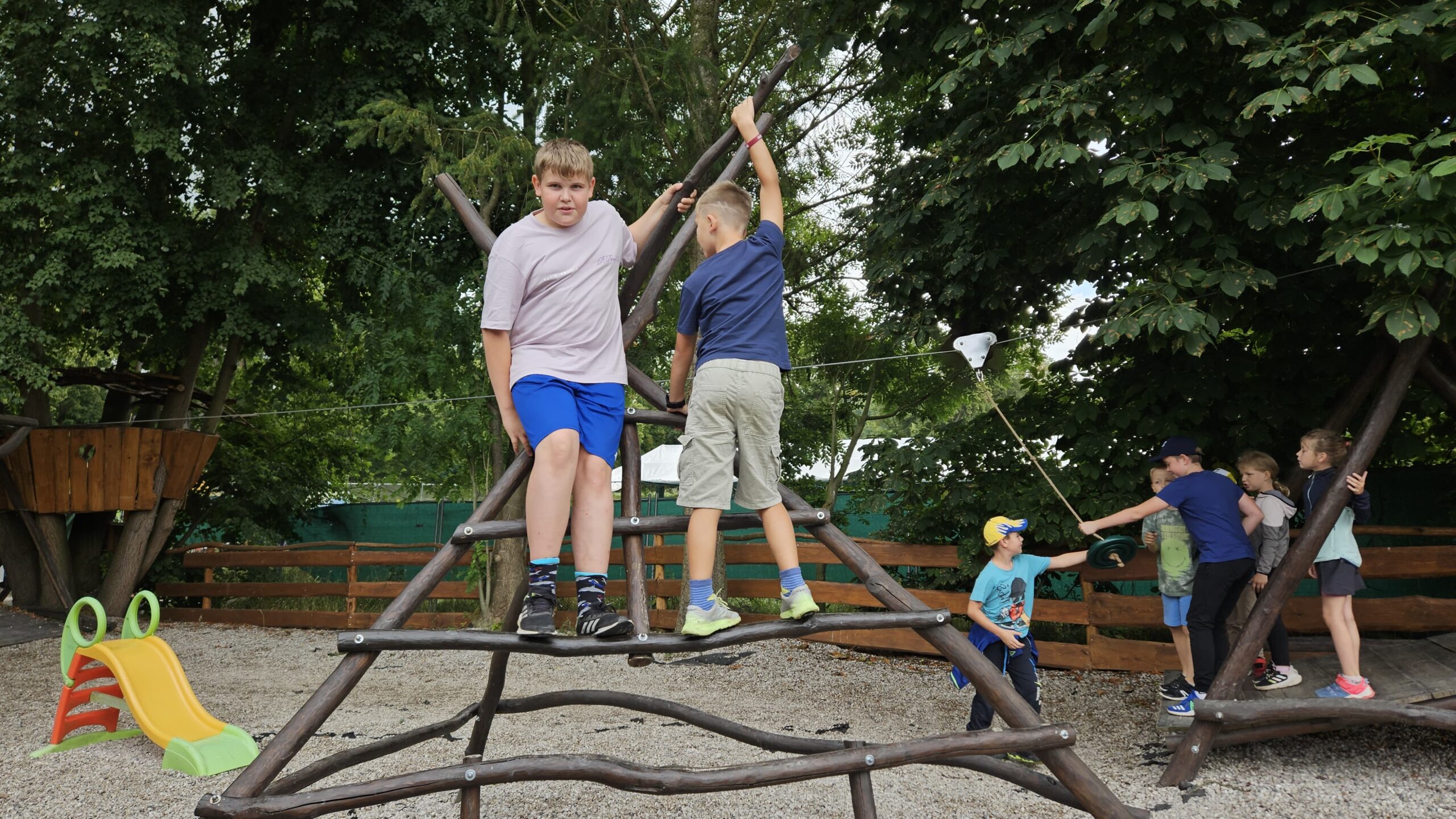Druhý den se nesl ve sportovním duchu. Děti mezi sebou soutěžily v různých hrách, které prověřily jejich týmového ducha i fyzickou zdatnost. Za své úsilí mohly zachránit další zvířata: slepici, plameňáka a barevného papouška. Každý tým měl radost z každého přírůstku na palubě archy, a celá táborová nálada byla plná smíchu, nadšení a pohybu.