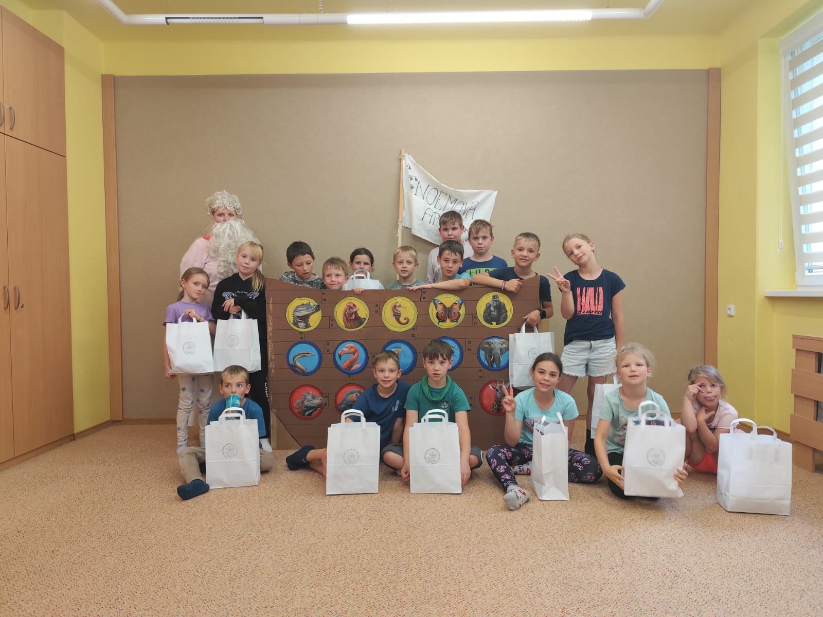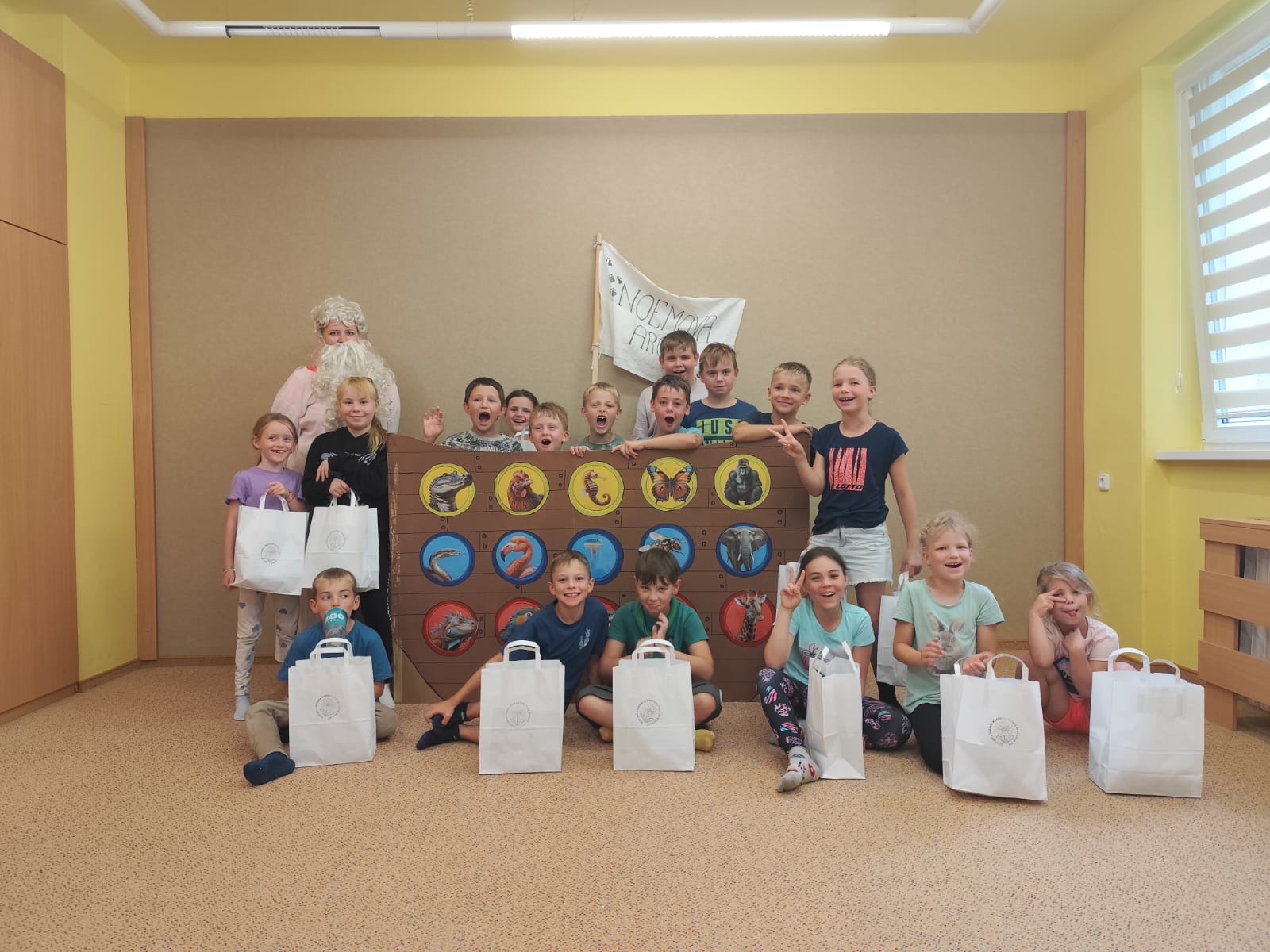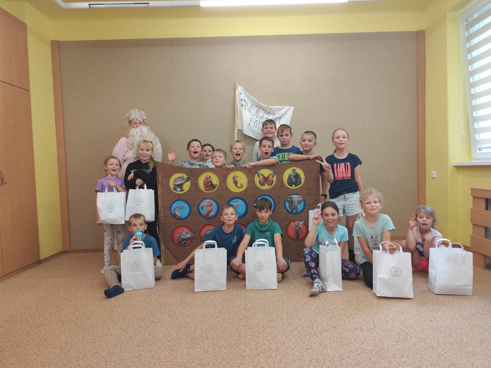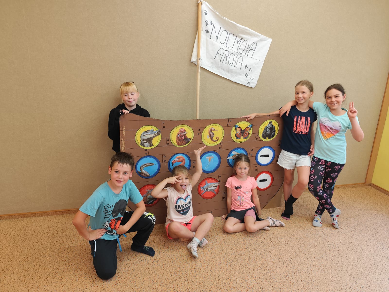 Poslední den začal sladce – palačinkovou snídaní. Poté se děti vydaly do zoo v Plasích, kde je čekala poutavá přednáška o záchraně goril a prohlídka celého areálu. Kromě gorily se podařilo zachránit i další majestátní zvířata – žirafu a slona. Když byly všechny zvířecí druhy „zachráněny“, nastal slavnostní okamžik: vyplutí Noemovy archy. Loučení s táborem bylo dojemné, ale děti odcházely domů s novými přátelstvími, zážitky a vědomím, že pro zvířata i planetu má smysl něco dělat.