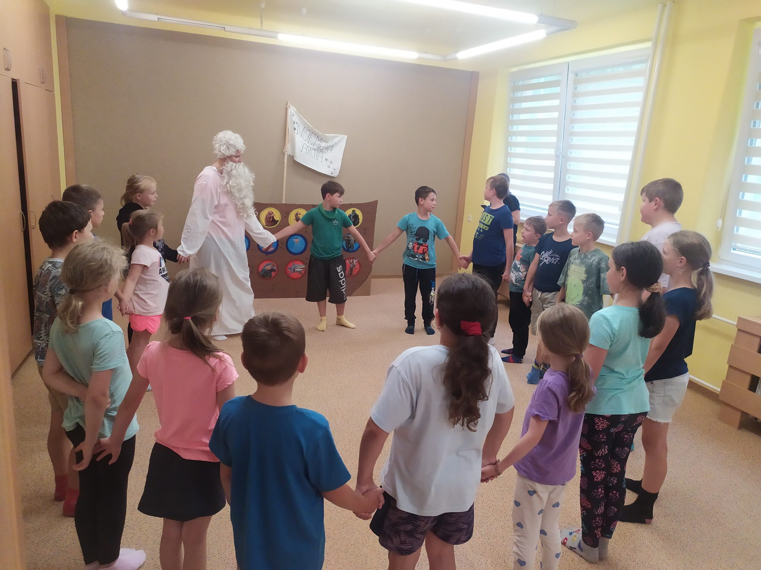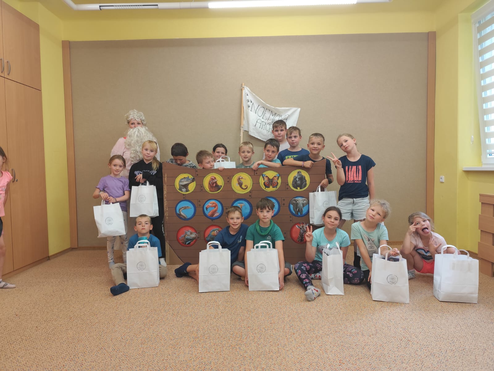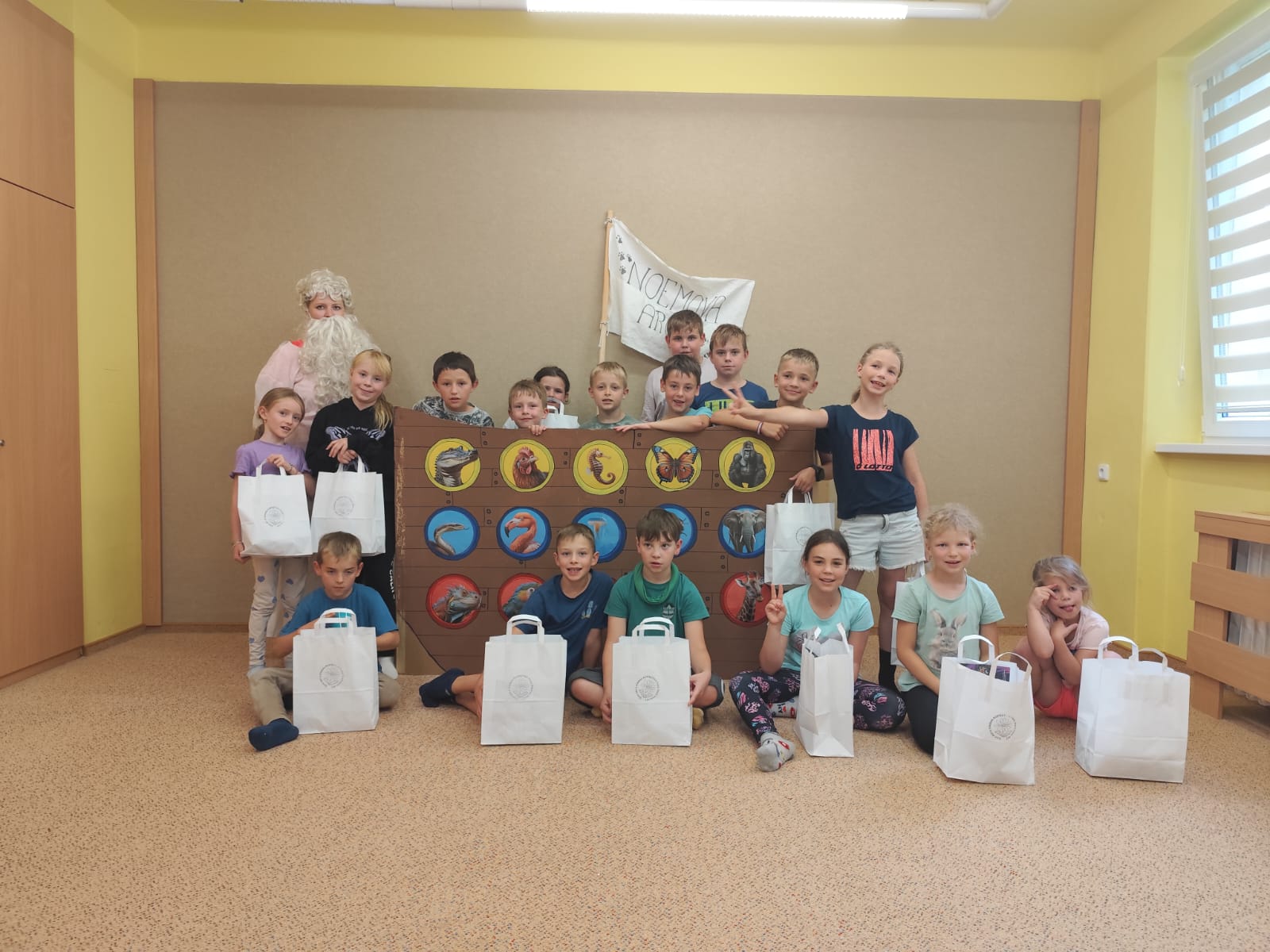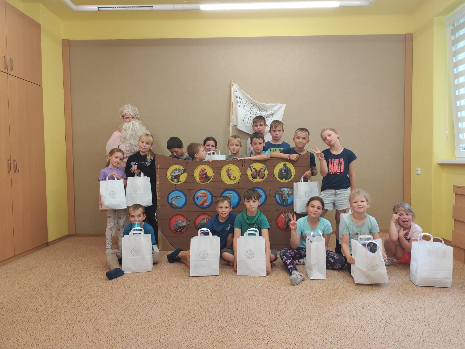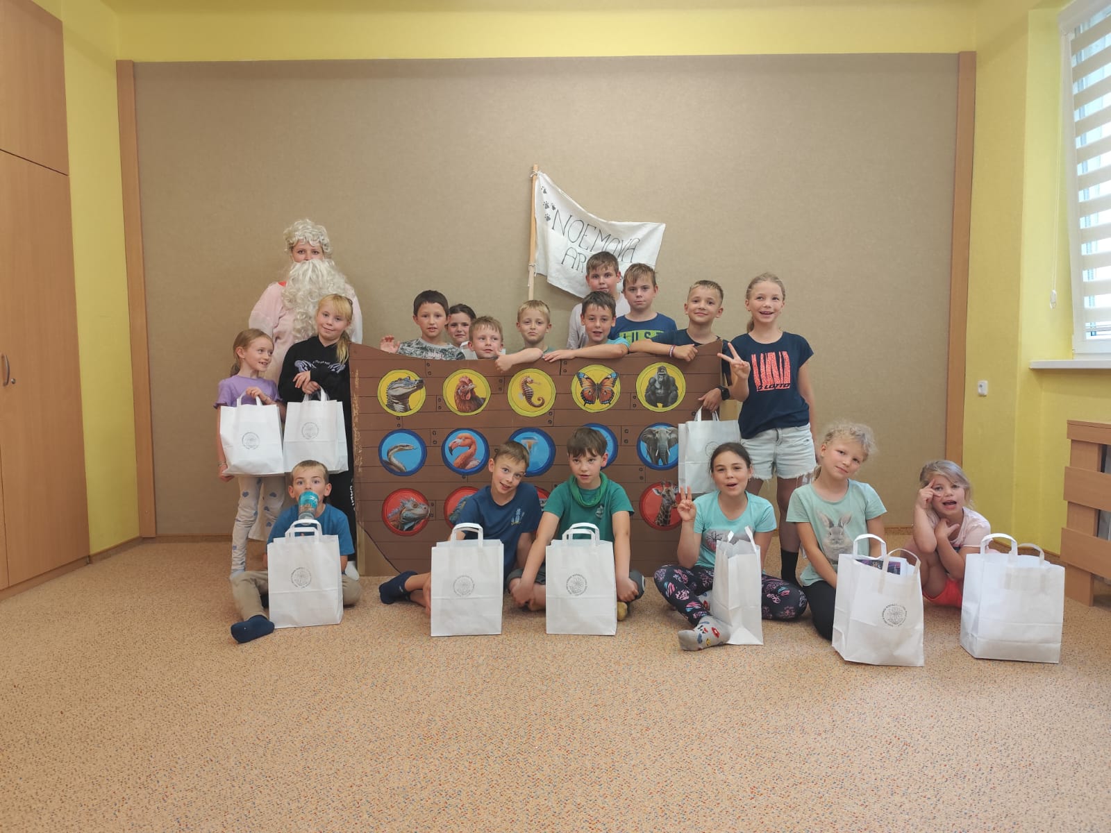Poslední den začal sladce – palačinkovou snídaní. Poté se děti vydaly do zoo v Plasích, kde je čekala poutavá přednáška o záchraně goril a prohlídka celého areálu. Kromě gorily se podařilo zachránit i další majestátní zvířata – žirafu a slona. Když byly všechny zvířecí druhy „zachráněny“, nastal slavnostní okamžik: vyplutí Noemovy archy. Loučení s táborem bylo dojemné, ale děti odcházely domů s novými přátelstvími, zážitky a vědomím, že pro zvířata i planetu má smysl něco dělat.