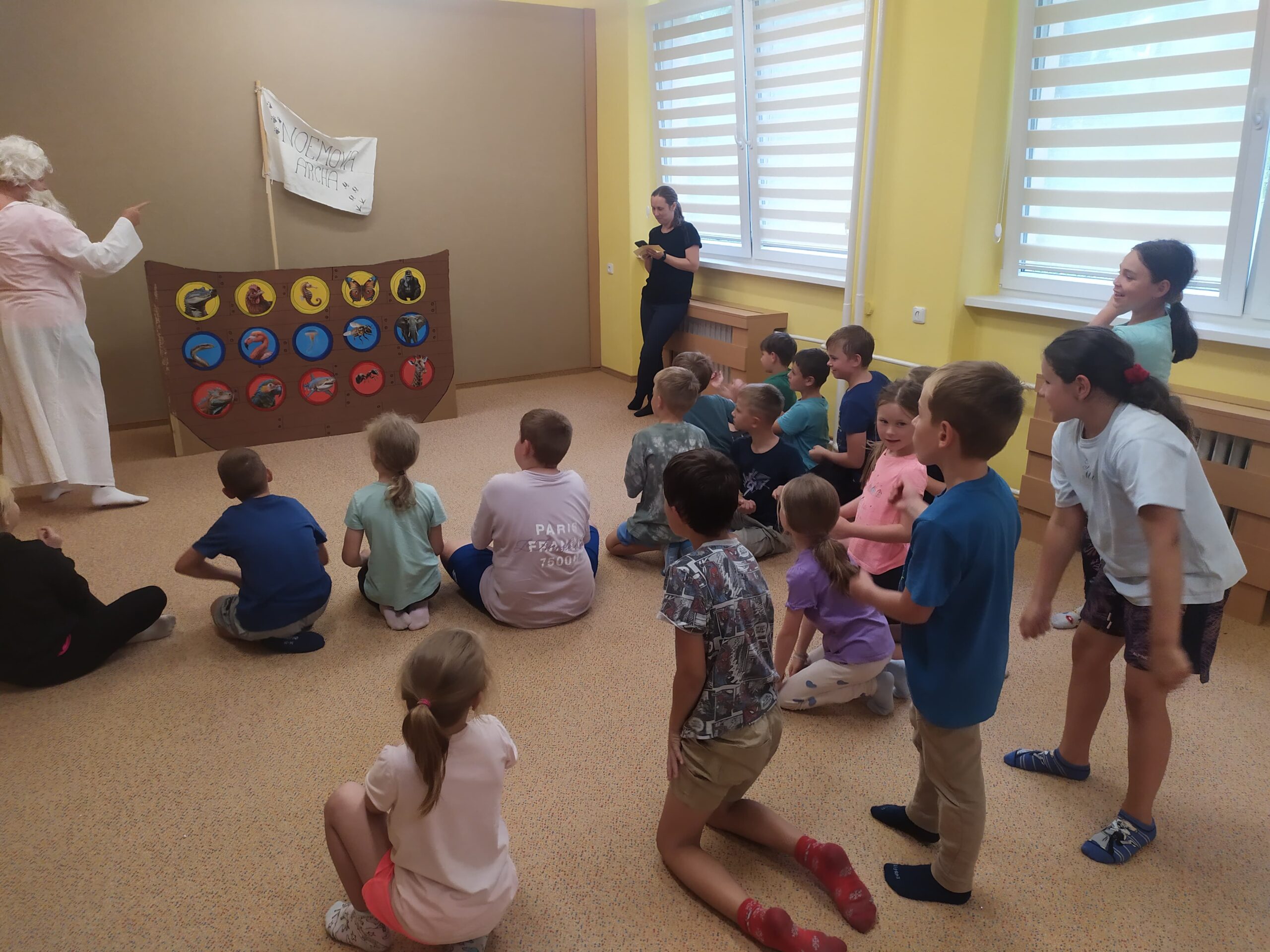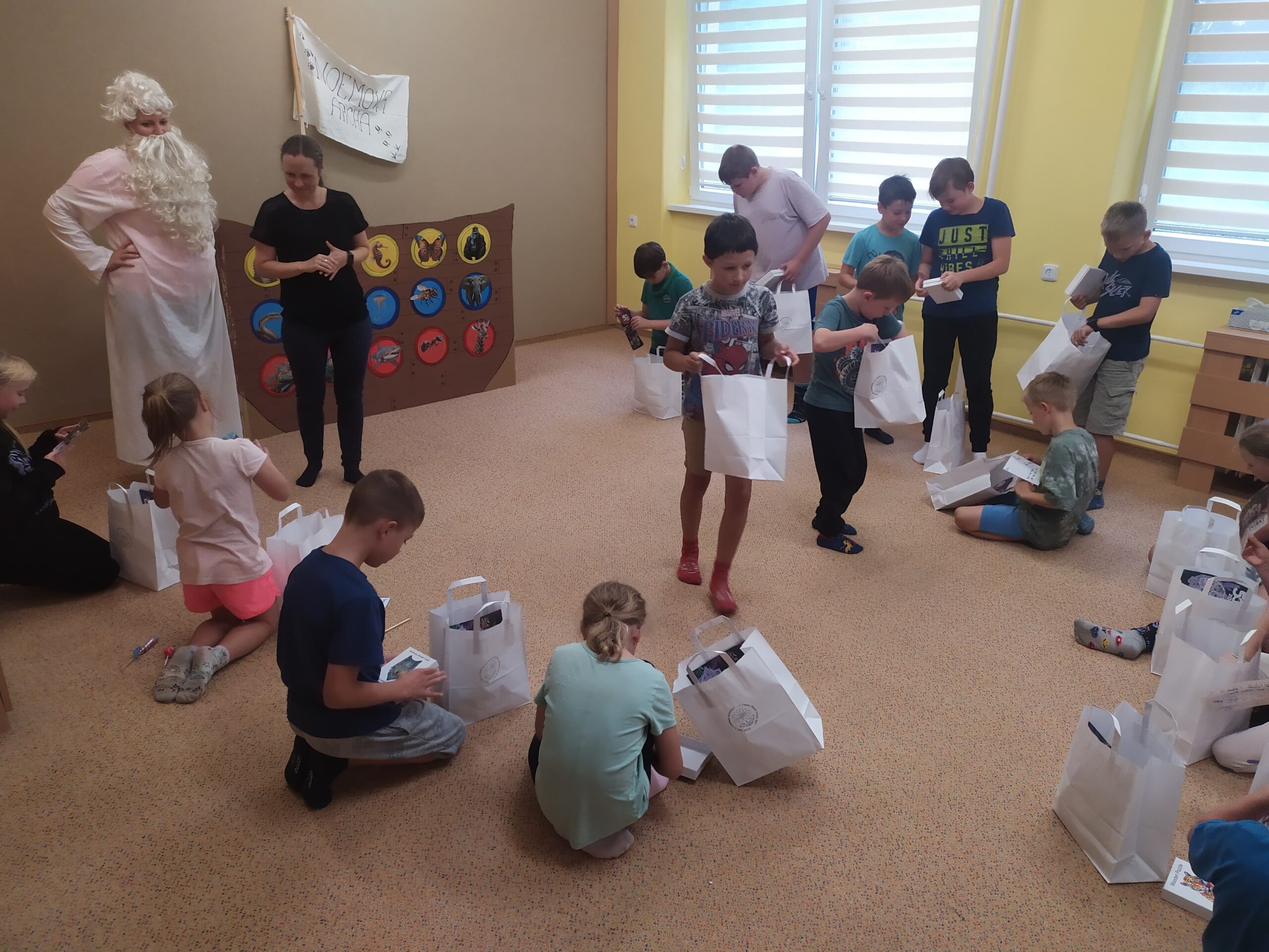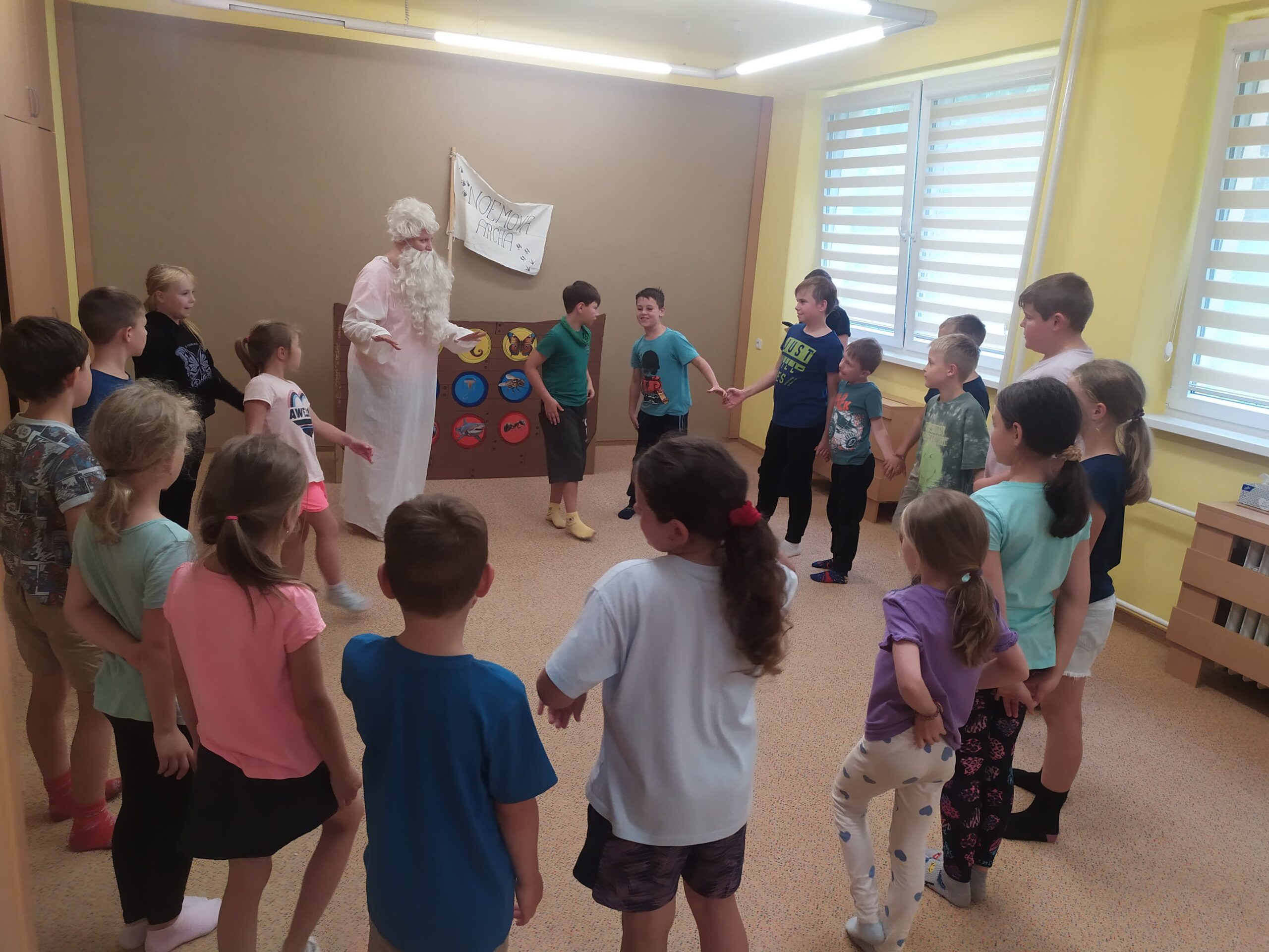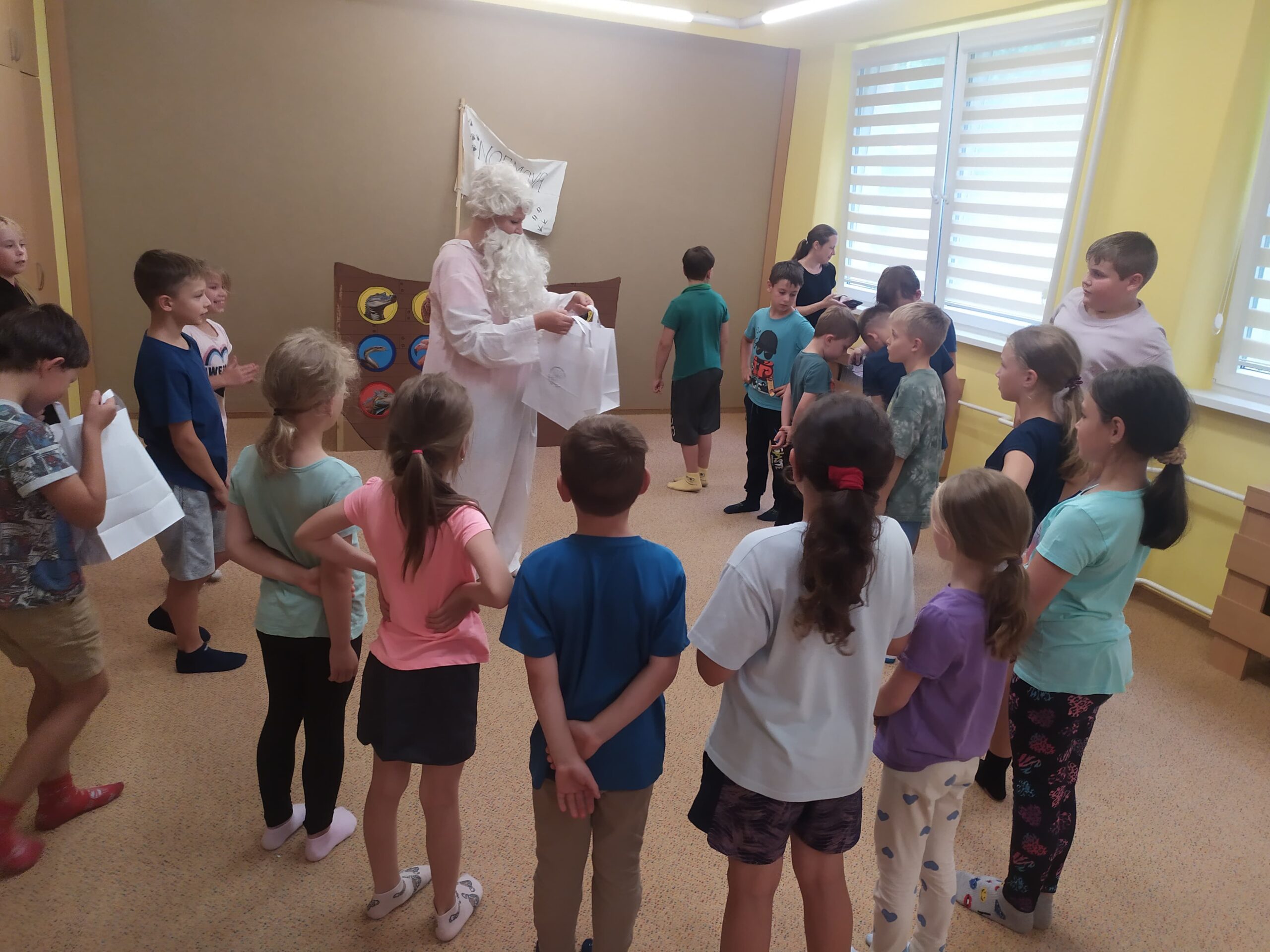 Poslední den začal sladce – palačinkovou snídaní. Poté se děti vydaly do zoo v Plasích, kde je čekala poutavá přednáška o záchraně goril a prohlídka celého areálu. Kromě gorily se podařilo zachránit i další majestátní zvířata – žirafu a slona. Když byly všechny zvířecí druhy „zachráněny“, nastal slavnostní okamžik: vyplutí Noemovy archy. Loučení s táborem bylo dojemné, ale děti odcházely domů s novými přátelstvími, zážitky a vědomím, že pro zvířata i planetu má smysl něco dělat.